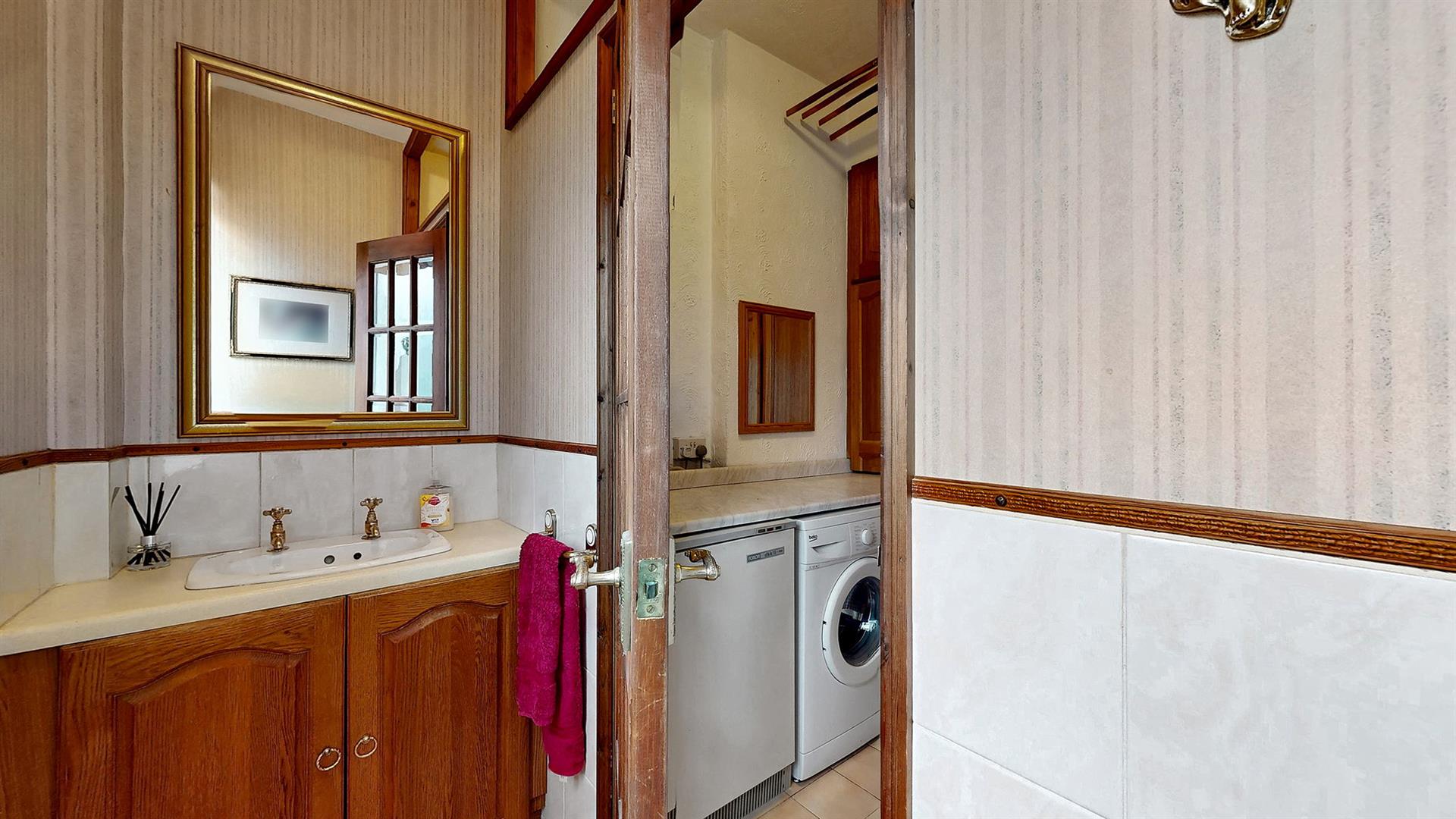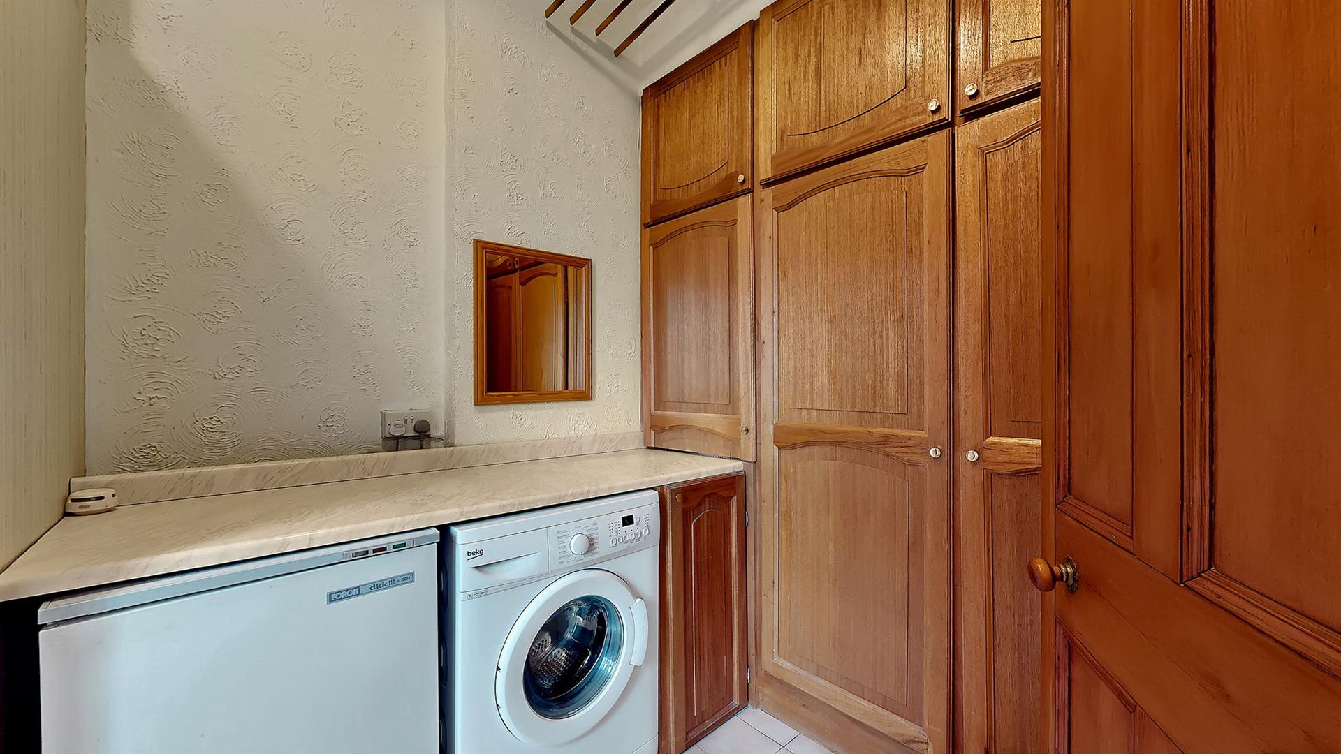 On entering the property, the welcoming hallway leads firstly to the lounge which is generous in size and enhanced by a large window, allowing an abundance of natural light to flood the room. A feature fireplace creates a cosy focal point, making this an ideal space for relaxing or entertaining. The fitted kitchen offers integrated cooking facilities and a range of units, worktop space and room for dining. Direct access to the rear garden is available via the kitchen. A convenient utility/laundry area and cloakroom which comprises of a wash-hand basin and W.C is located just off the kitchen.