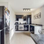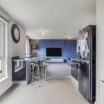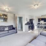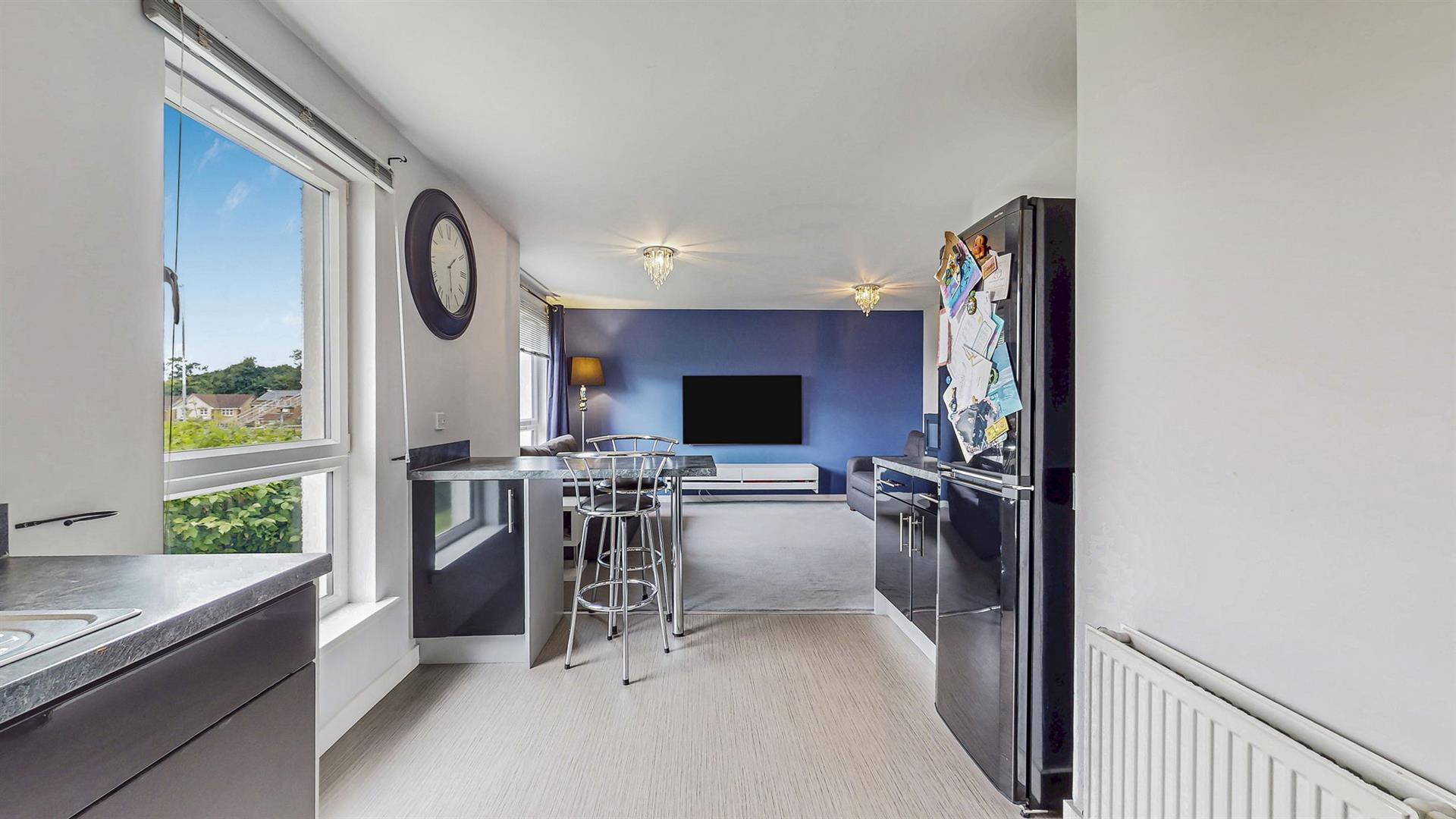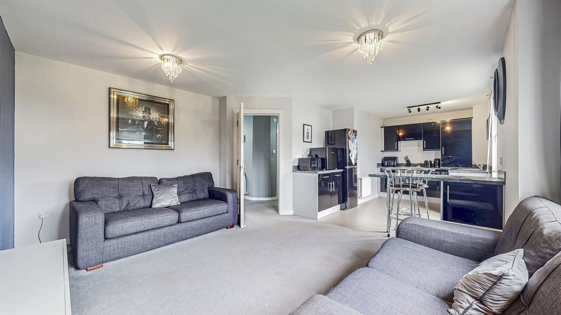 This property benefits from an allocated parking space to the rear of the building. A secure door entry system provides access to residents and visitors. This property is located on the ground floor of this well maintained building. On entrance, you are welcomed into the reception hallway which leads firstly to the spacious open-plan lounge and kitchen. The modern fitted kitchen hosts an array of black gloss wall and base mounted units paired with a marble effect worktop, creating a fashionable and efficient workspace. A convenient breakfast bar is available for dining. The kitchen further benefits from an integrated gas hob, oven, extractor fan and washing machine. Ample space is also available for a free standing fridge-freezer.