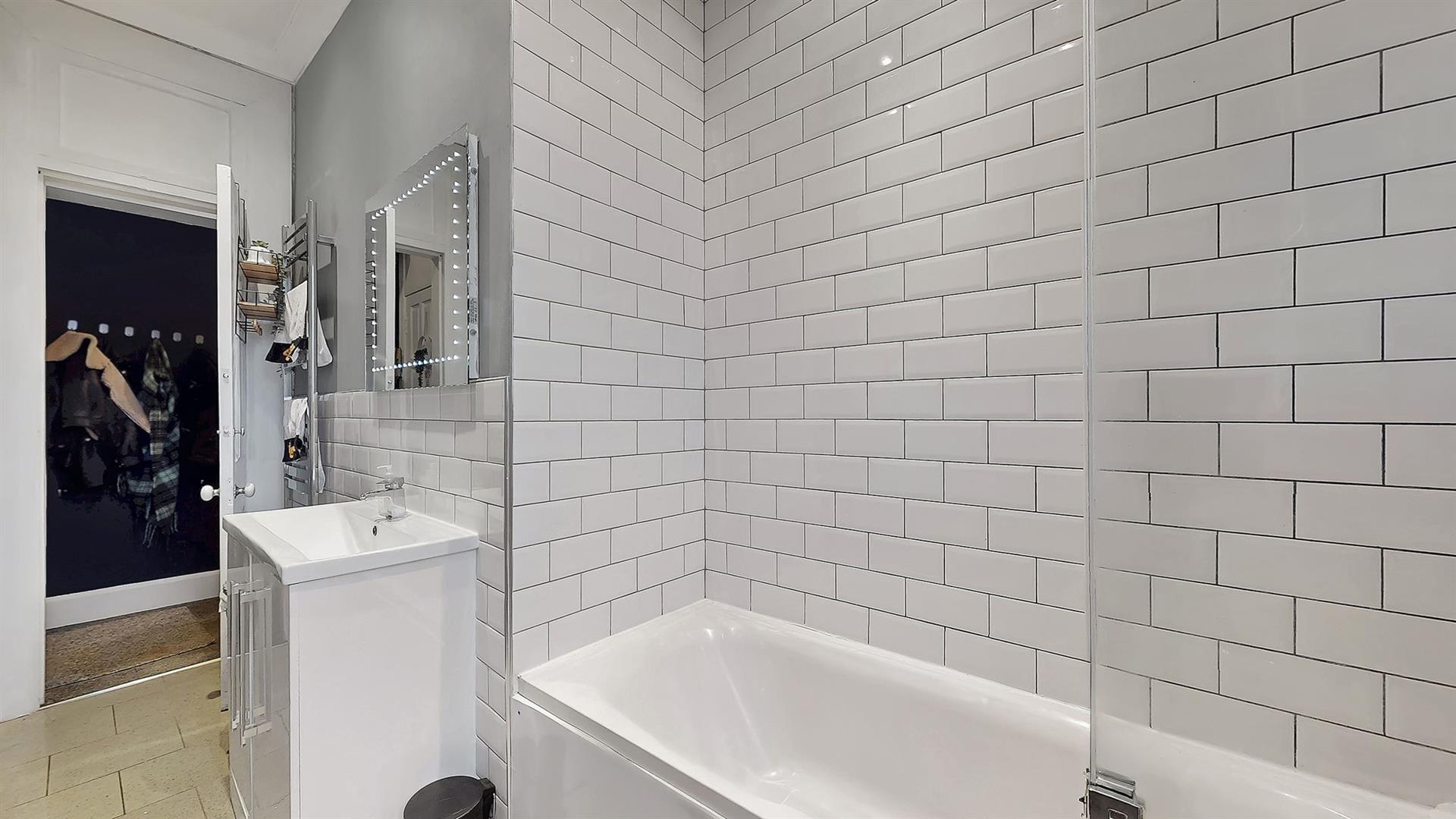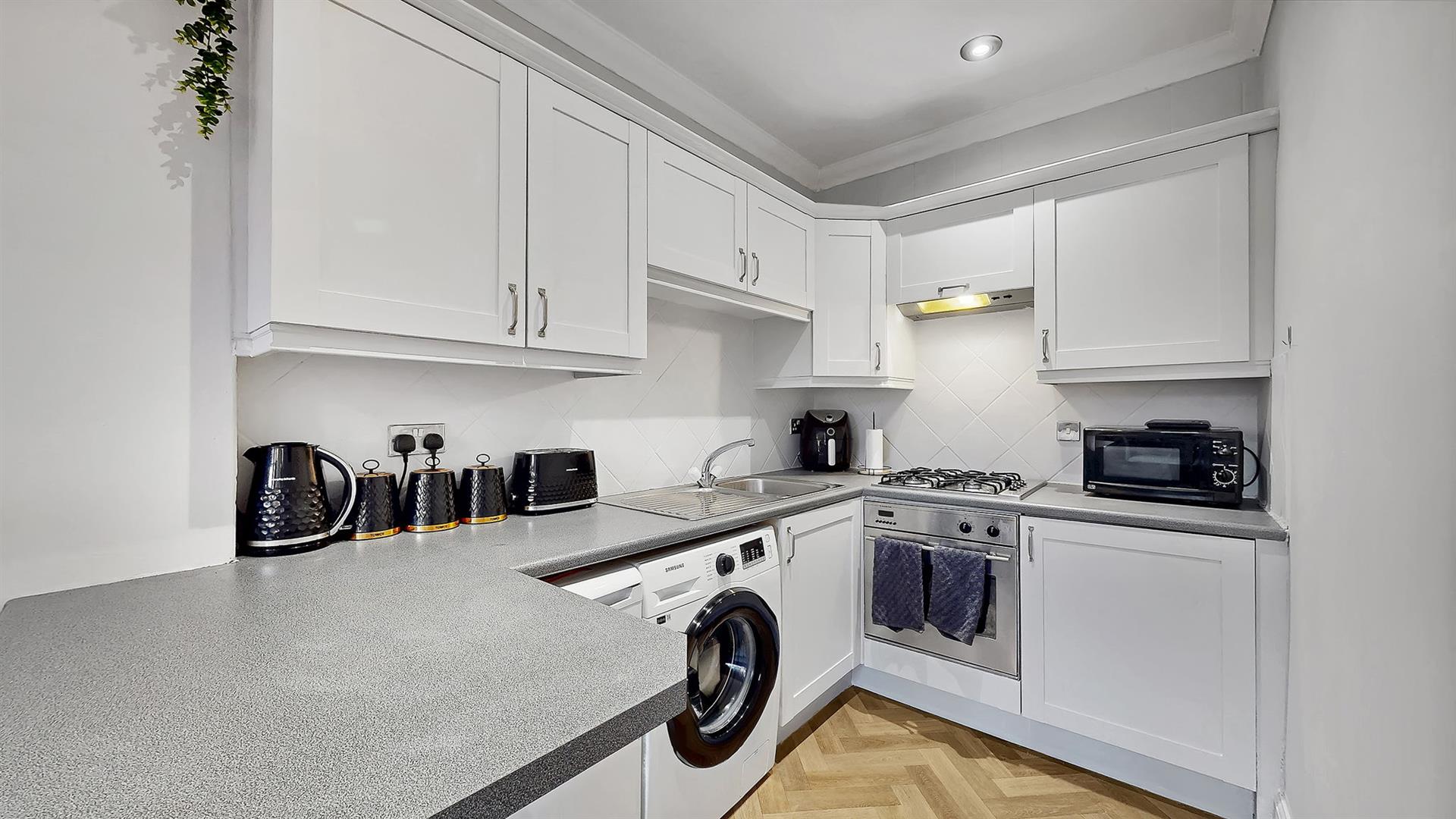 The double bedroom is generously proportioned and has a large window, creating a bright and relaxing space. The galley-style bathroom has been smartly designed and finished with quality fixtures and fittings and comprises of a bathtub with overhead mixer shower, vanity unit and W.C. The apartment also benefits from gas central heating and double glazing throughout which supports a positive energy efficiency rating.