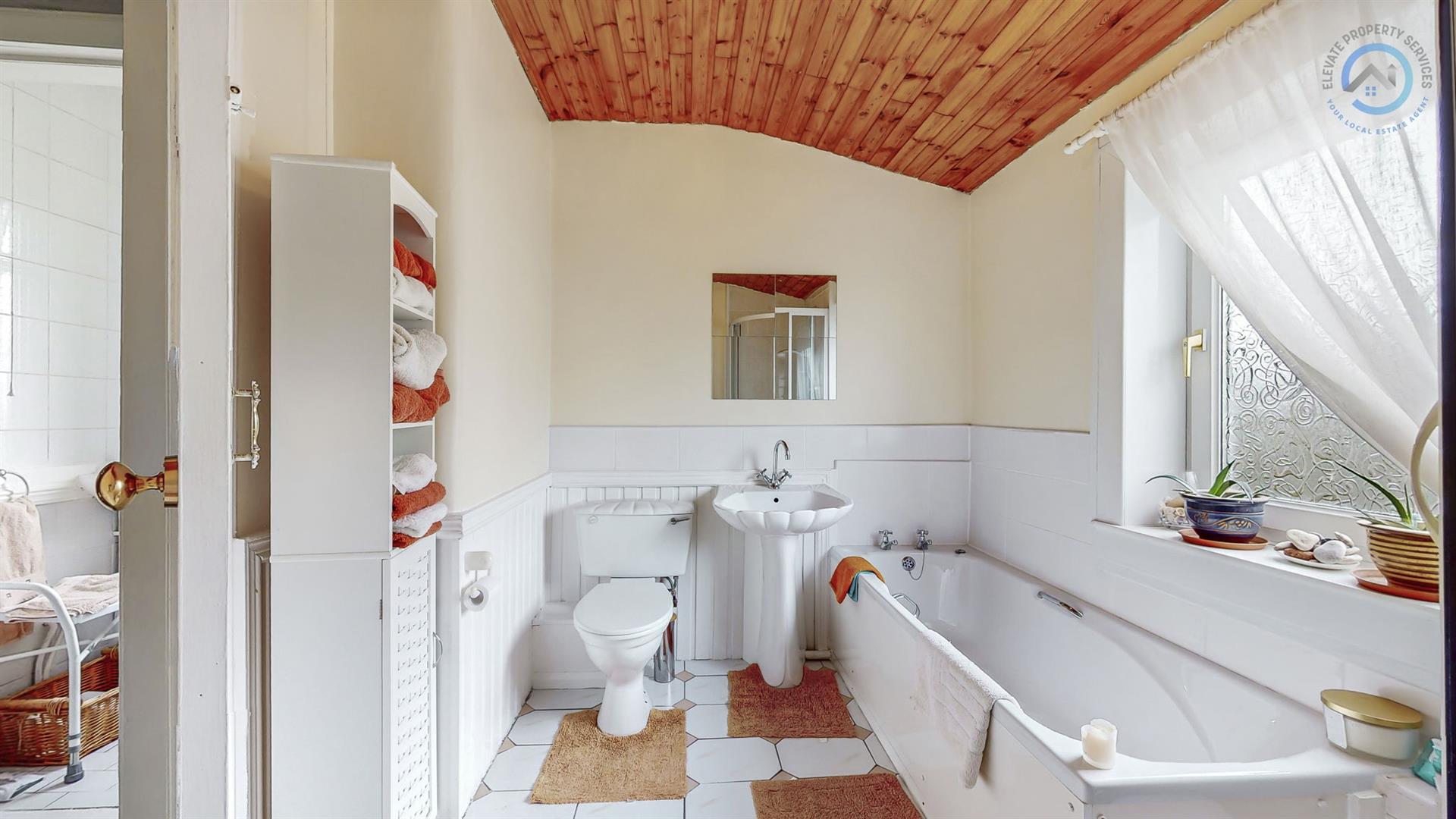 A grand staircase leads to the upper level and firstly to the large family bathroom with separate bath and walk-in shower cubicle, wash hand basin & W.C. To the side of this room, an additional cloakroom is available comprising of wash hand basin & W.C.