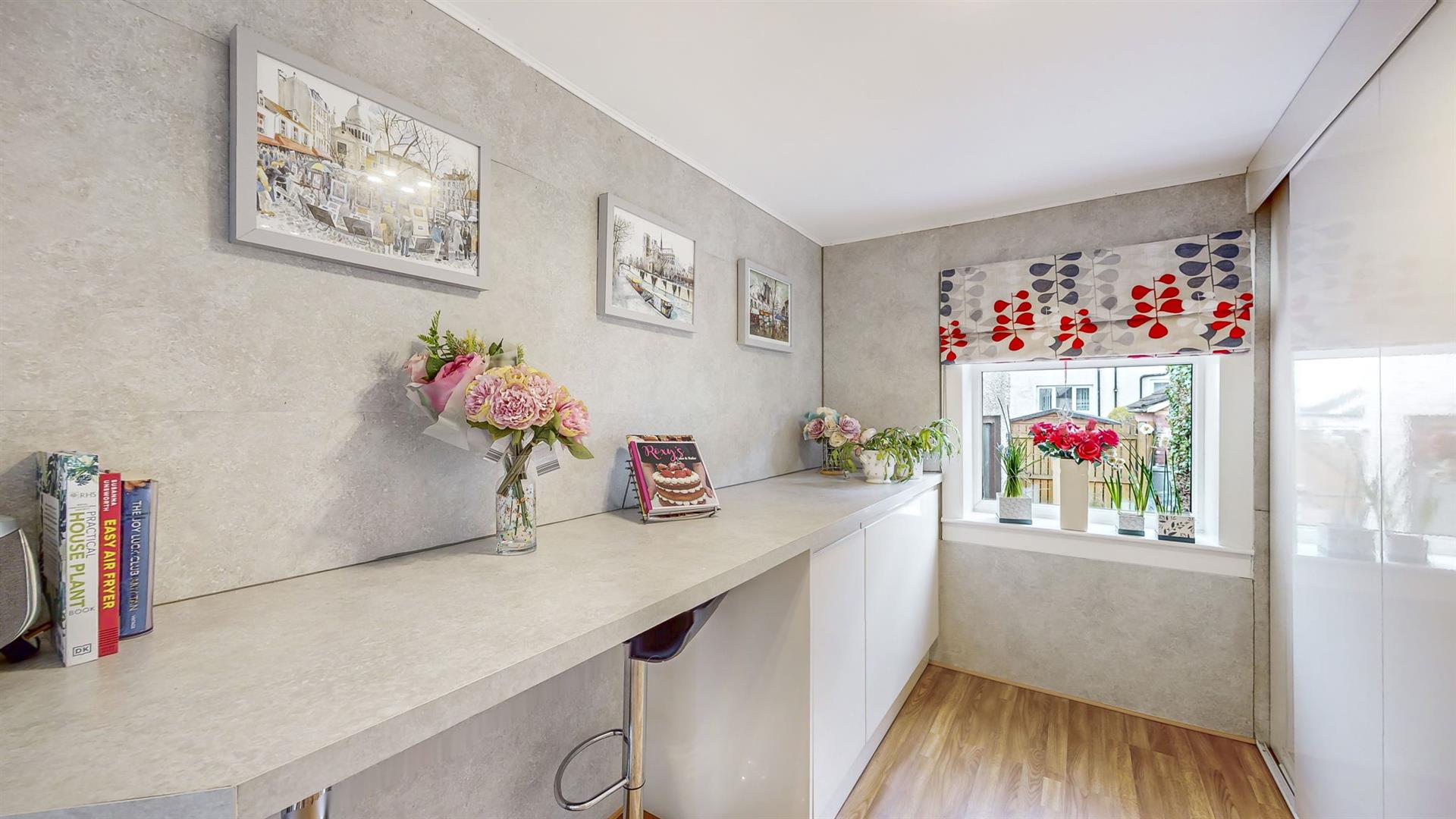 The lounge is impressive in size and has a large bay window, flooding this room with natural light. The newly fitted contemporary kitchen hosts an array of cream wall and base mounted units with integrated hob, oven and extractor fan and free-standing washing machine, dishwasher and fridge-freezer. The utility area to the rear of the kitchen, provides an excellent area for laundry and storage. Also, on this floor is an additional room, which can be utilised as a fourth bedroom, second reception room, home office etc. Completing this floor, is a convenient cloakroom housed under the staircase.