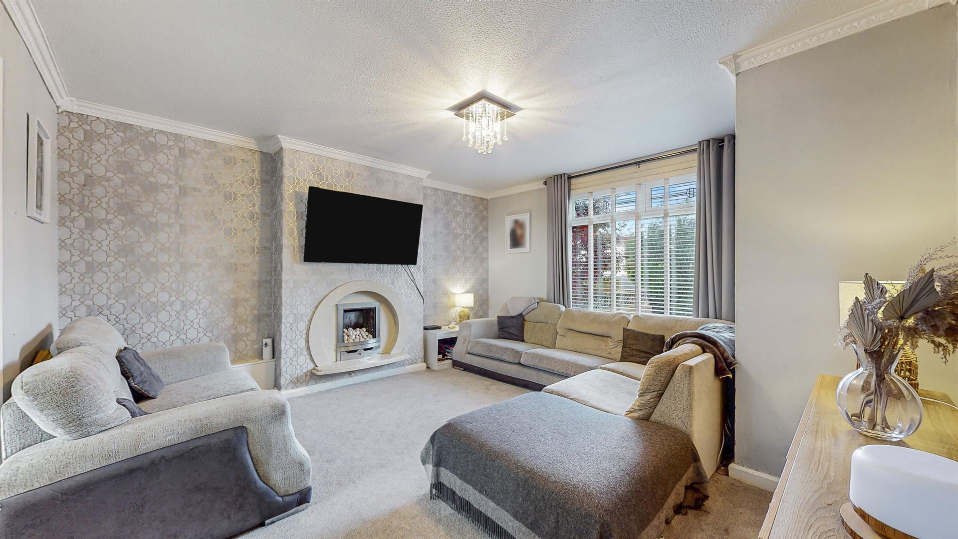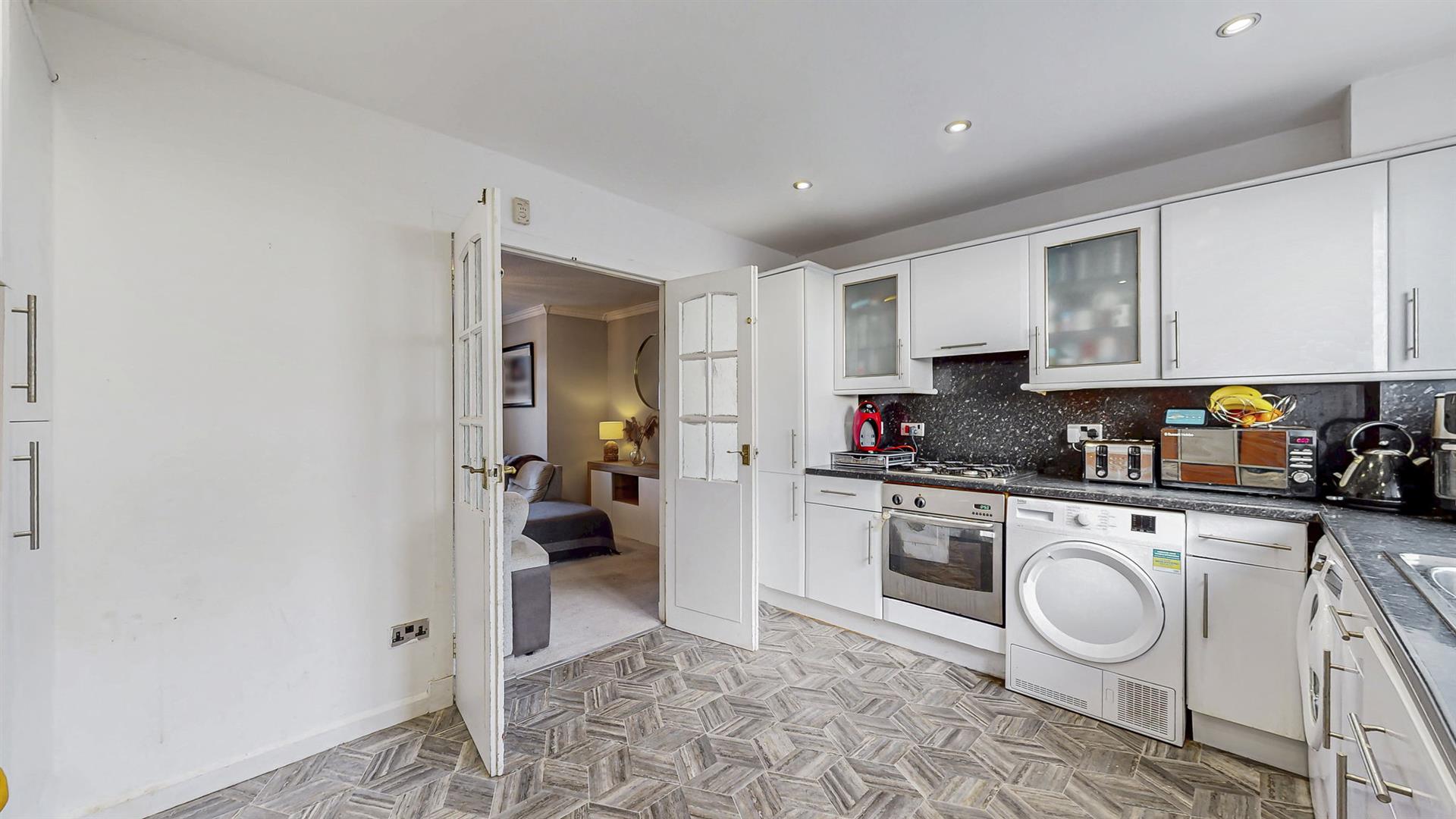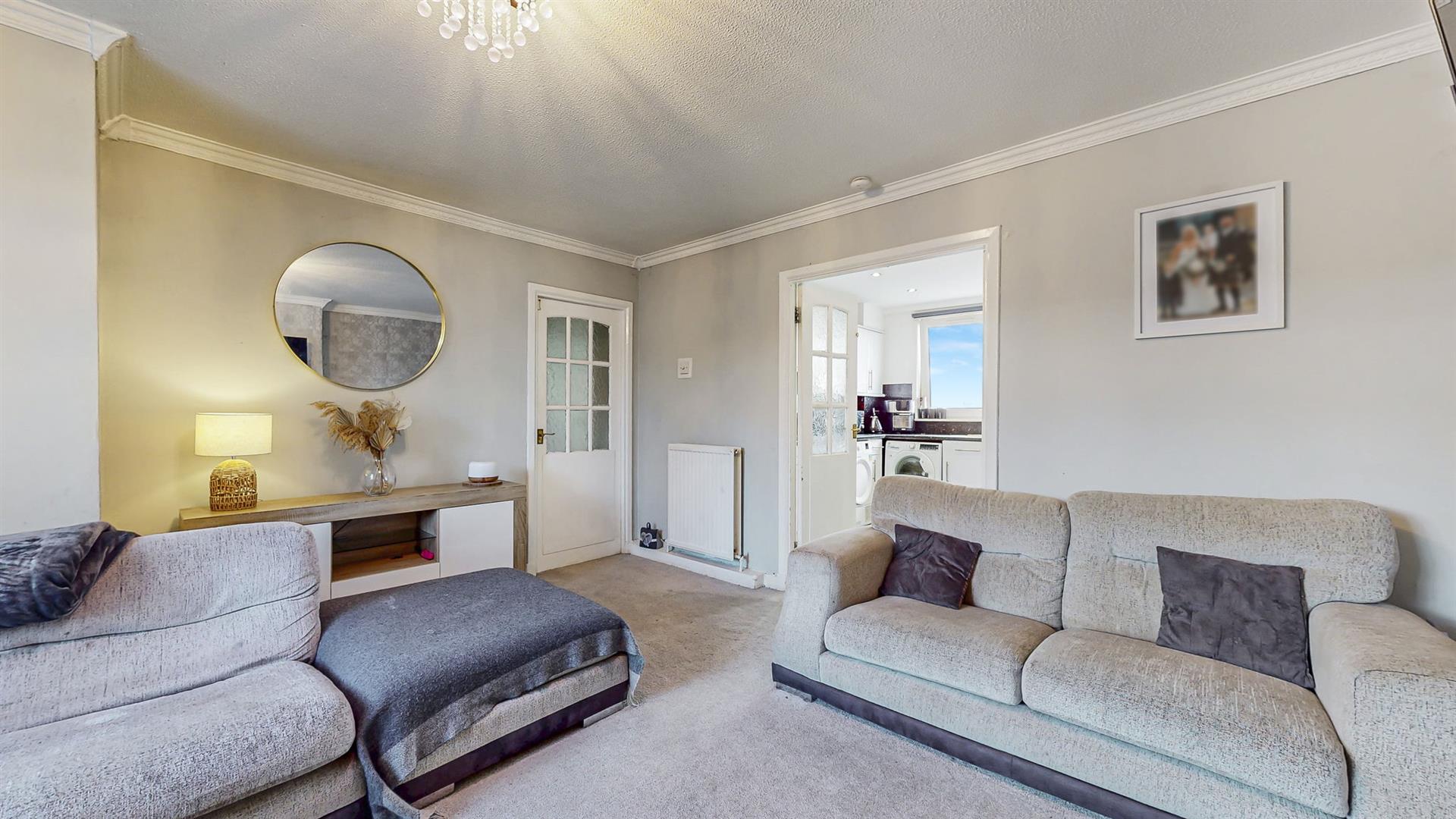To the front, the property benefits from ample on-street parking and a low maintenance lawn garden. Upon entering through the modern uPVC door, you are welcomed into the reception hallway which leads you in the first instance to the neutrally decorated lounge. A large window surrounds this space with an abundance of natural sunlight. The fitted kitchen has an array of gloss white wall and base mounted units paired with contrasting black worktops, creating a modern clean space. Integrated appliances include a gas hob, oven, extractor fan and fridge-freezer. Space has also been allocated for a free-standing washing machine and dryer. Access to the rear garden is also available from the kitchen. Three generously proportioned bedrooms are available, two of which have the added benefit of fitted storage. A modern family bathroom completes this property which comprises of a bathtub with electric shower over, vanity unit and W.C. The rear garden is accessed via the side of the property or rear door from the kitchen and is mainly laid to lawn.