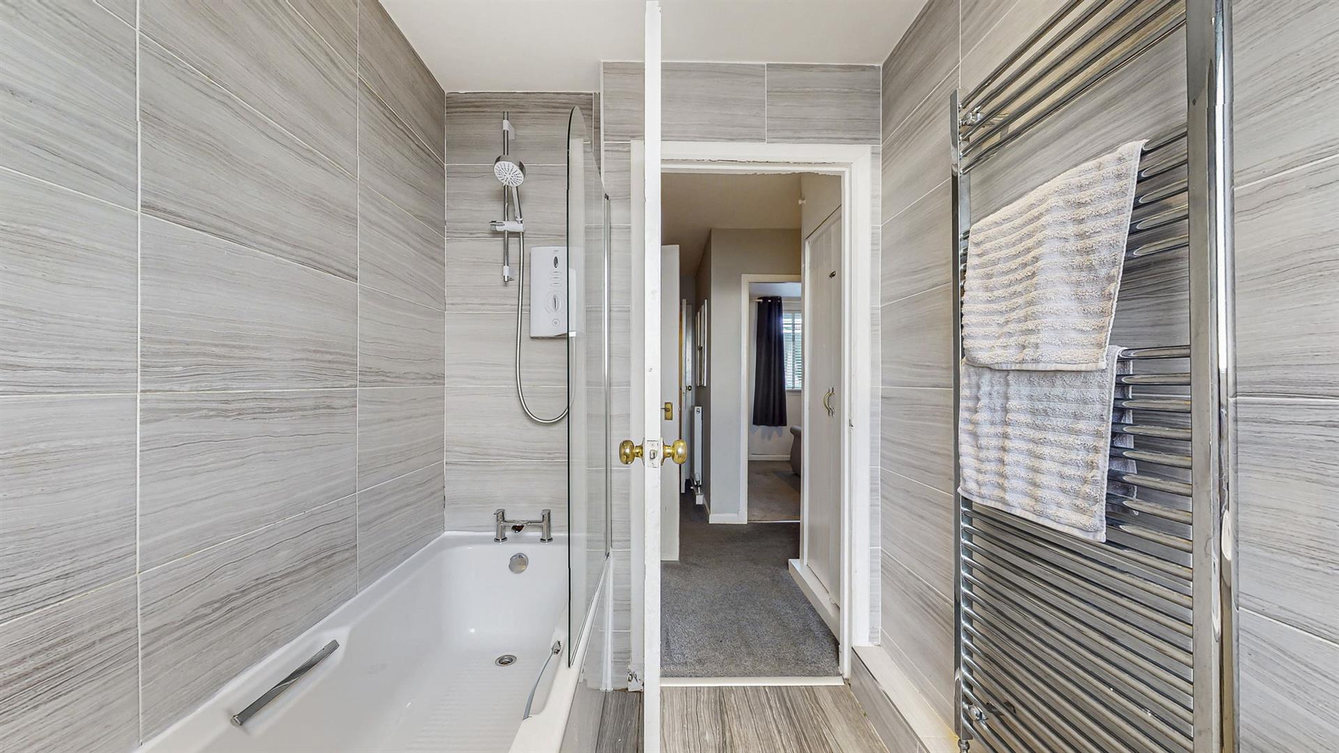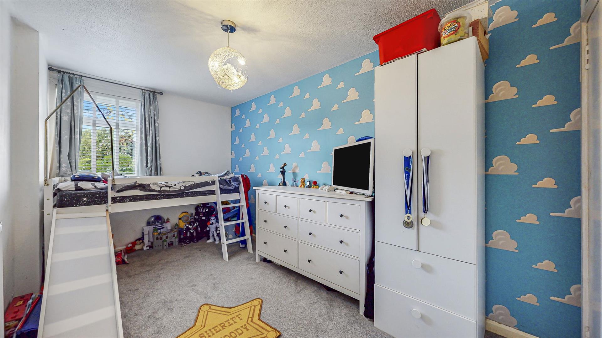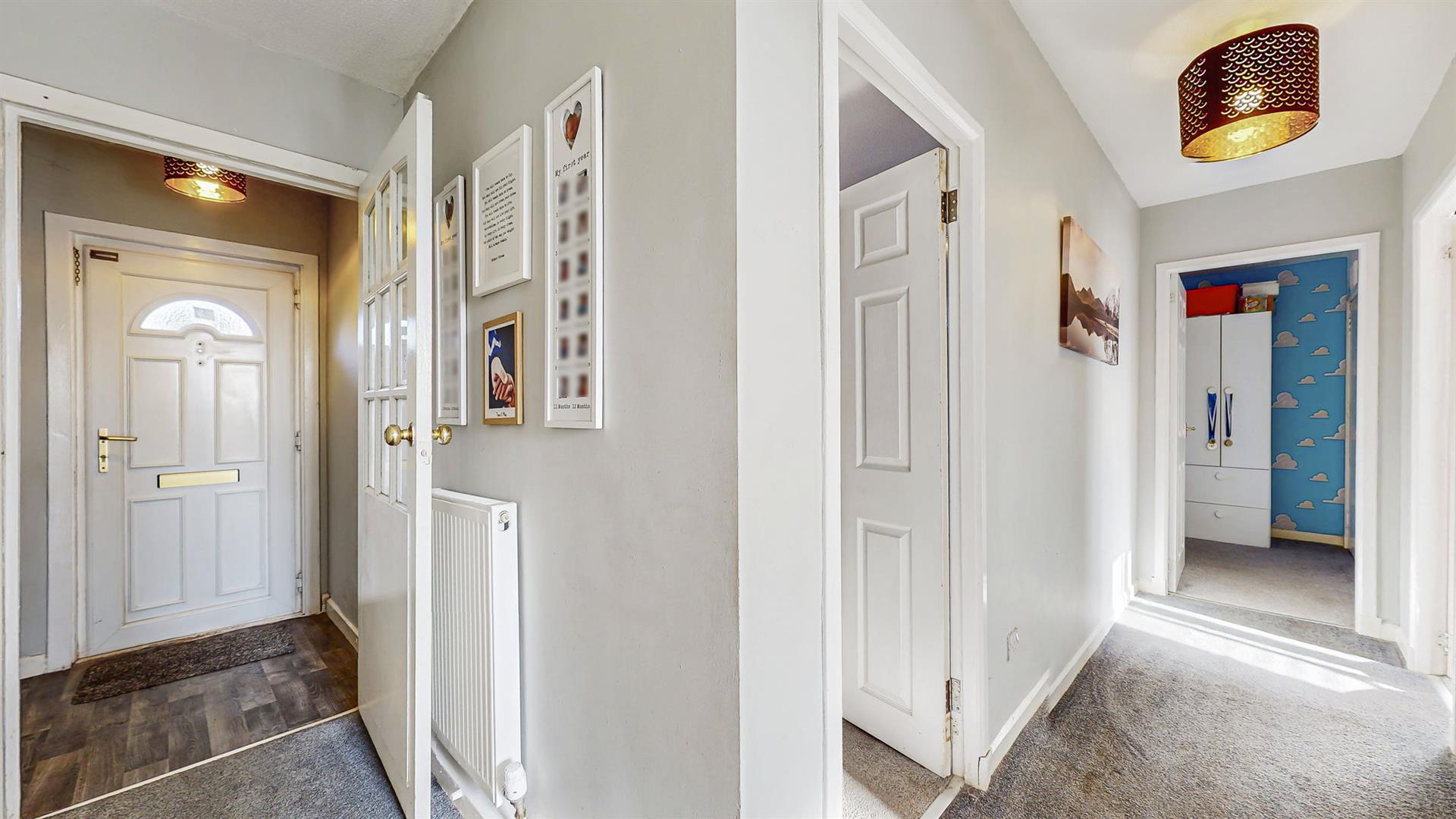 To the front, the property benefits from ample on-street parking and a low maintenance lawn garden. Upon entering through the modern uPVC door, you are welcomed into the reception hallway which leads you in the first instance to the neutrally decorated lounge. A large window surrounds this space with an abundance of natural sunlight. The fitted kitchen has an array of gloss white wall and base mounted units paired with contrasting black worktops, creating a modern clean space. Integrated appliances include a gas hob, oven, extractor fan and fridge-freezer. Space has also been allocated for a free-standing washing machine and dryer. Access to the rear garden is also available from the kitchen. Three generously proportioned bedrooms are available, two of which have the added benefit of fitted storage. A modern family bathroom completes this property which comprises of a bathtub with electric shower over, vanity unit and W.C. The rear garden is accessed via the side of the property or rear door from the kitchen and is mainly laid to lawn.