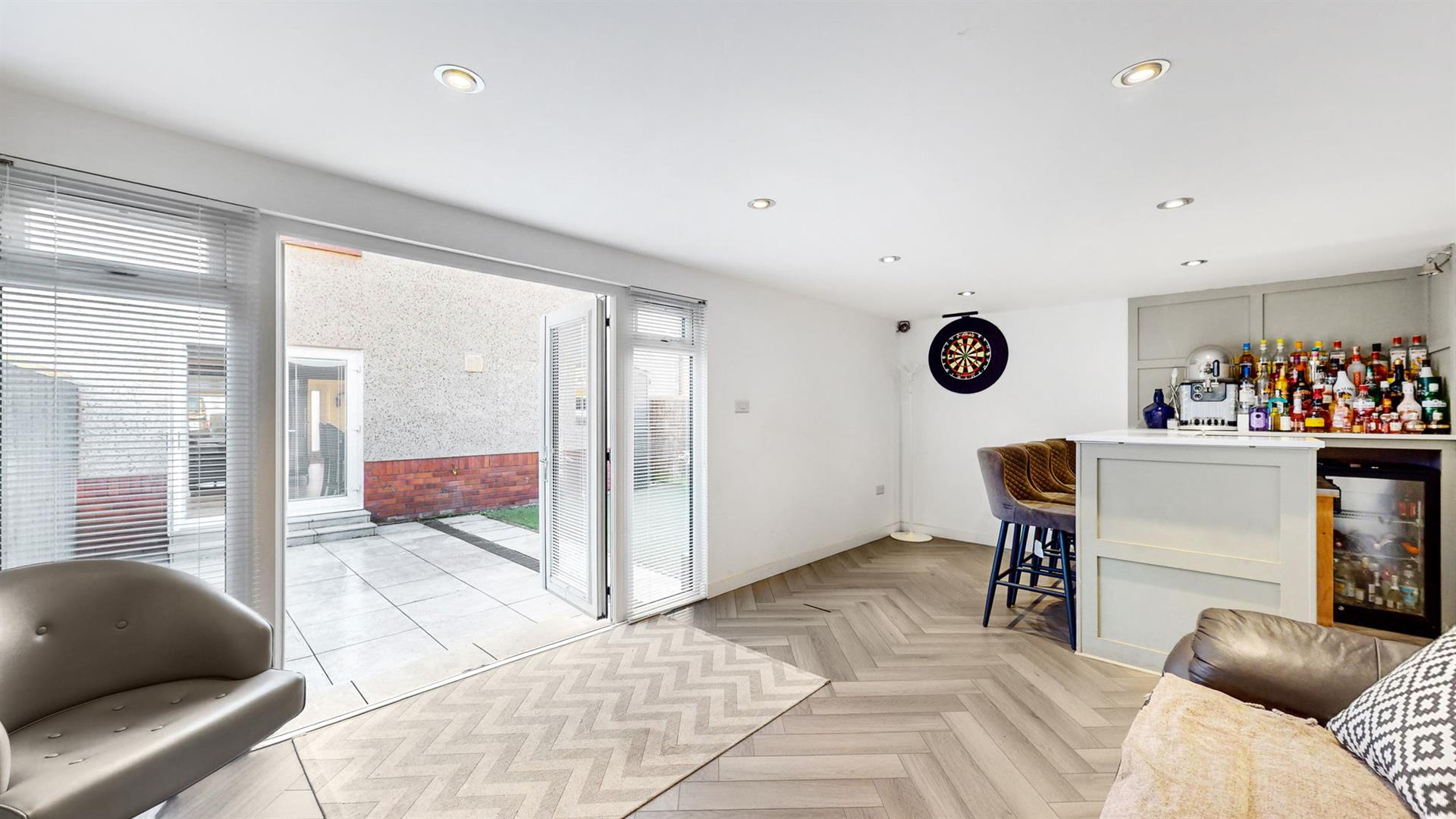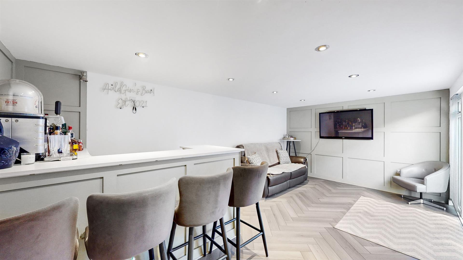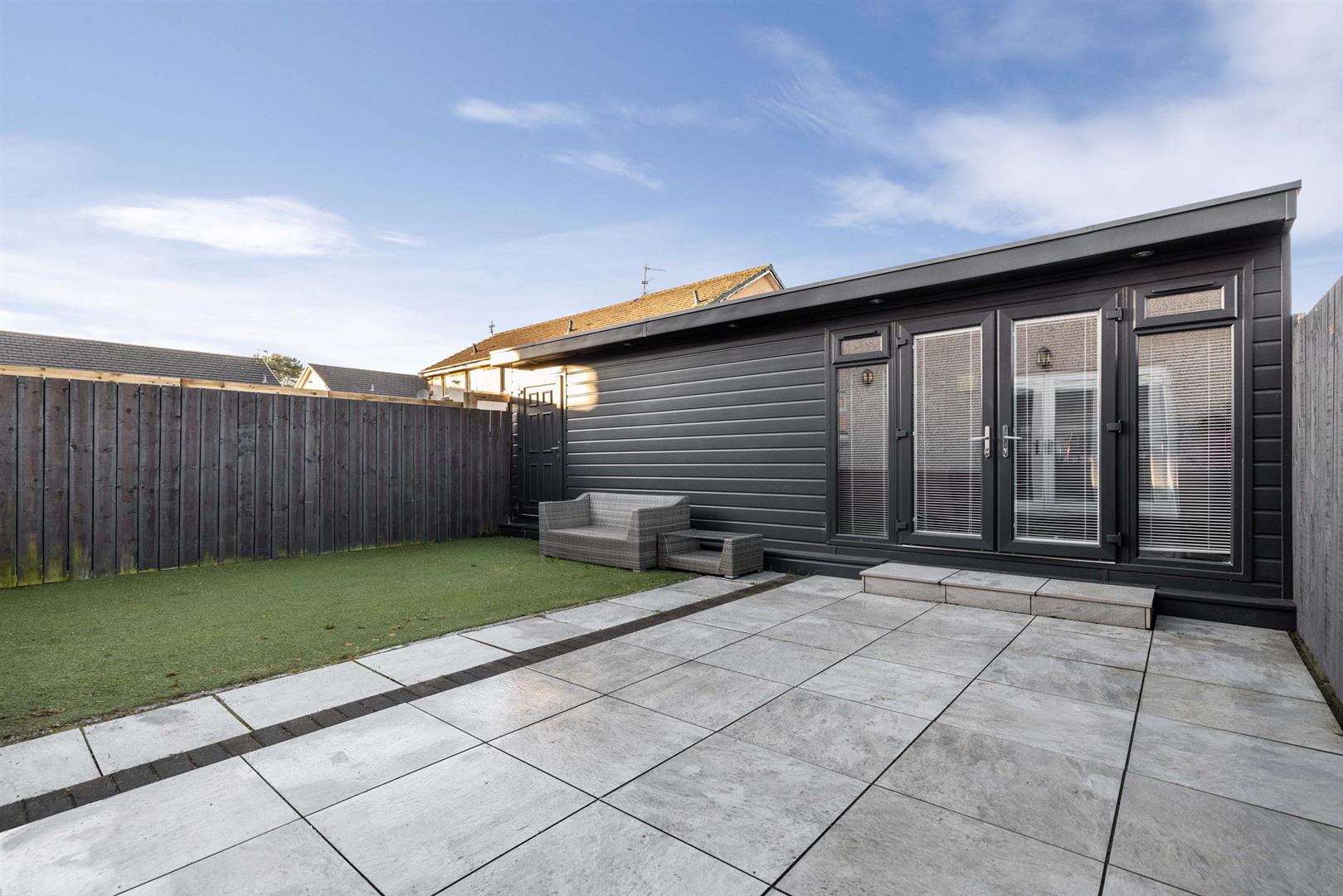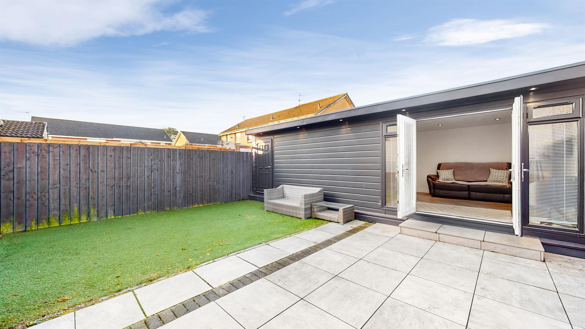 The delightful rear garden is fully enclosed, creating a safe and secure environment for children and pets alike. With sections of patio and astroturf, this is the perfect space for socialising and al-fresco dining whilst being easy to maintain.
