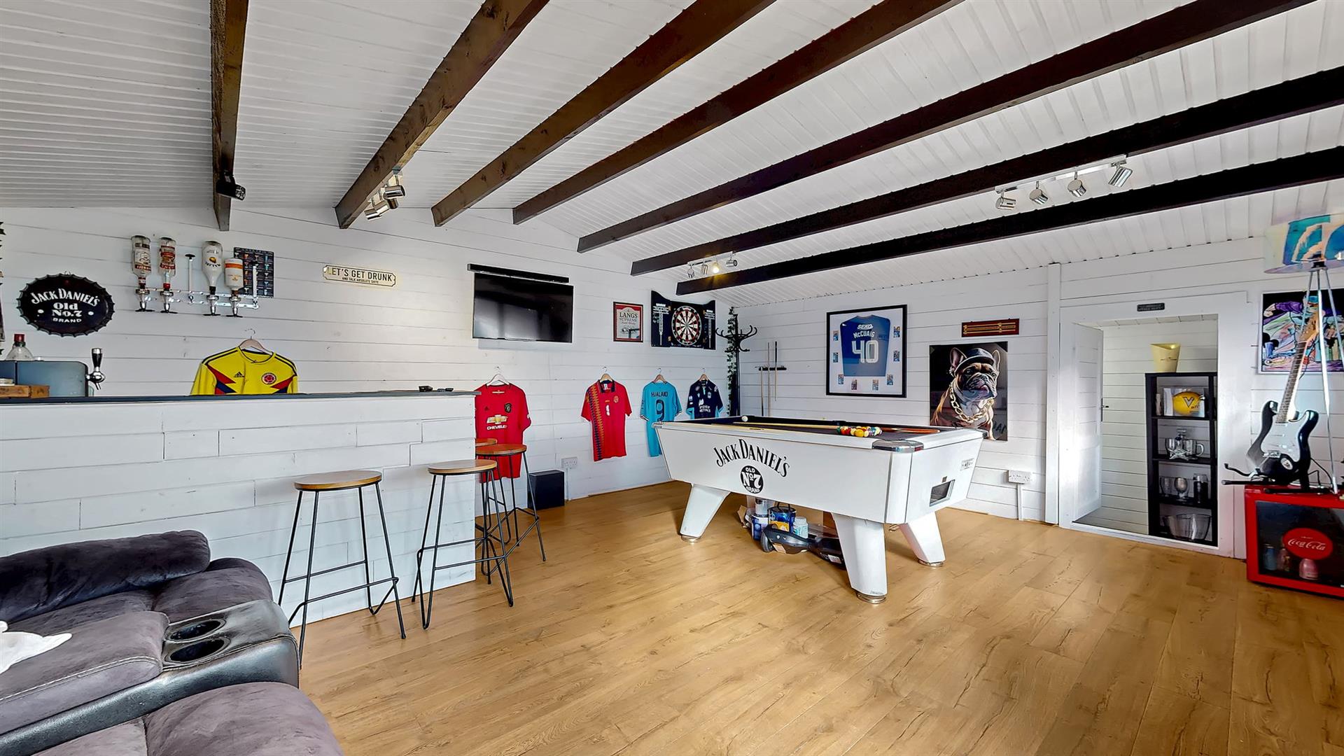 The rear garden of this property must be seen to appreciate the amount of space on offer. Accessed via the kitchen and offering a combination of lawn and decking areas - ideal for outdoor dining and enjoying the warmer months. This private space is fully enclosed, creating a safe space for children and pets to enjoy. A splendid summer house with W.C. is also located within the garden and has been cleverly converted into a bar and family hangout/games area making it a perfect space for entertaining.