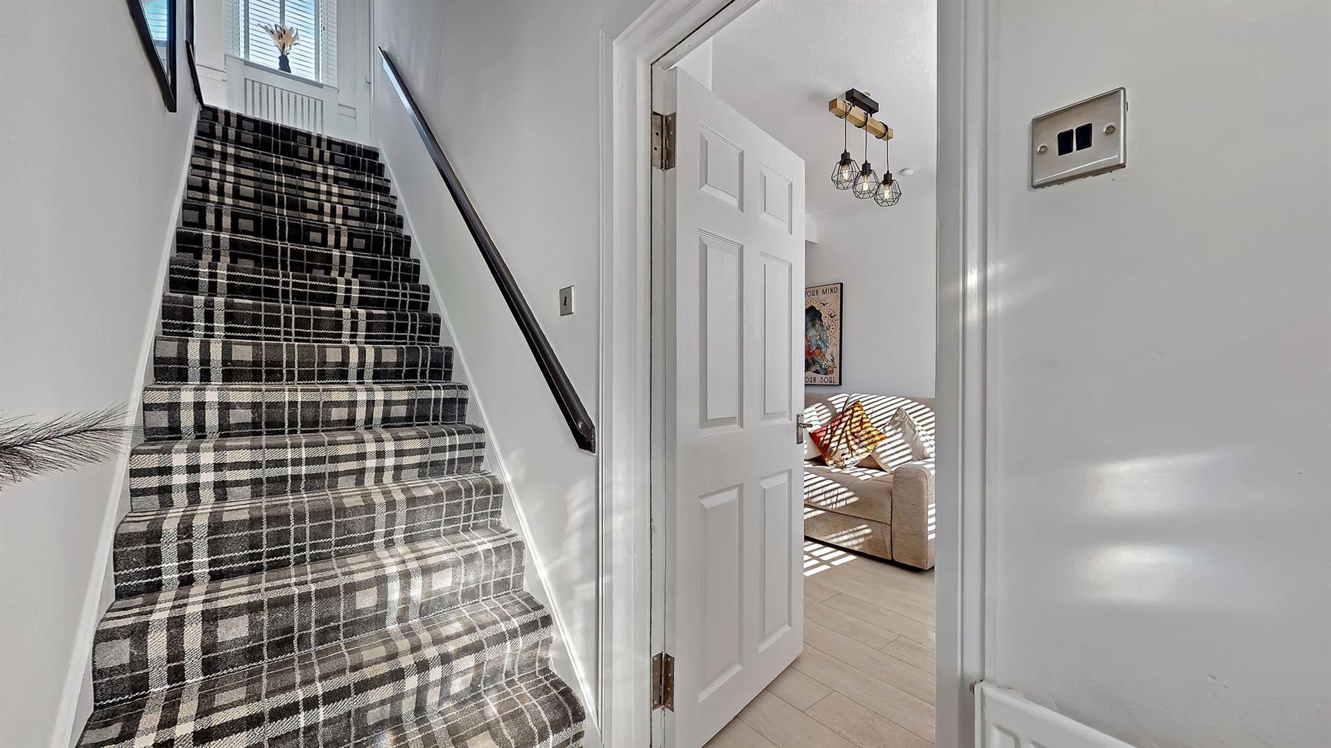 Entrance is via the front of the building, leading into the welcoming hallway which provides access firstly to the neutrally decorated lounge. With large dual aspect windows, this room is filled with an abundance of natural light. A fabulous log burner creates a warm and inviting space, perfect for cosy evenings. The modern fitted kitchen benefits from an array of wall and base units and slimline worktop, creating a sleek and practical space. Completing the ground floor, is a conveniently located ground floor bedroom, currently utilised as a second sitting room.