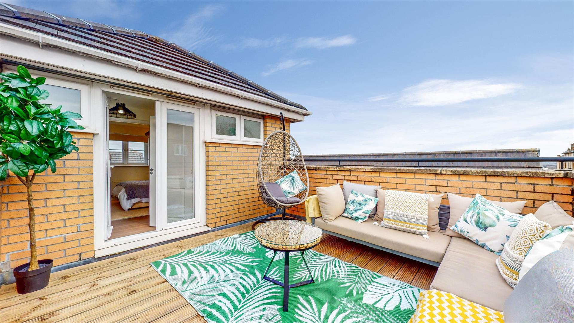 The second floor of this property must be seen to appreciate the space on offer. Boasting a double bedroom with fitted storage, a modern bathroom and private roof top terrace, this is a truly lovely space.