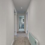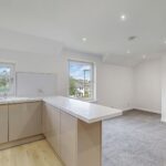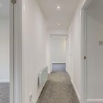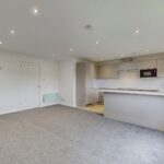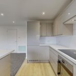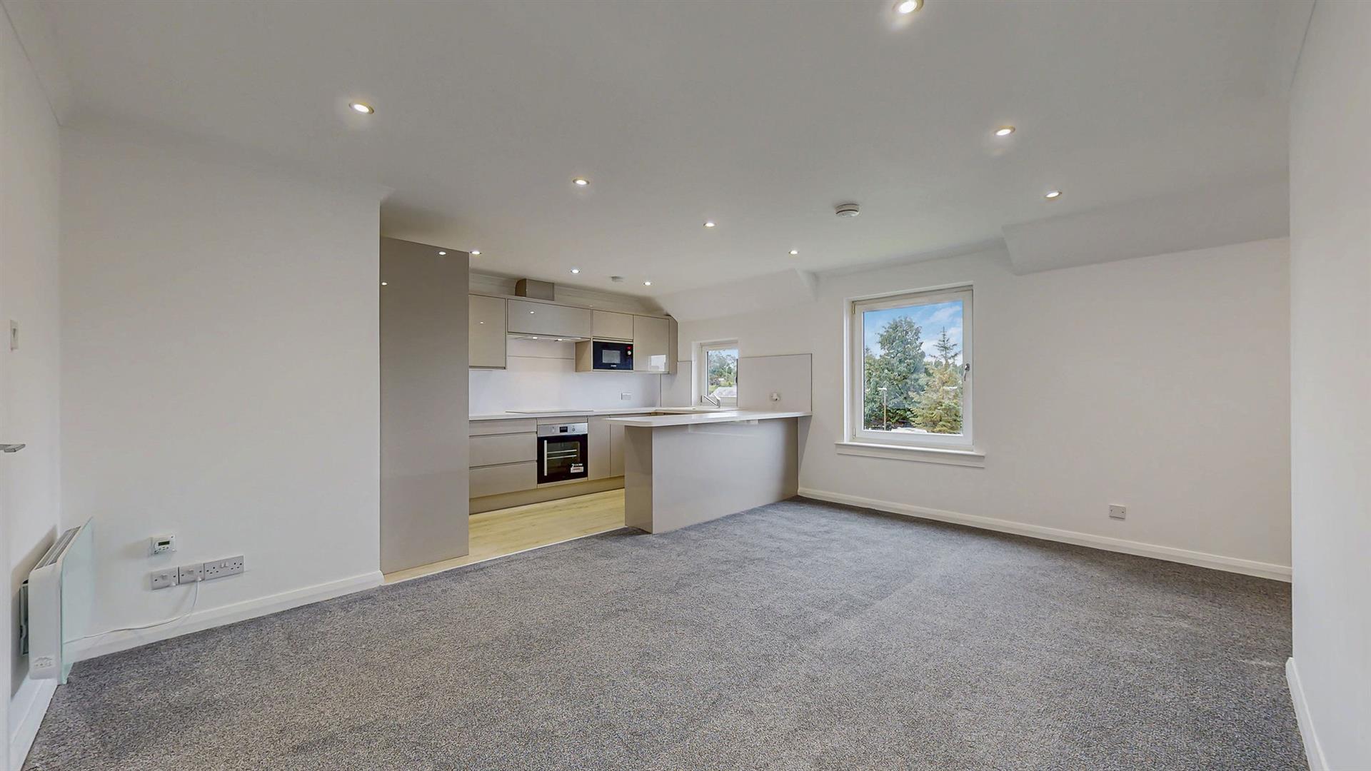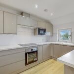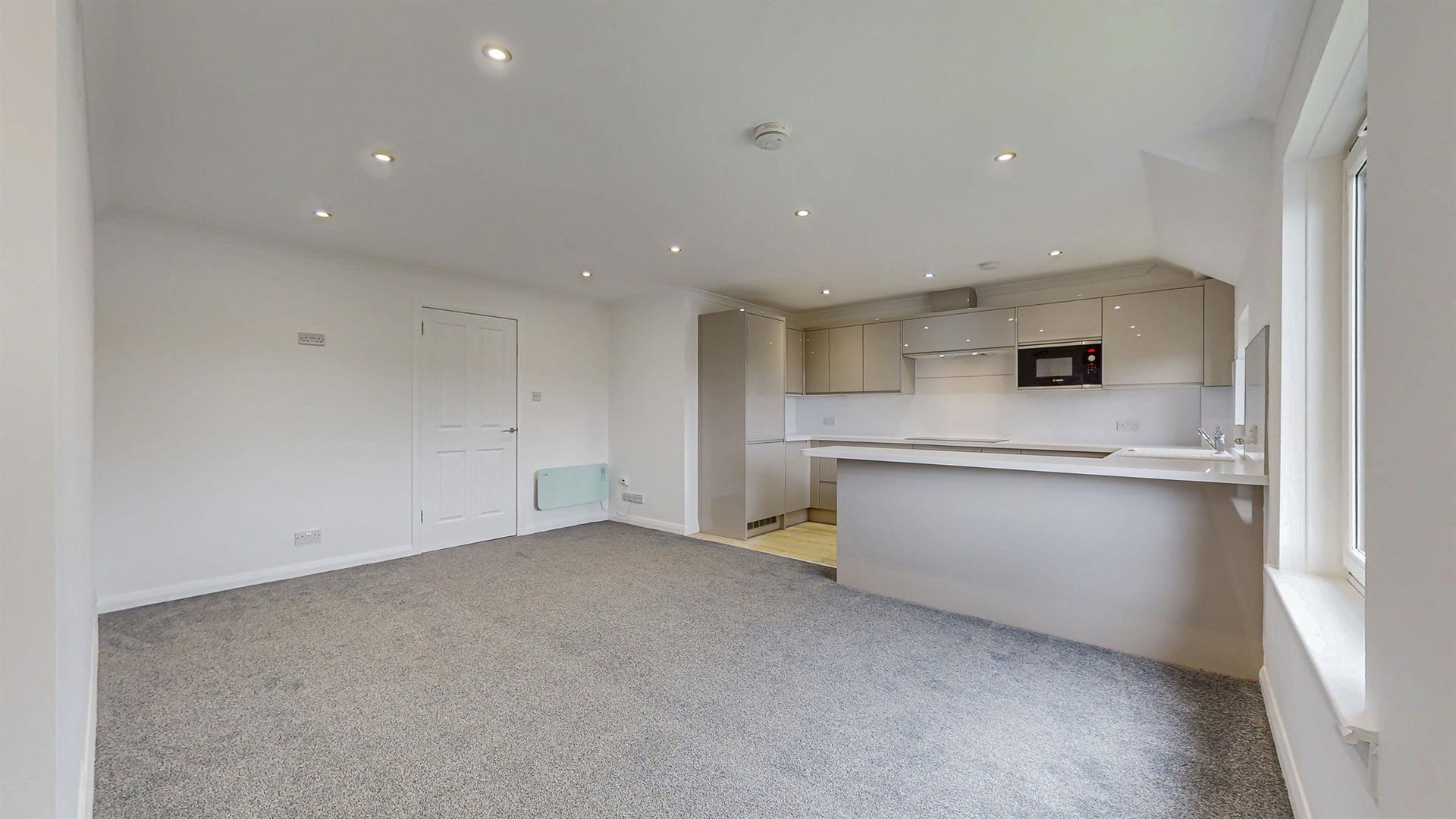 To the front of the property, a compact lawn garden and ample off-street resident’s parking is available. On entrance, a newly carpeted staircase leads to the accommodation on the upper floor. The superb open plan lounge and kitchen boasts large windows flooding this area with natural sunlight and creating a spacious ambience. There is ample space for dining, creating a relaxing and sociable space. The newly fitted kitchen has been designed to a high specification with an array of gloss wall and base mounted units paired with a marble effect worktop, making this a fashionable and efficient workspace. The kitchen further benefits from new integrated appliances, including fridge-freezer, dishwasher, washing machine, microwave, hob, oven and extractor fan.