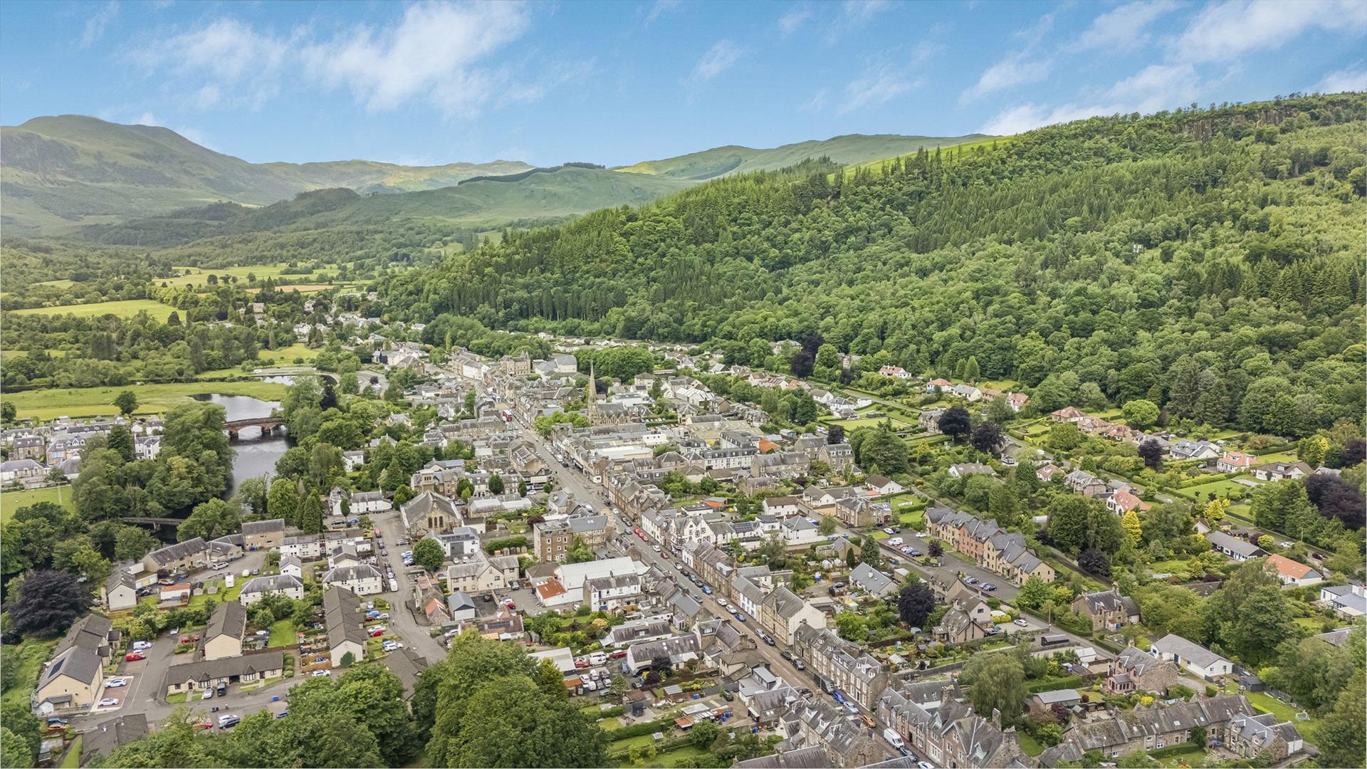 The town of Callander is renowned for its lovely setting amidst the Trossachs, now part of the National Park & providing good local shopping, plus excellent schooling facilities, as well as being on the doorstep of some glorious countryside, which provides all forms of amenities for outdoor enthusiasts. Callander is well located for access to Central Scotland, Stirling being approximately 14 miles away & Glasgow about 37 miles.