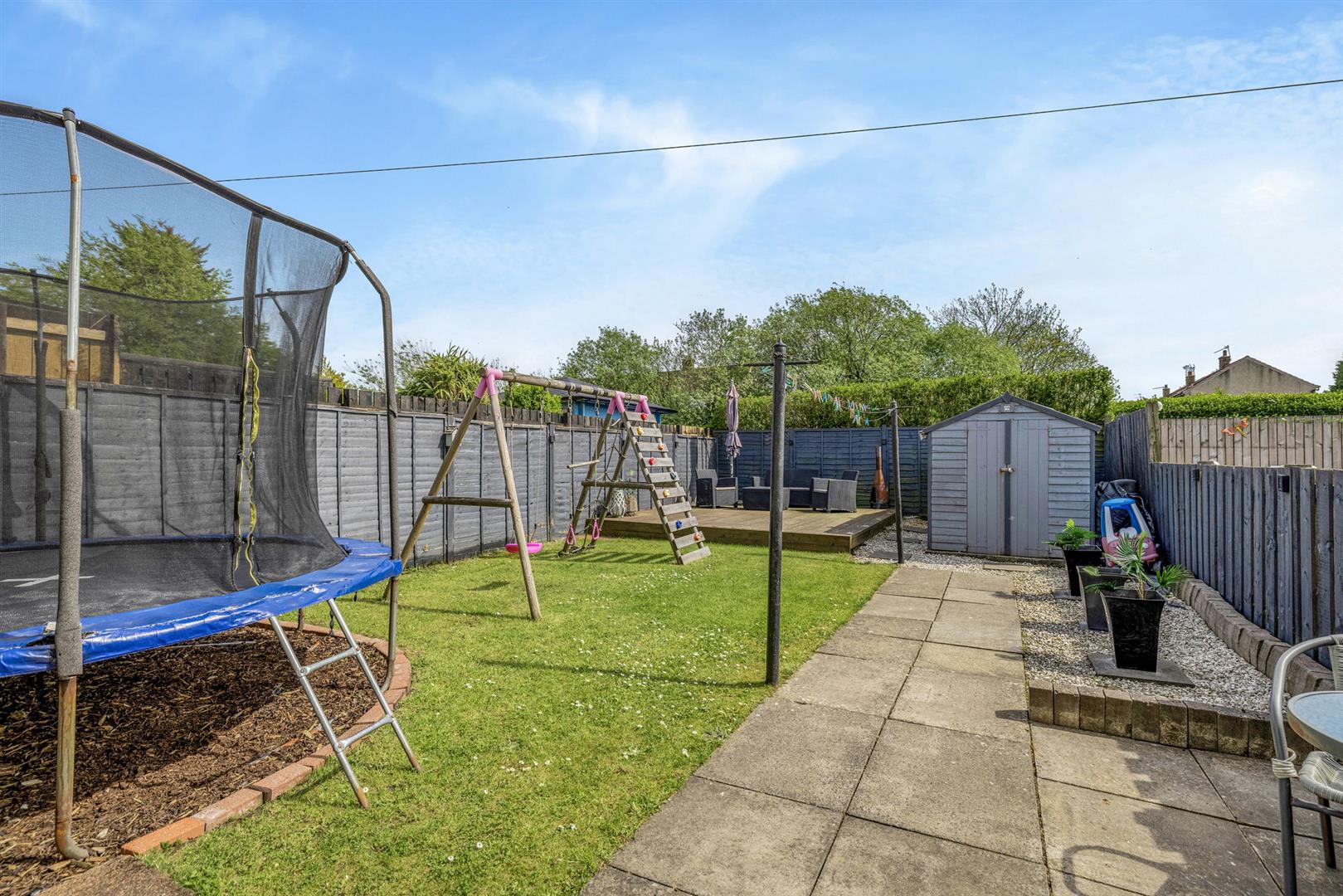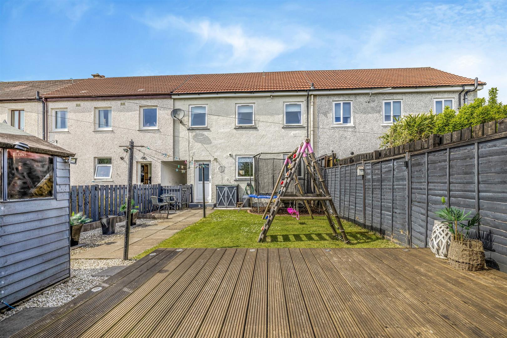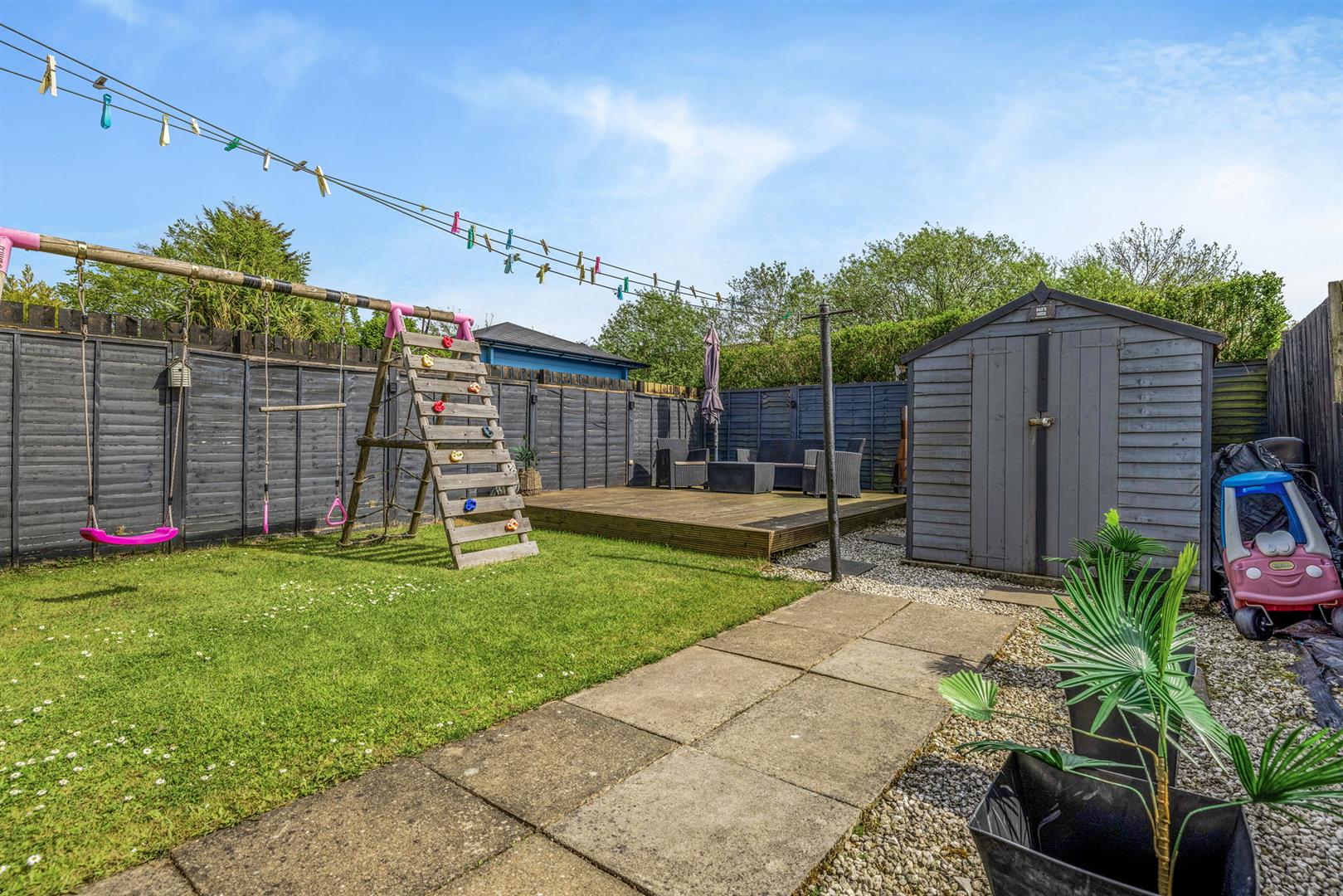 The south facing rear garden is fully enclosed, creating a safe and secure environment for children and pets alike. This area has been designed to be low maintenance with patio, lawn and decking areas, perfect for socialising and al-fresco dining.