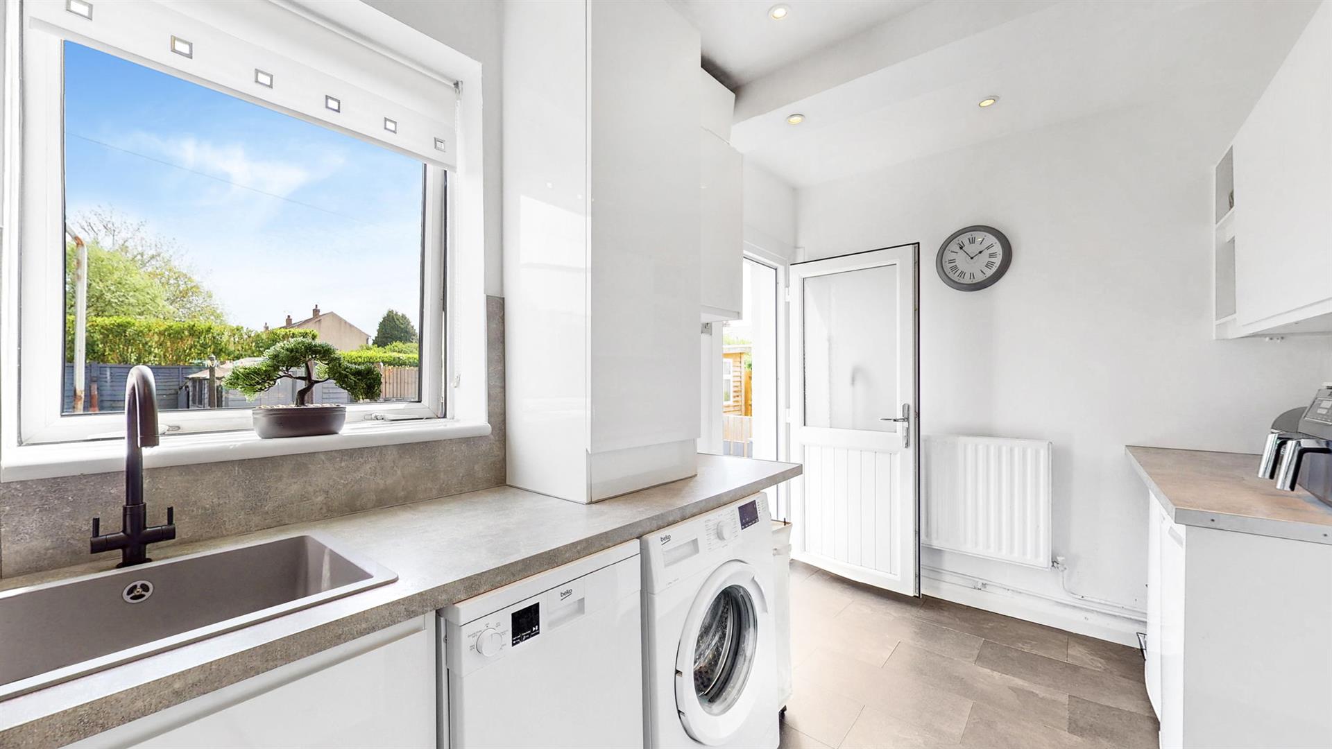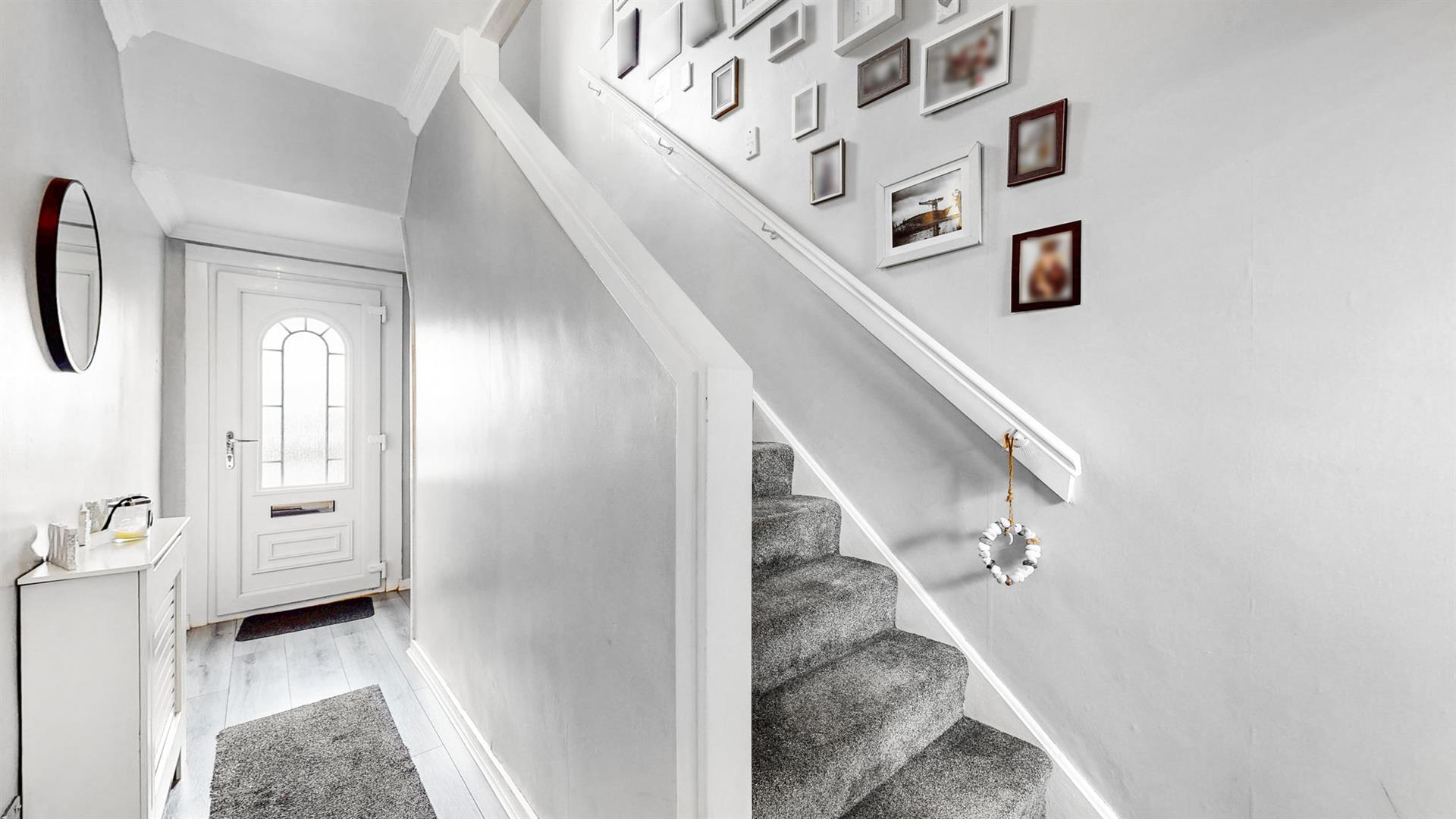 To the front of the property is a low maintenance garden leading to the modern uPVC door. Upon entry into the welcoming hallway, a storage area is available to the side, perfect for storing outdoor garments. The neutrally decorated lounge benefits from a compact dining space and a large window which floods this space with natural sunlight. This room also benefits from a built in media wall and decorative fireplace, creating a warm cosy feel.