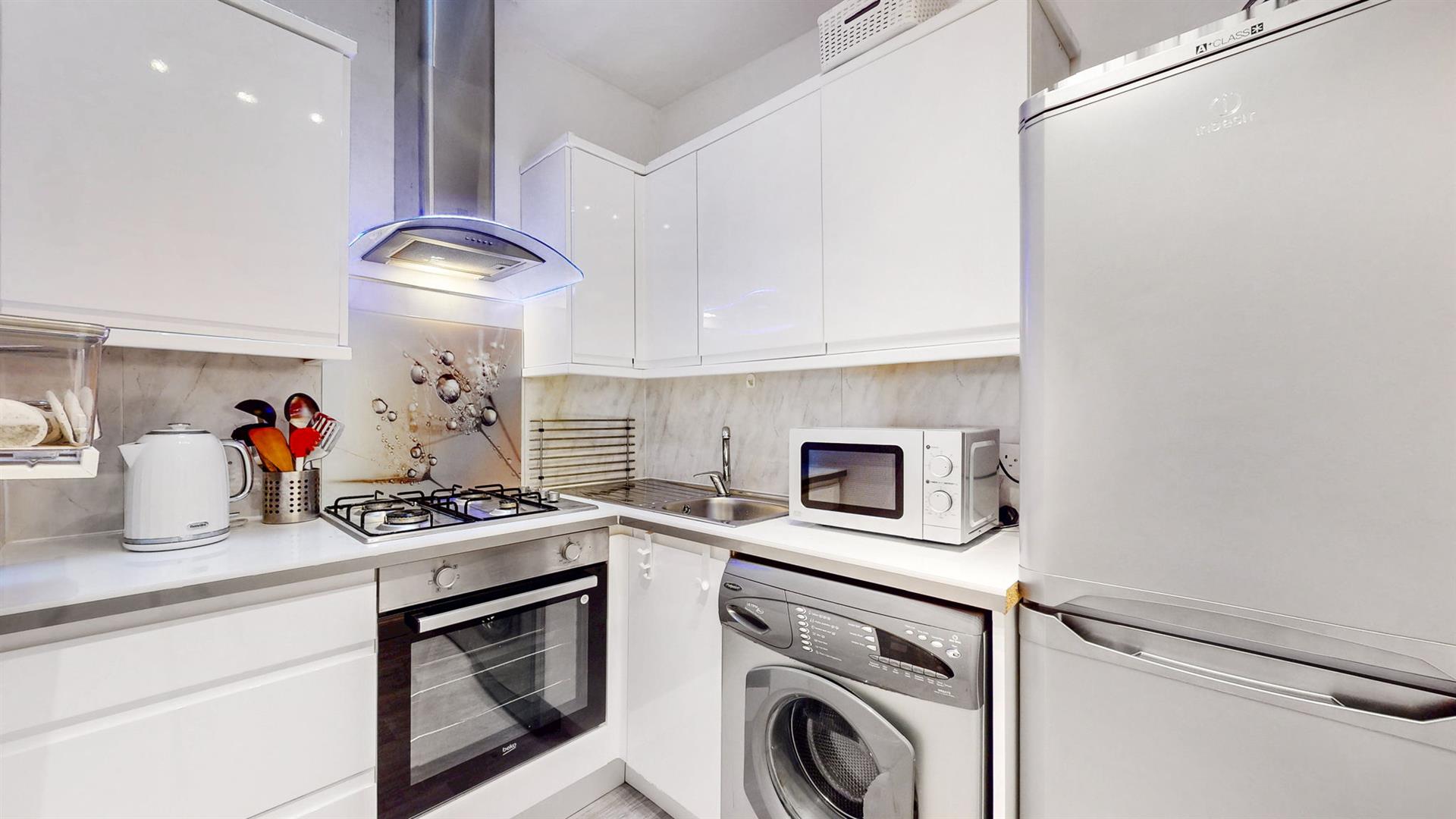 The welcoming reception hallway leads to all rooms within this property. The lounge boasts a feature fireplace and large windows, flooding this room with natural light. The modern fitted kitchen hosts white gloss wall and base mounted units paired with co-ordinating worktops. Integrated appliances include a gas hob, oven and extractor fan. Ample space is also available for a free-standing washing machine and fridge freezer. The bedroom is well proportioned and benefits from fitted storage. The shower room, comprising of walk-in shower cubicle and vanity unit is conveniently separate from a cloakroom with separate wash hand basin and W.C. The apartment also benefits from gas central heating and double glazing throughout, providing all rooms with a lovely warmth all year round.