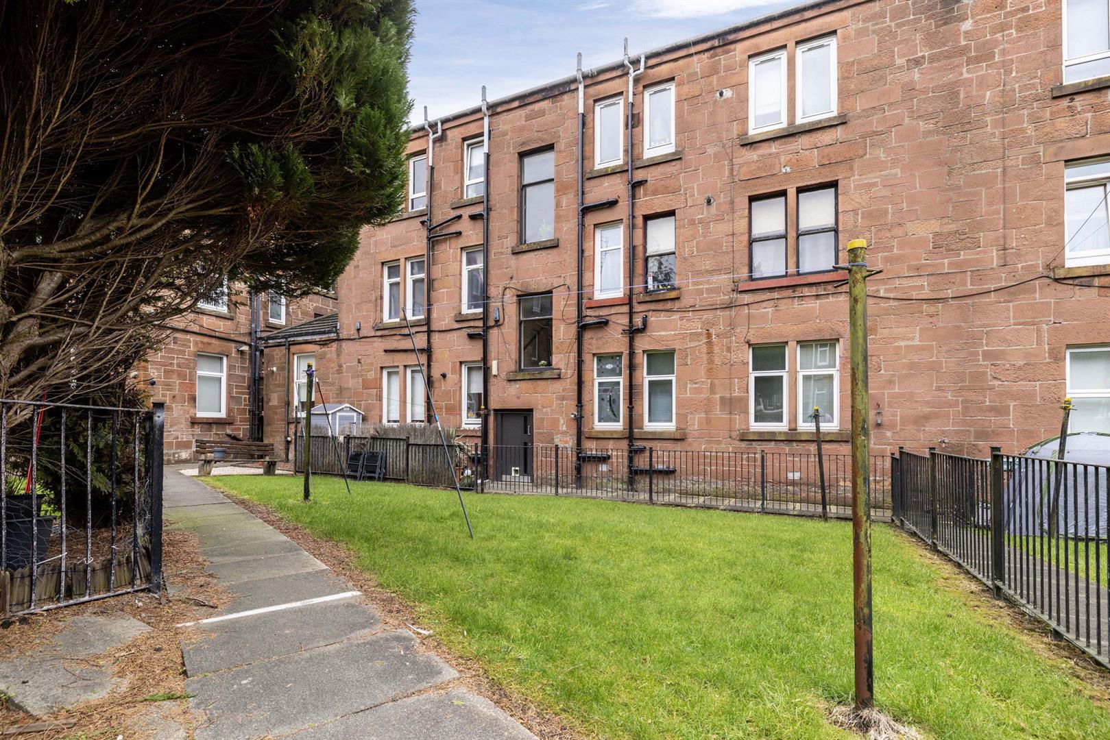 To the front and side, the property benefits from ample on street parking. Entrance is via a secure door entry system leading into the communal area which is clean and well presented. The rear gardens have been well maintained and benefit from a drying green and space to relax and enjoy some sunshine.