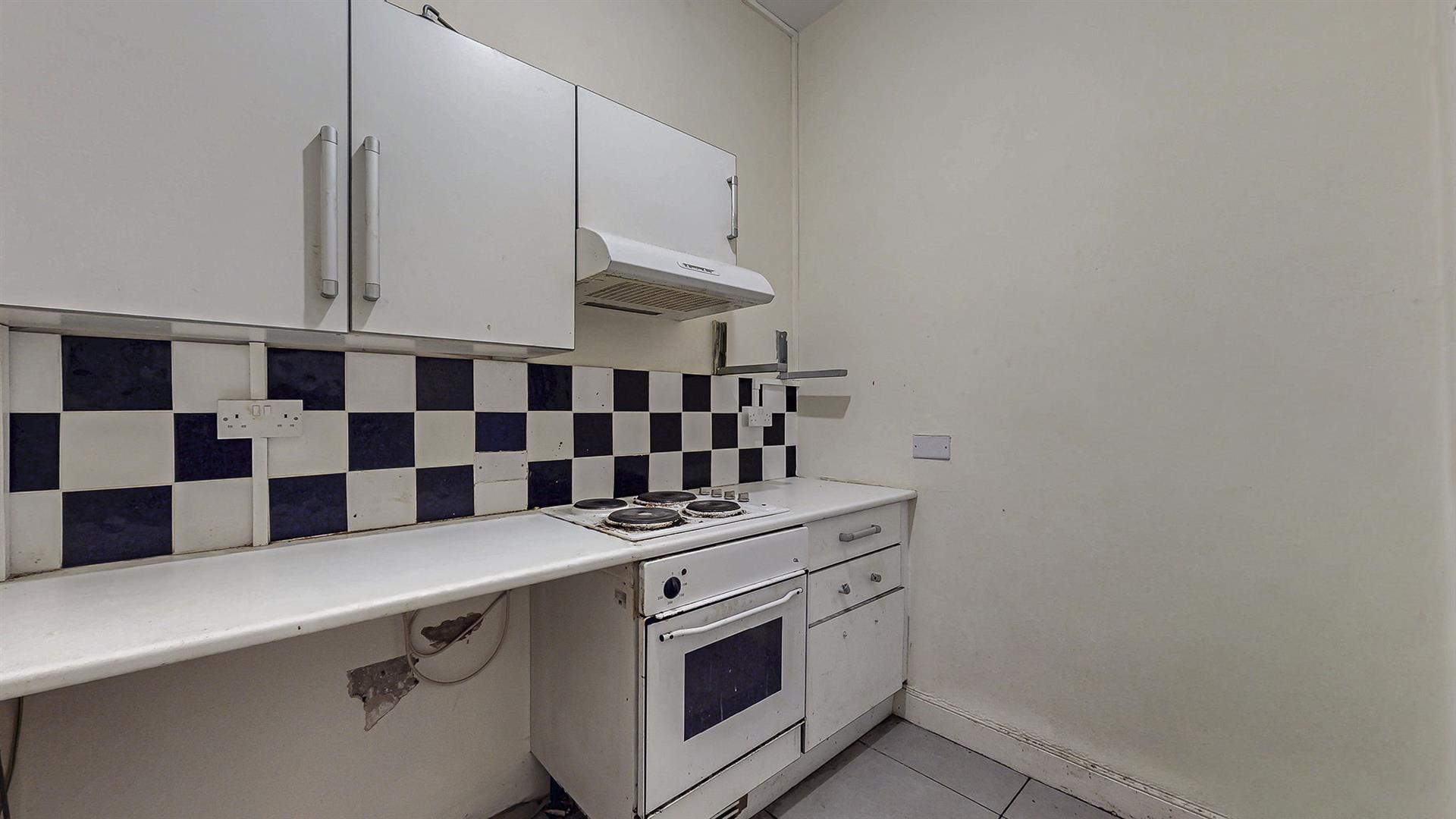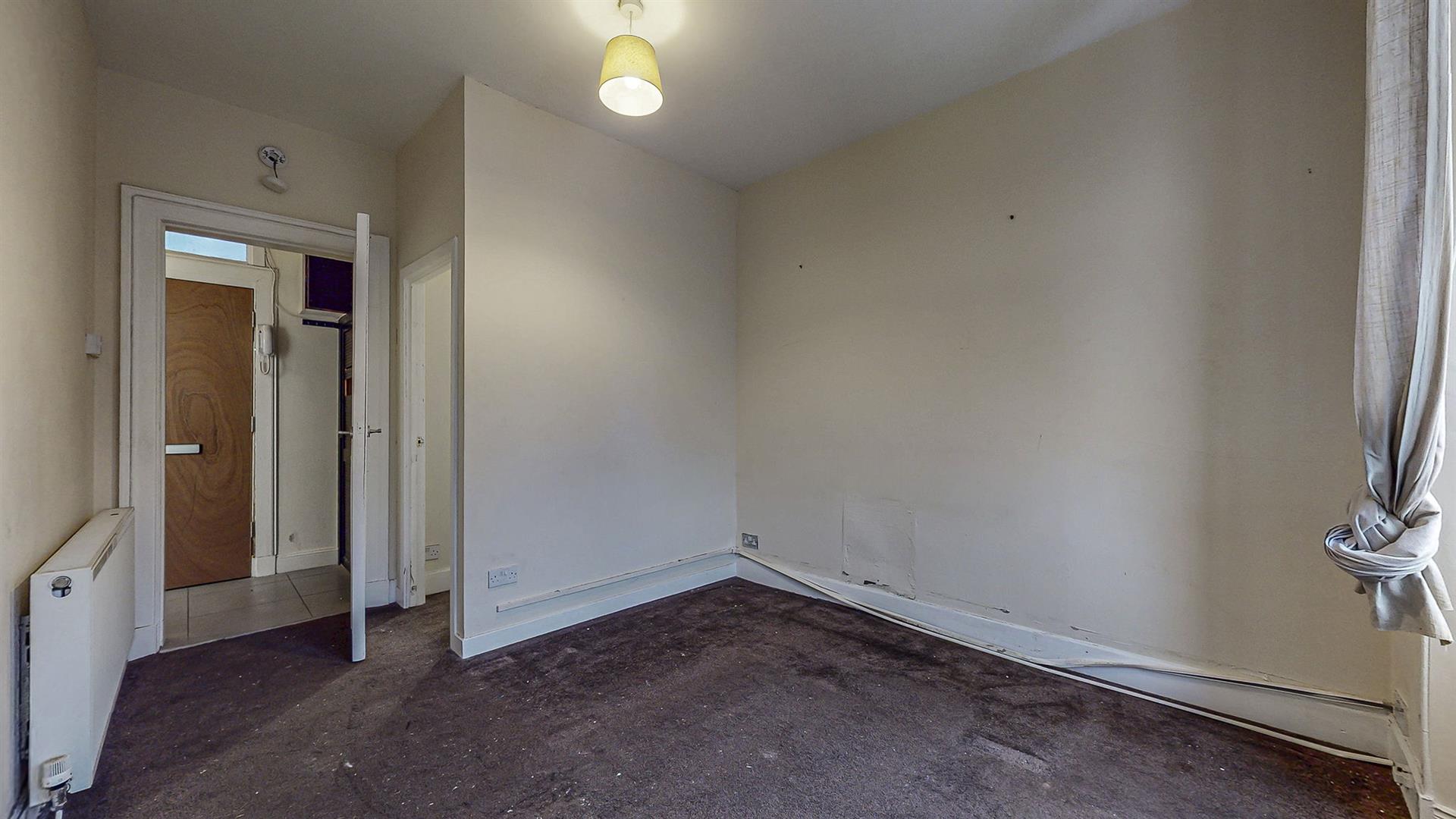 On entrance into the property, the hallway provides access to all rooms. The lounge benefits from large windows filling this space with an abundance of natural light. The fitted kitchen is accessed at the end of the hallway and hosts wall and base mounted units with additional space available for free-standing appliances. The double bedroom with separate space for walk-in wardrobe, home office etc is generous enough to accommodate fitted storage. Completing this property, is a partially tiled bathroom which comprises of a mixer shower over the bathtub, wash-hand basin and W.C.