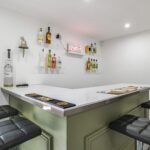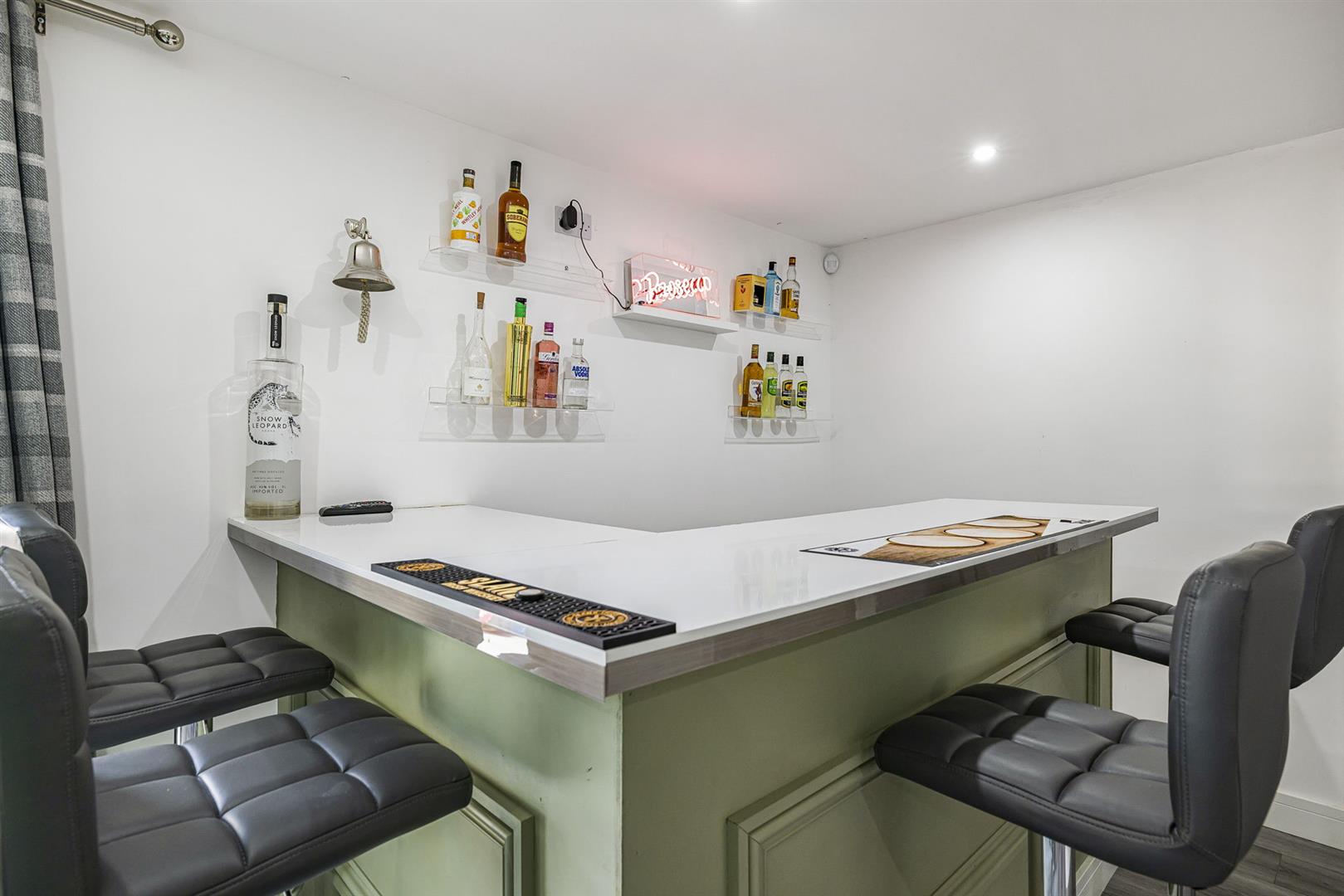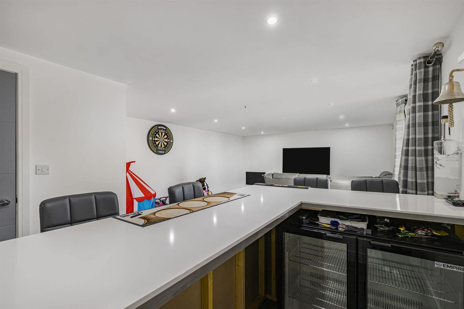 The professionally landscaped rear garden is outstanding with space for relaxation and al-fresco dining. The splendid outhouse has been constructed with entertaining in mind and boasts a fantastic seating area, bar and cloakroom with luxurious hot tub to the side. A large garage is also available, which can be accessed from the front or rear gardens.