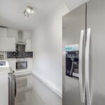 The modern, newly fitted kitchen has an array of white gloss white wall and base mounted units paired with white stone effect worktops, creating a fashionable and efficient workspace. The kitchen further benefits from a range of quality integrated appliances to include hob, oven and extractor fan and further space for a free-standing fridge-freezer and washing machine. Completing this floor is a ground floor bedroom which could also be utilised as a dining room or home office.