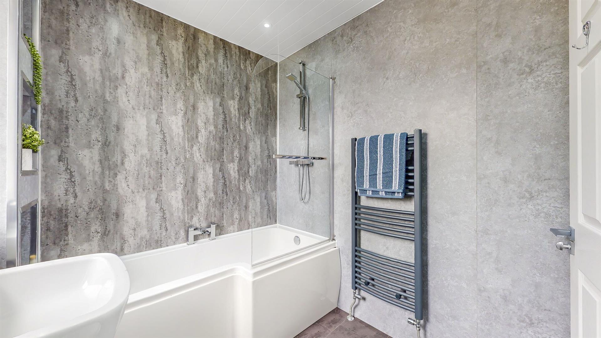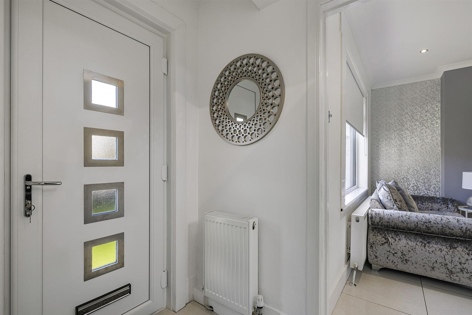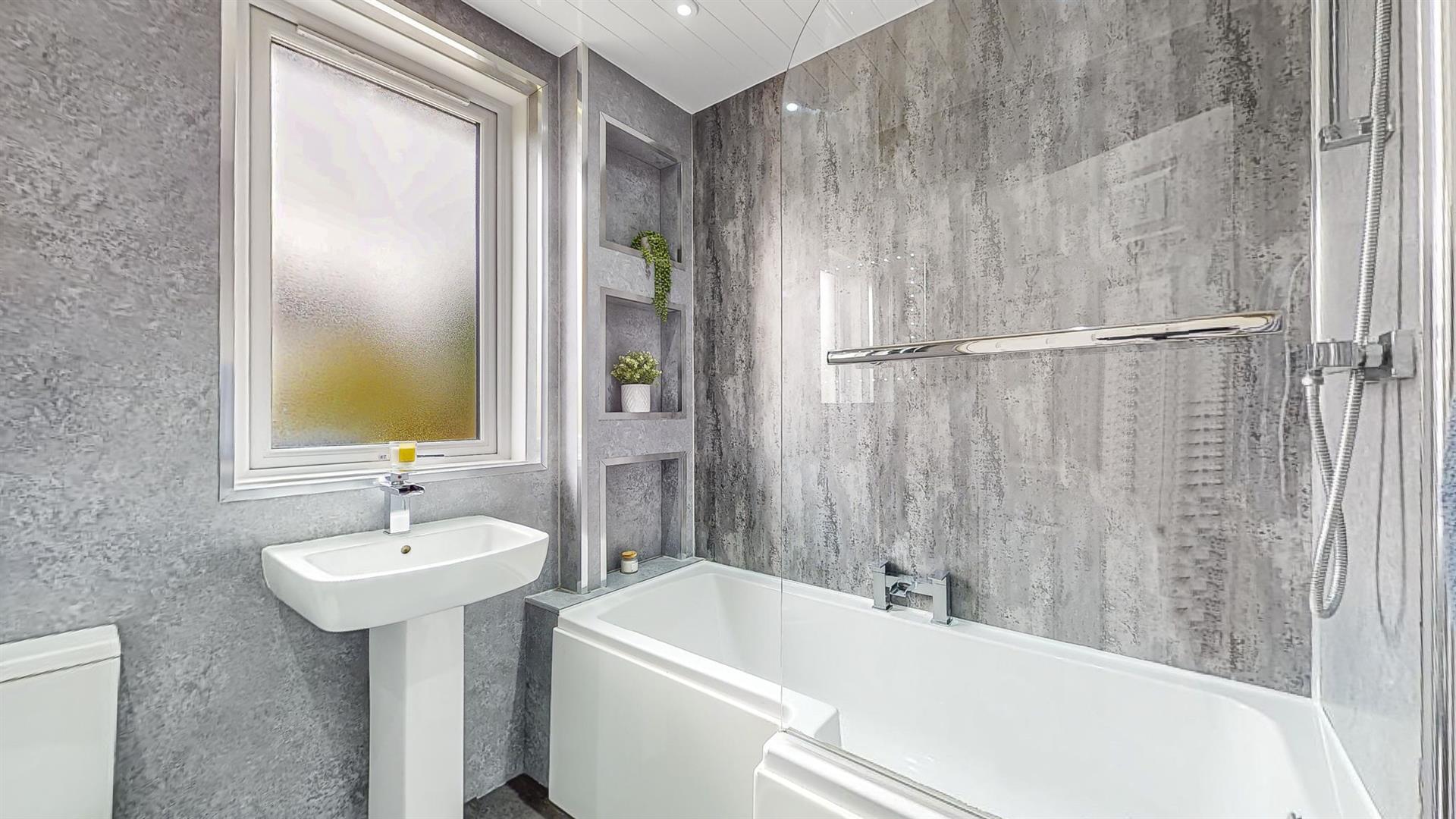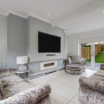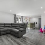 To the front, the property benefits from an easily maintained lawn garden, driveway and additional on street parking. Upon entering through the modern UPVC door, you are welcomed in through to the reception hallway which leads you in the first instance to the lounge. The neutrally decorated family lounge boasts under floor heating, a feature media wall with inset fire. With large windows and patio doors leading to the garden at opposing ends of this room, the space is filled with natural sunlight.