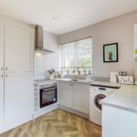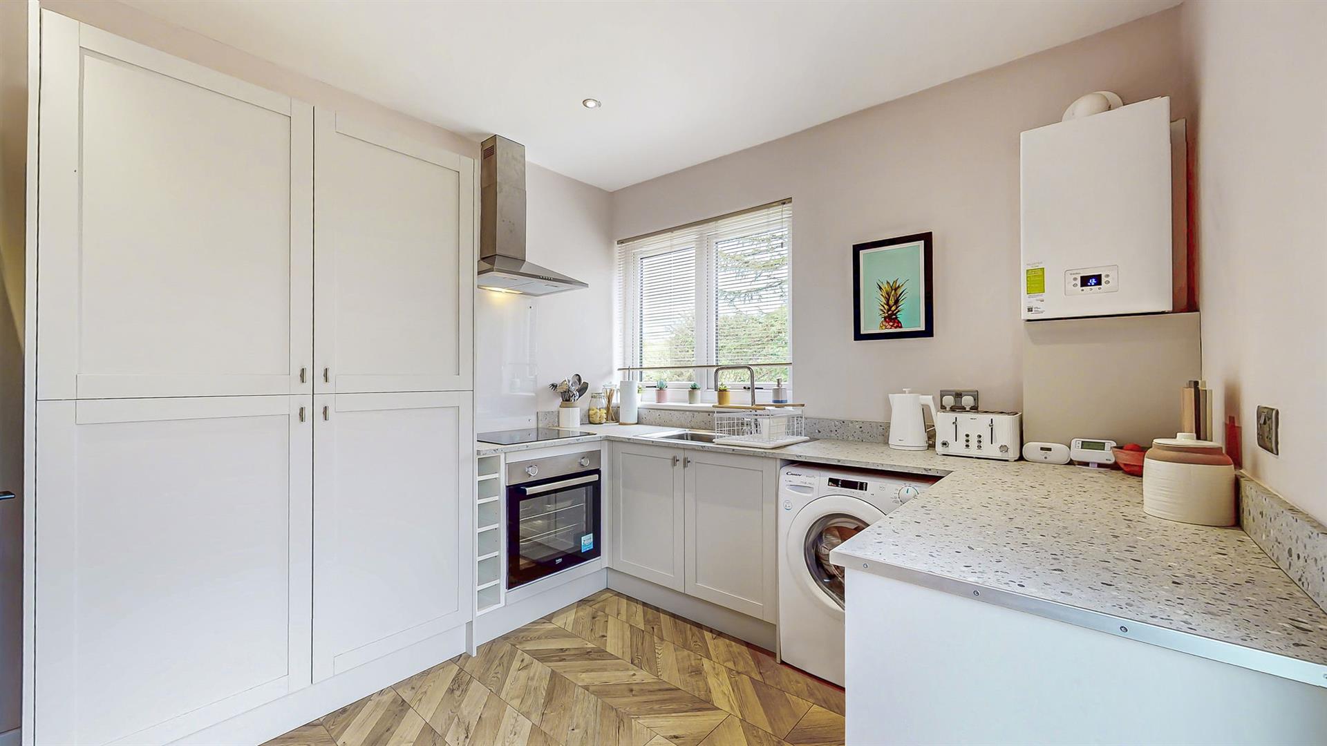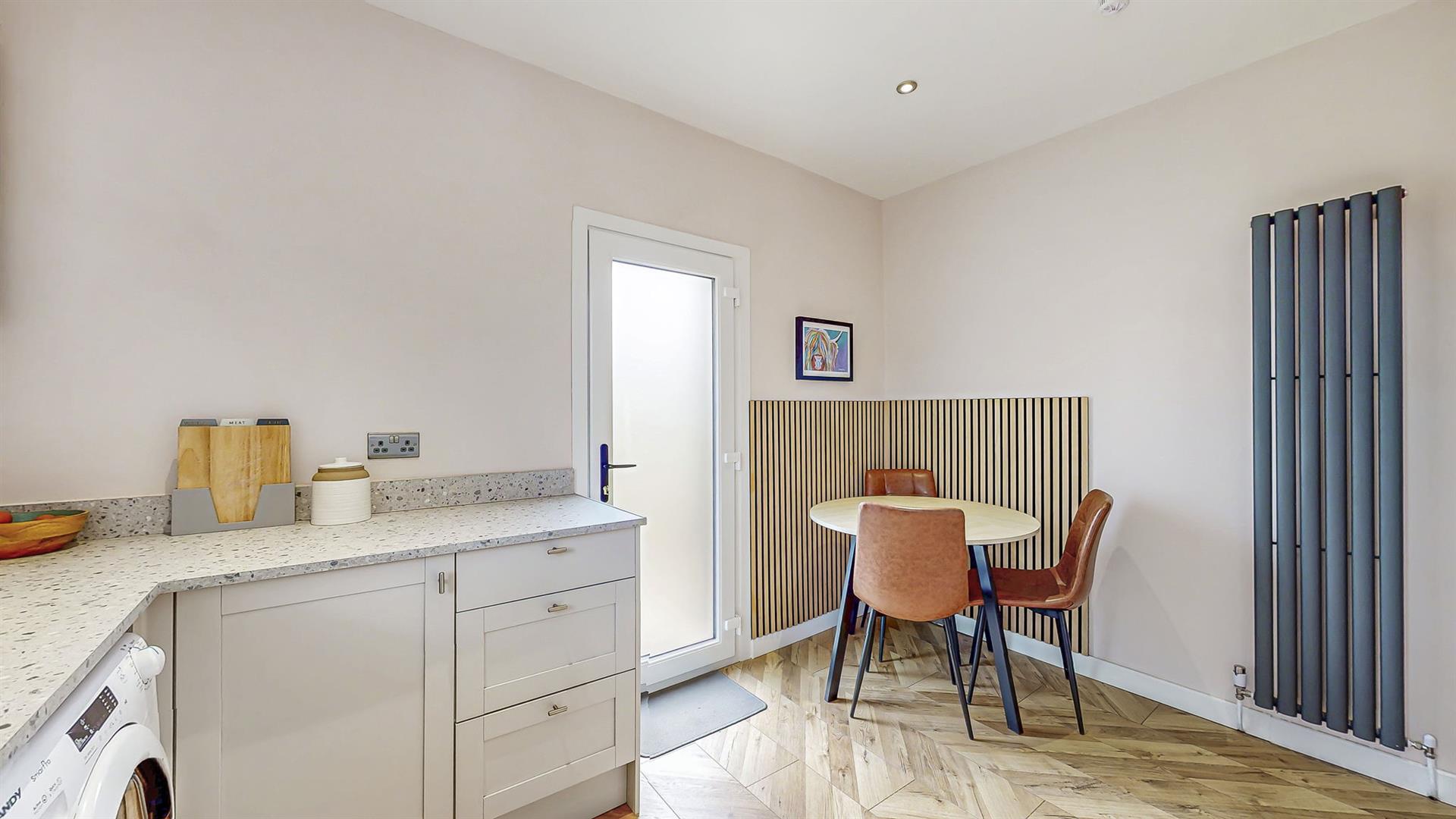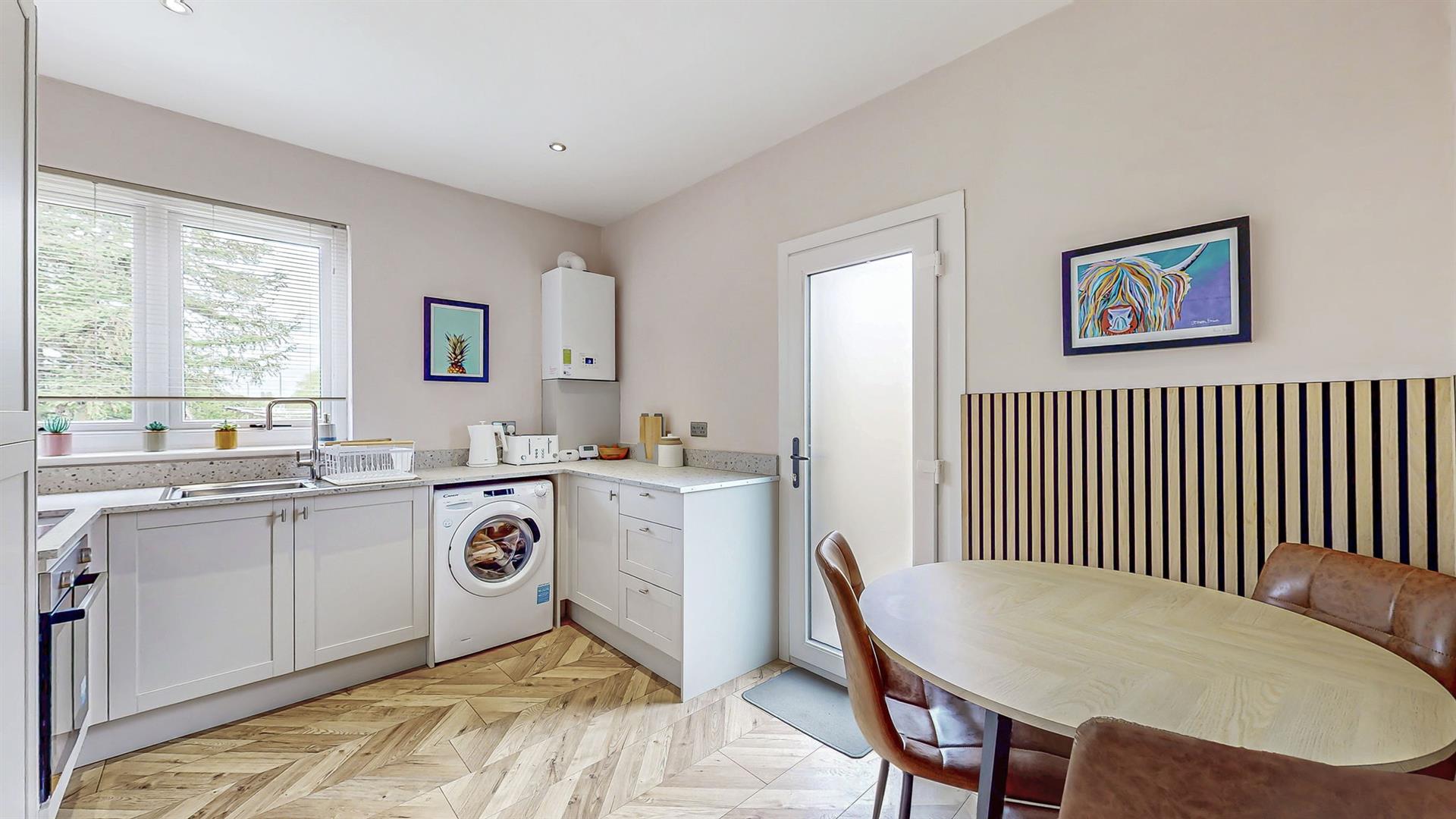 Upon entering, you are welcomed into the neutrally decorated hallway with quality flooring which extends into the lounge and kitchen space. The lounge is impressive in dimensions and boasts dual aspect windows, filling this space with an abundance of natural sunlight. The contemporary kitchen benefits from an array of wall and base units and slimline worktop, creating a sleek and modern space. The kitchen further boasts new appliances, including an integrated electric hob, oven, extractor fan, fridge-freezer and space for a free-standing washing machine. Access to the rear garden and a convenient dining space is also available. Completing the ground floor, is a stunning shower room which comprises of a modern shower cubicle with rainfall shower, vanity unit and W.C. This room has been designed to a high specification with quality fixtures and fittings.
