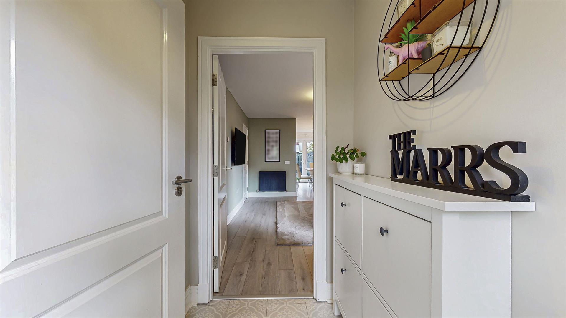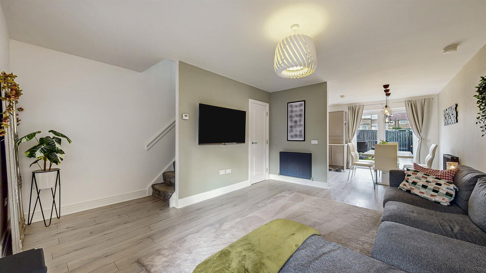 The property benefits from an allocated parking space and additional parking available for visitors. Upon entering through the modern uPVC door, you are welcomed into a reception porch with convenient cloakroom to the side with wash hand basin and W.C. The open-plan lounge, dining and kitchen space is the perfect space for relaxation, dining and entertaining. Large windows to the front and double French doors providing access to the rear garden, create an abundance of natural light. The fitted kitchen really is a must see, designed to a high specification with an array of wall and base mounted units and paired with complementing worktops, this is the perfect space for meal preparation. The kitchen further benefits from a range of quality integrated appliances to include a washing machine, fridge freezer, gas hob, oven and extractor fan.