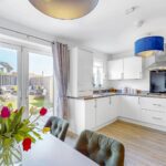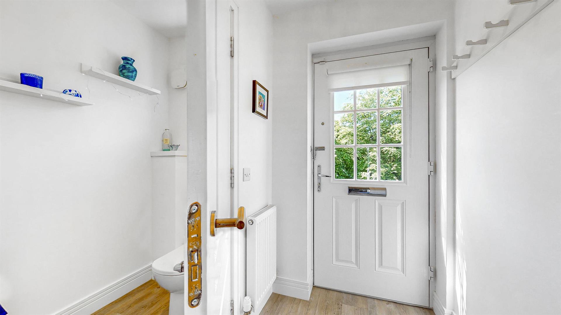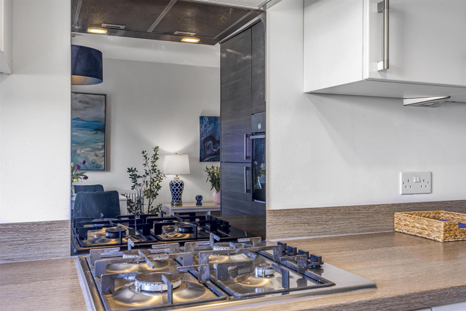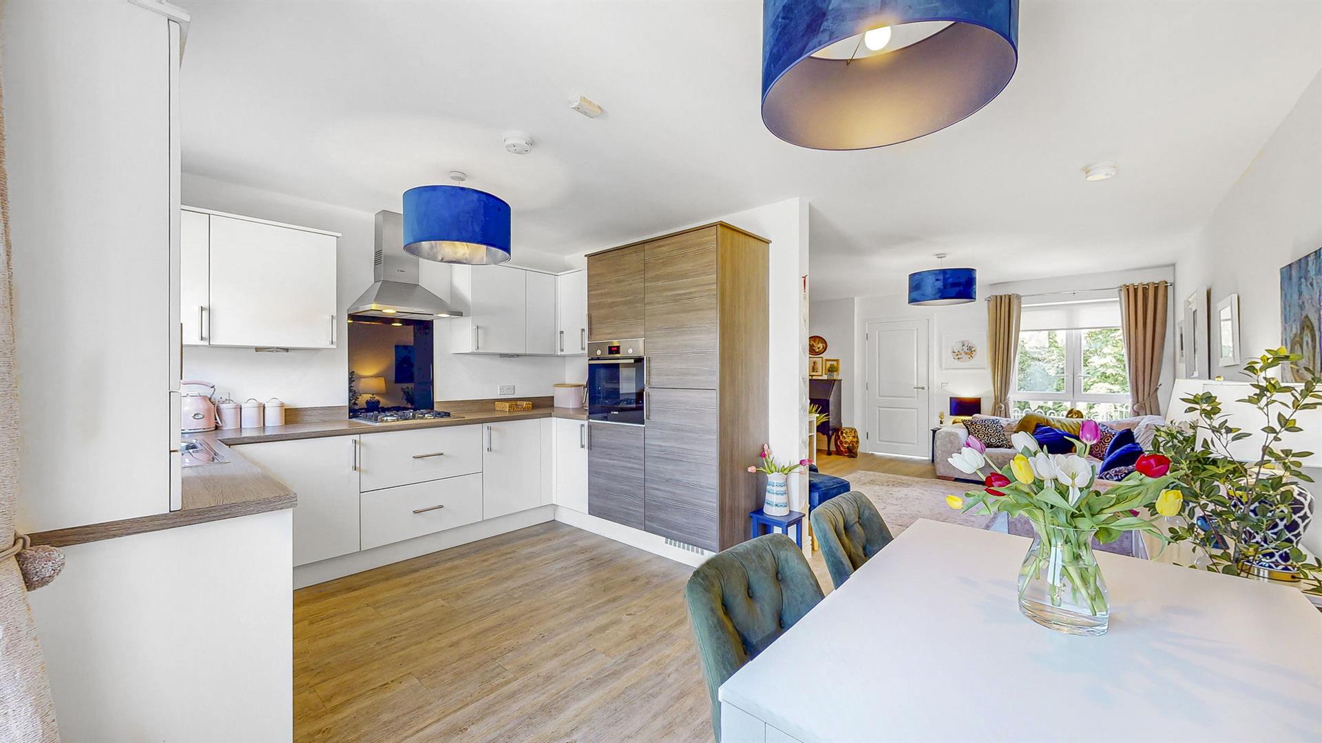 The property benefits from an allocated parking space to the rear with additional parking available for visitors. Upon entering through the modern uPVC door, you are welcomed into a reception porch with storage for outdoor wear. The bright and spacious hallway leads firstly to the open-plan lounge, dining and kitchen space. With generous dimensions, this is the perfect space for relaxation, dining or entertaining. Large windows to the front and double French doors providing access to the rear garden, create an abundance of natural light. The fitted kitchen really is a must see, designed to a high specification with an array of wall and base mounted units and paired with complementing worktops, this is the perfect space for meal preparation. The kitchen further benefits from a range of quality integrated appliances to include a washing machine, fridge freezer, gas hob, oven and extractor fan. Completing this floor, is a convenient cloakroom with wash hand basin and W.C.