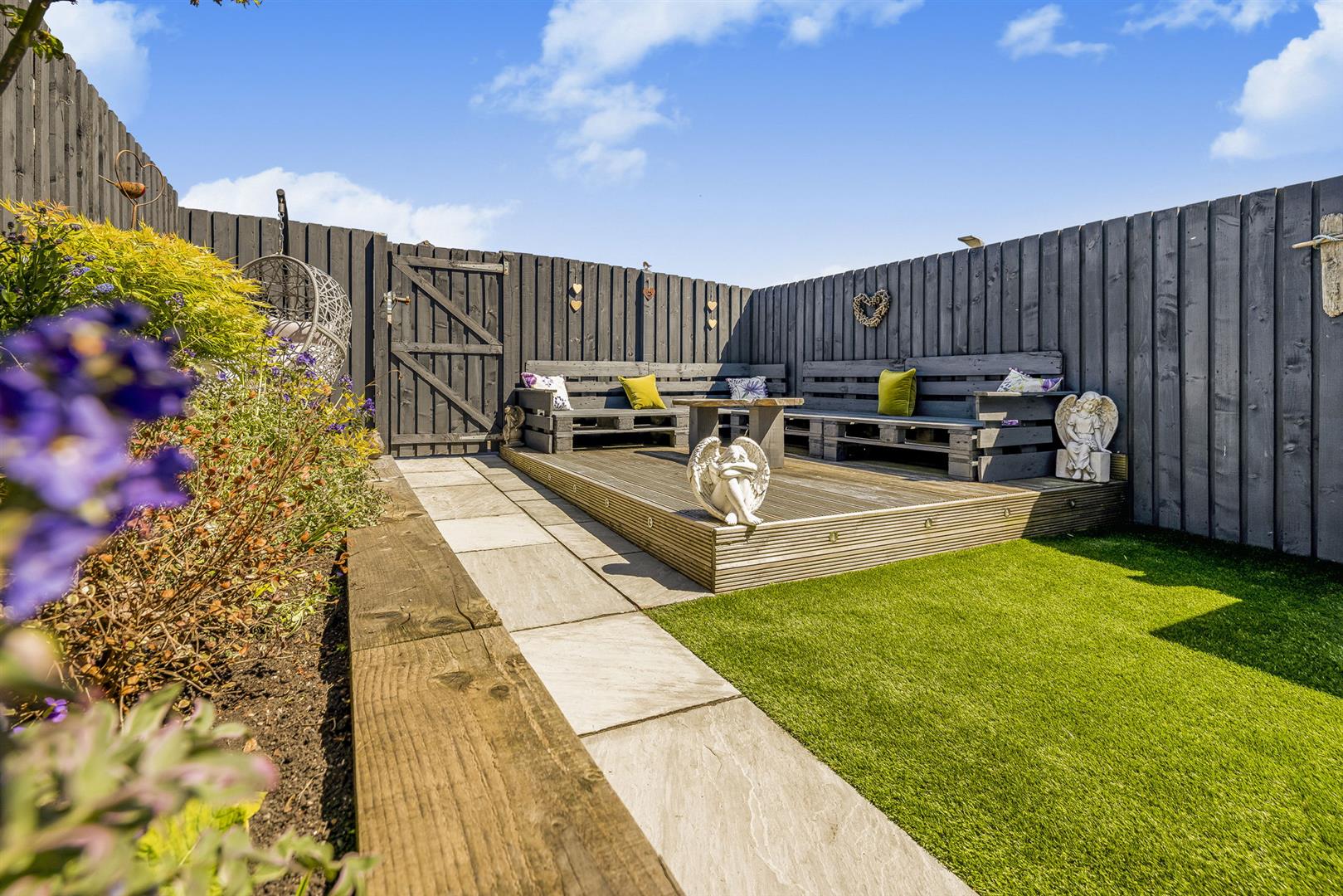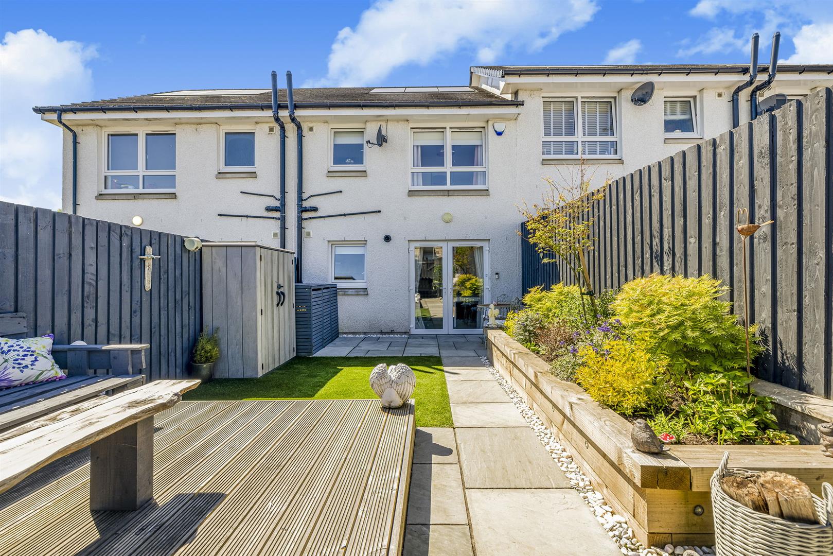 The professionally landscaped rear garden is fully enclosed, creating a safe and secure environment for children and pets alike. This area is easily maintained and boasts patio and decking areas, perfect for socialising and al-fresco dining.