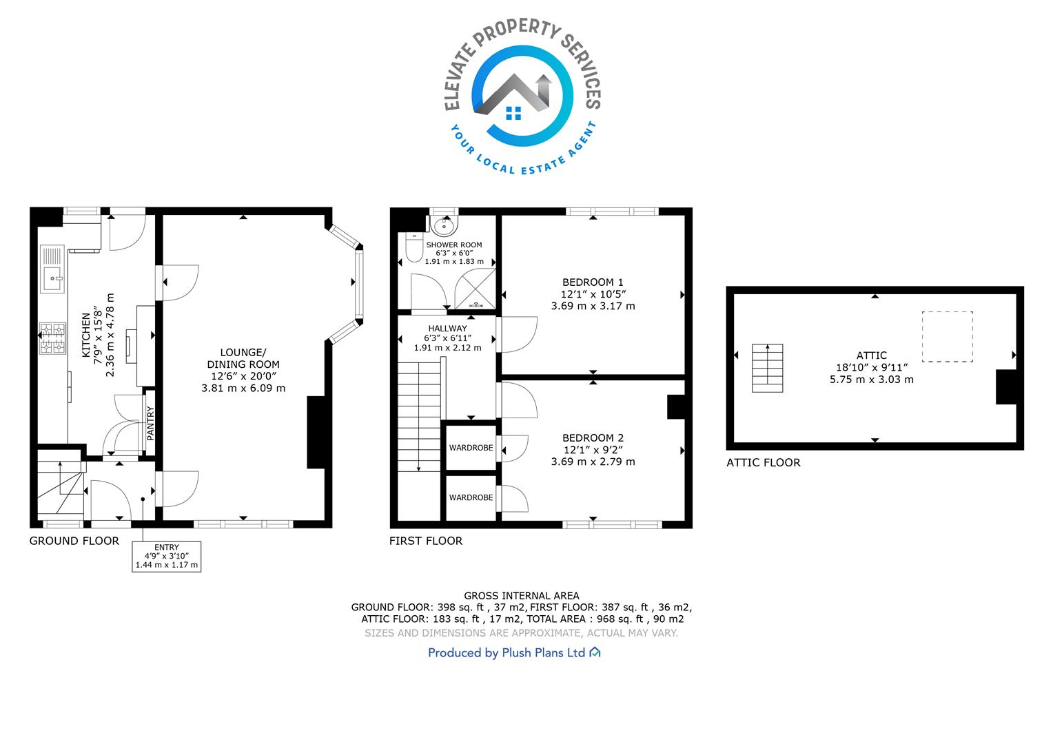 A carpeted staircase leads to the accommodation on the upper floor. Two neutrally decorated double bedrooms are available on this floor, one of which benefits from fitted storage. Additional storage is available within the fully floored attic area. Completing this property, is a fully tiled shower room comprising of a shower cubicle with electric shower, wash hand basin and W.C.