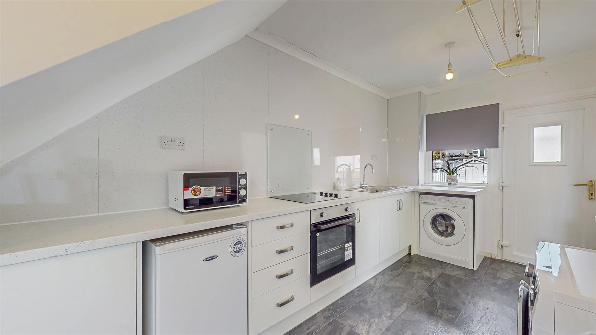 To the front of the property, ample on-street parking and a low maintenance garden is available. Upon entering, you are welcomed into the bright reception hallway which leads to all rooms. The neutrally decorated lounge boasts space for dining and dual aspect windows providing an abundance of natural light. The fitted kitchen hosts an array of matt white units and complementary worktop, creating clean and modern feel. Integrated appliances include an electric hob and oven and ample space is available for a free-standing washing machine and fridge-freezer.