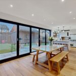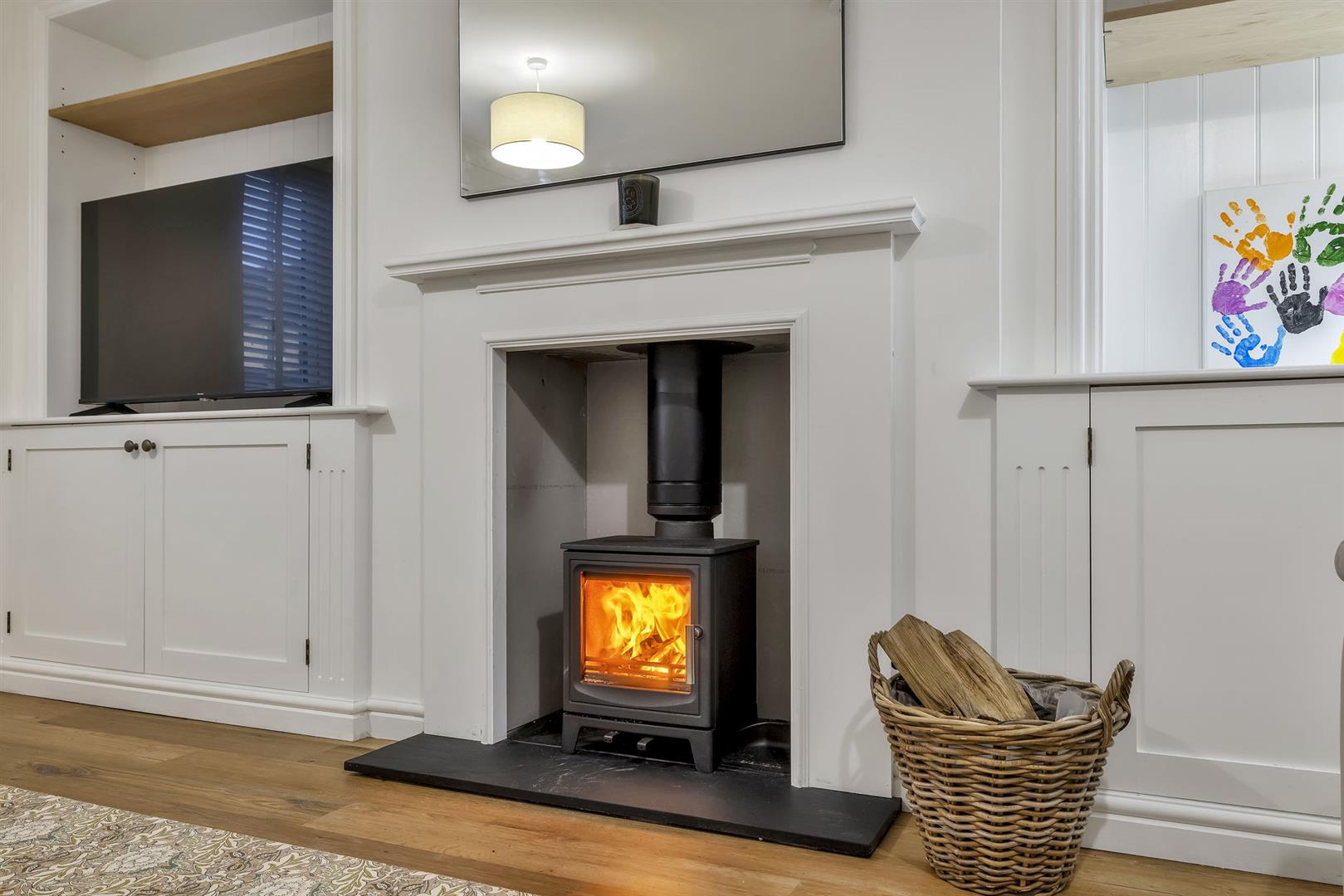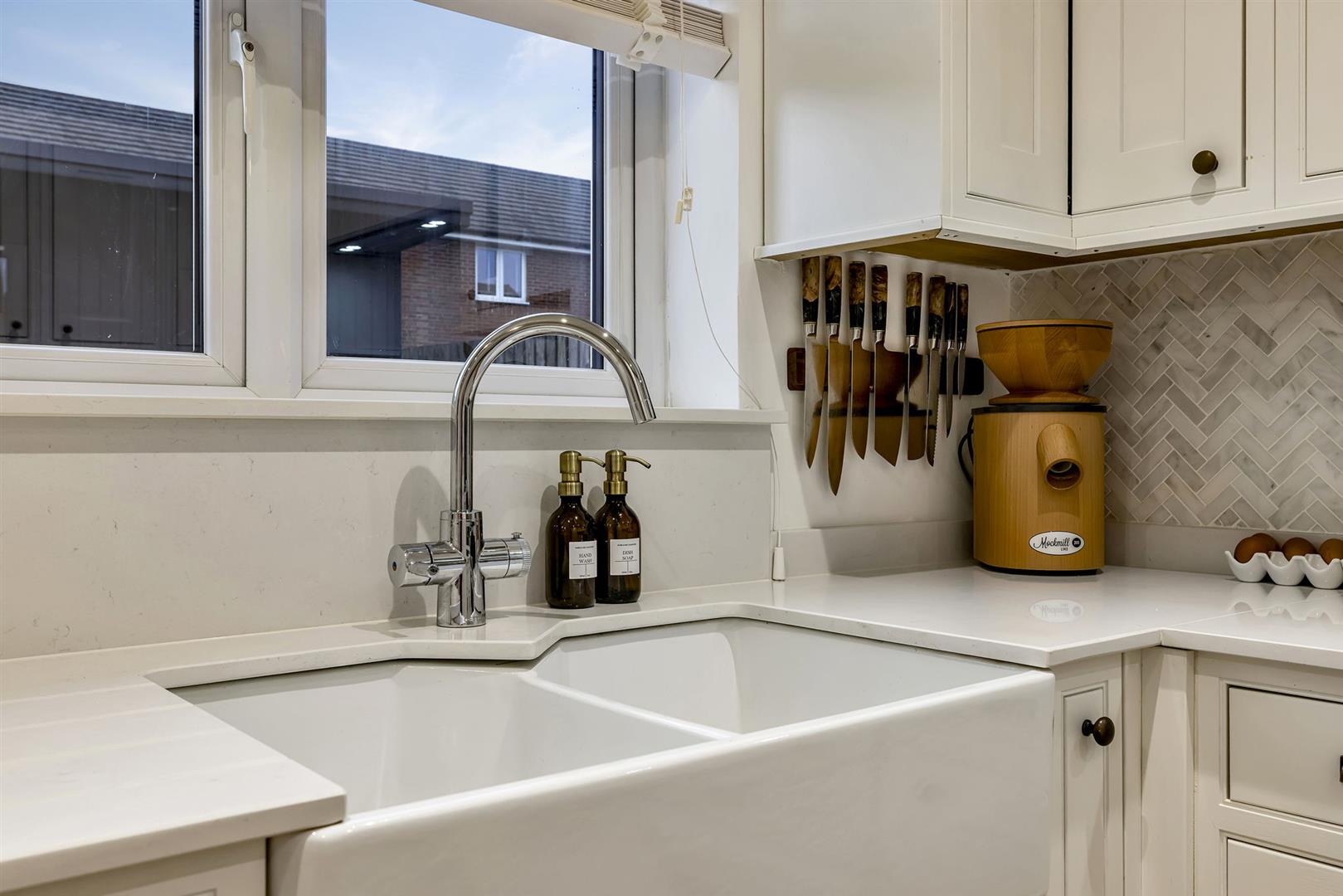 On entrance into the welcoming hallway, you will get an immediate indication of the dimensions and high standard of accommodation on offer. Leading firstly to the neutrally decorated lounge which boasts large windows flooding this room with an abundance of natural light. A splendid log burner creates a warm and inviting space, perfect for relaxed evenings. The open-plan kitchen and dining space must be seen to appreciate the fantastic space on offer. With Bi-Fold doors opening seamlessly to the landscaped rear garden, this room has been cleverly designed with family meals and entertaining in mind. The modern fitted kitchen has been designed to a high specification with a vast array of wall and base mounted units paired with natural worktops, creating a sleek and practical workspace. The kitchen further benefits from a Double Belfast Sink and quality integrated appliances, including a fridge-freezer and dishwasher. A separate utility area is available to the side of the downstairs cloakroom which benefits from space for a freestanding washing machine and dryer.