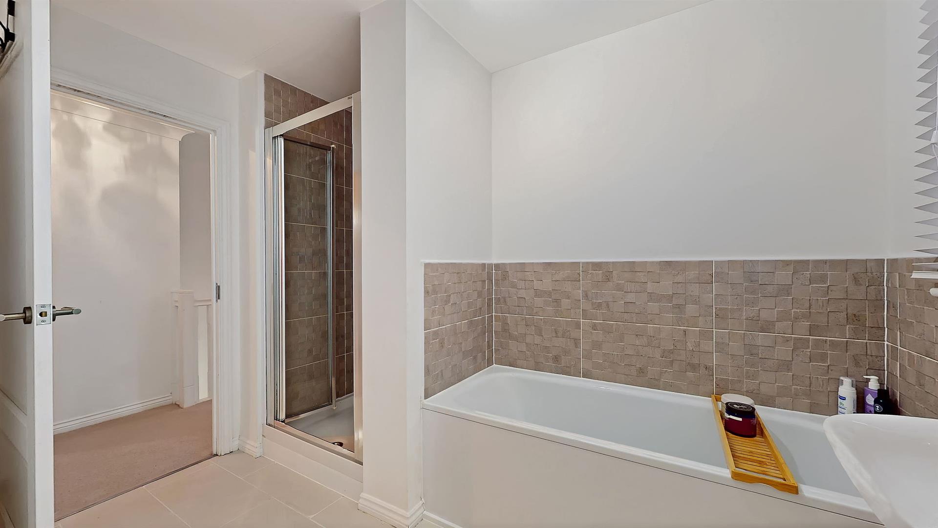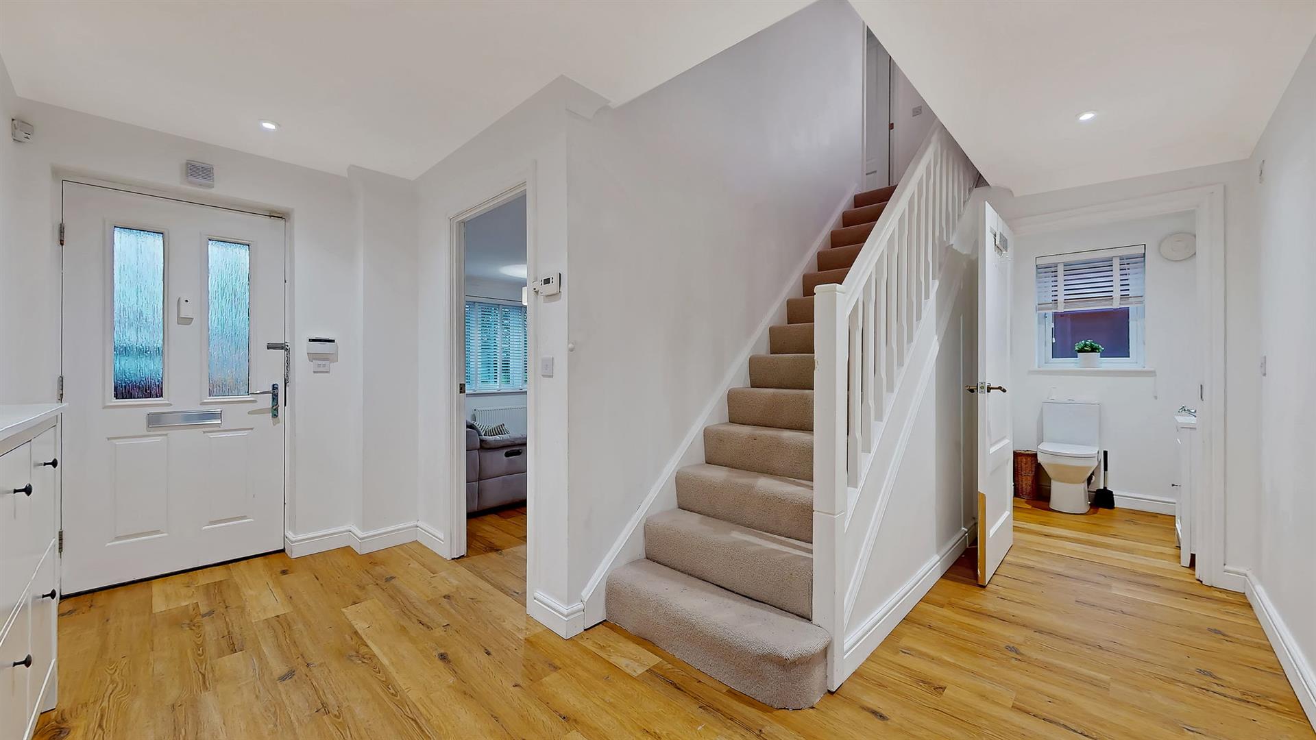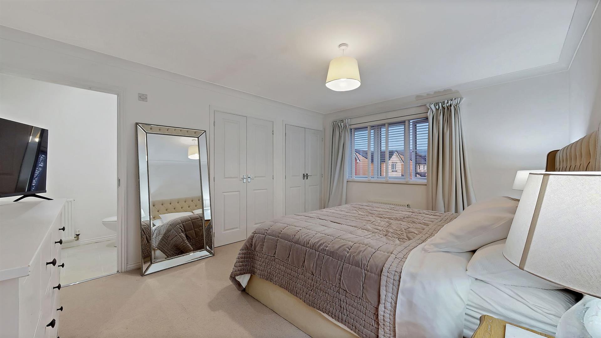 A carpeted stairway leads to the generously proportioned accommodation on the upper floor. The grand primary bedroom features two fitted storage closets and an en-suite shower room which comprises of an enclosed shower cubicle with modern tiling, wash-hand basin and W.C. Three additional bedrooms are located on this level, two of which also benefit from excellent fitted storage. An impressive family bathroom with stylish tiling completes this floor hosting a bath, separate shower, wash-hand basin and W.C, creating a lovely relaxing space.