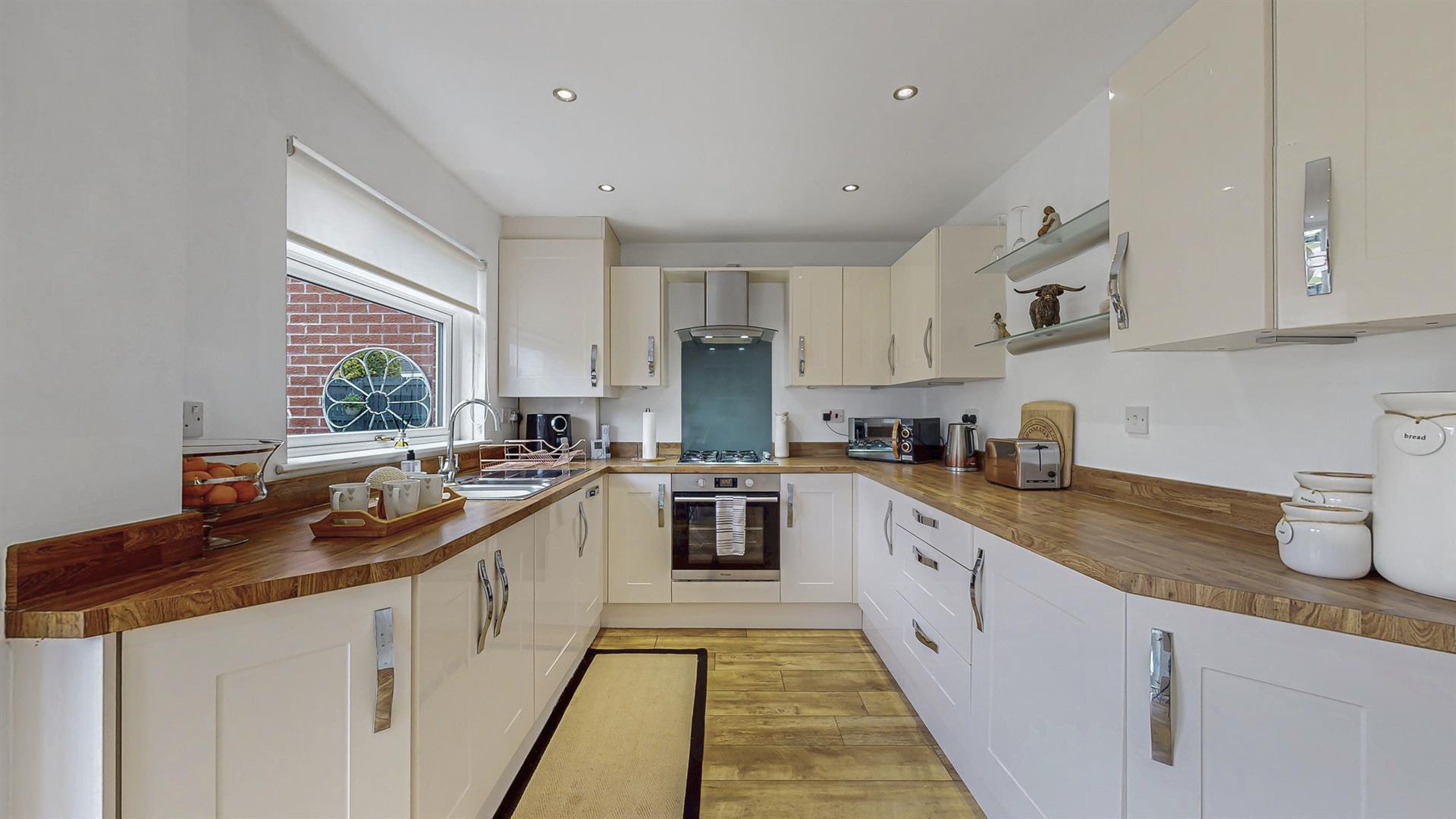 To the front, the property benefits from a driveway and low maintenance lawn garden. Upon entering, you are welcomed into a reception porch with convenient ground floor shower room located to the left-hand side. The lounge is generous in size and boasts large windows filling this space with an abundance of natural light. The modern fitted kitchen is positioned to the rear of the lounge and hosts and an array of wall and floor units, creating an abundance of storage space. The kitchen further benefits from an integrated washing machine, dishwasher, fridge-freezer, gas hob, oven and extractor fan. Space for dining is also available which overlooks the rear garden, creating a lovely sociable space for dining and entertaining.