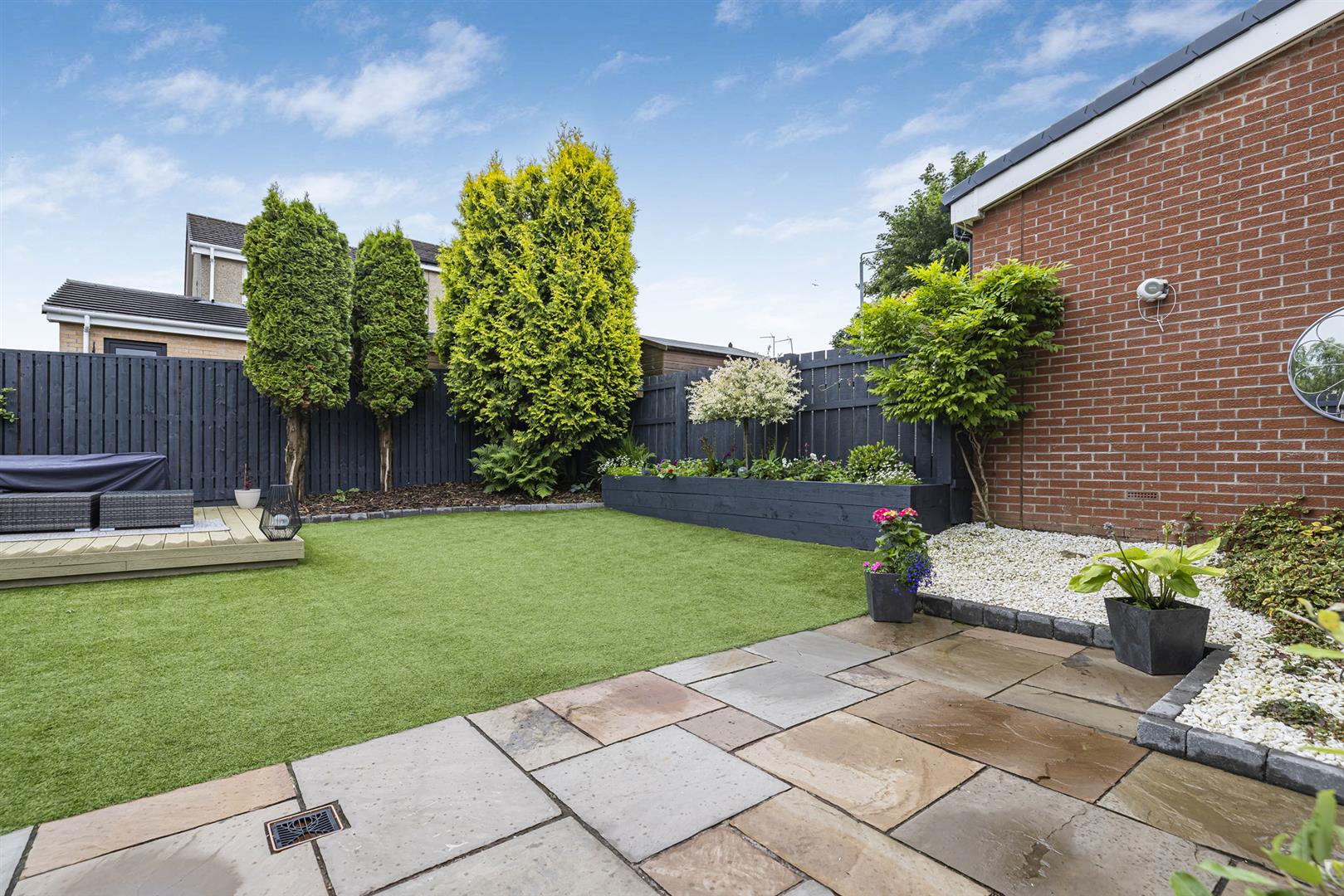 Access to the beautifully landscaped rear garden is via French doors from the kitchen. With areas of patio, lawn and a composite decking space, this is a perfect space for relaxation and dining al-fresco. The garden is also fully enclosed, providing a safe environment for children and pets alike.