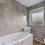 Upon entering, you are welcomed into a bright and welcoming hallway with benefits from a large storage cupboard which is cleverly utilised as a laundry area with space for washing machine and dryer. The open -plan lounge and kitchen boasts dual aspect windows and a glass panelled door which floods this space with an abundance of natural light. The well-appointed kitchen is situated to the side of the lounge offering an open plan feel, making it ideal for modern family living and entertaining. Ample units and workspace is available, along with an integrated gas hob, oven and extractor fan with space allocated for other free-standing kitchen appliances. A contemporary bathroom completes the lower level which comprises of a jacuzzi bath with rainfall shower over, vanity unit and W.C.