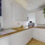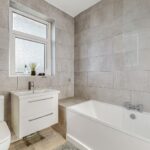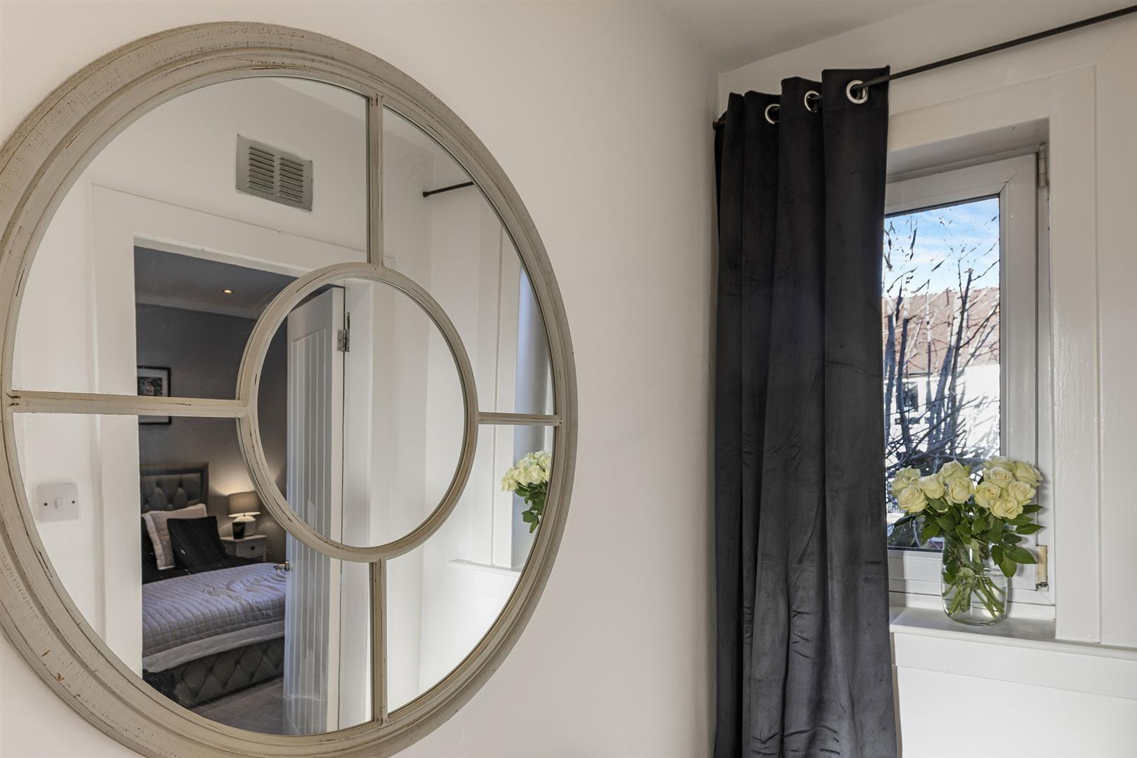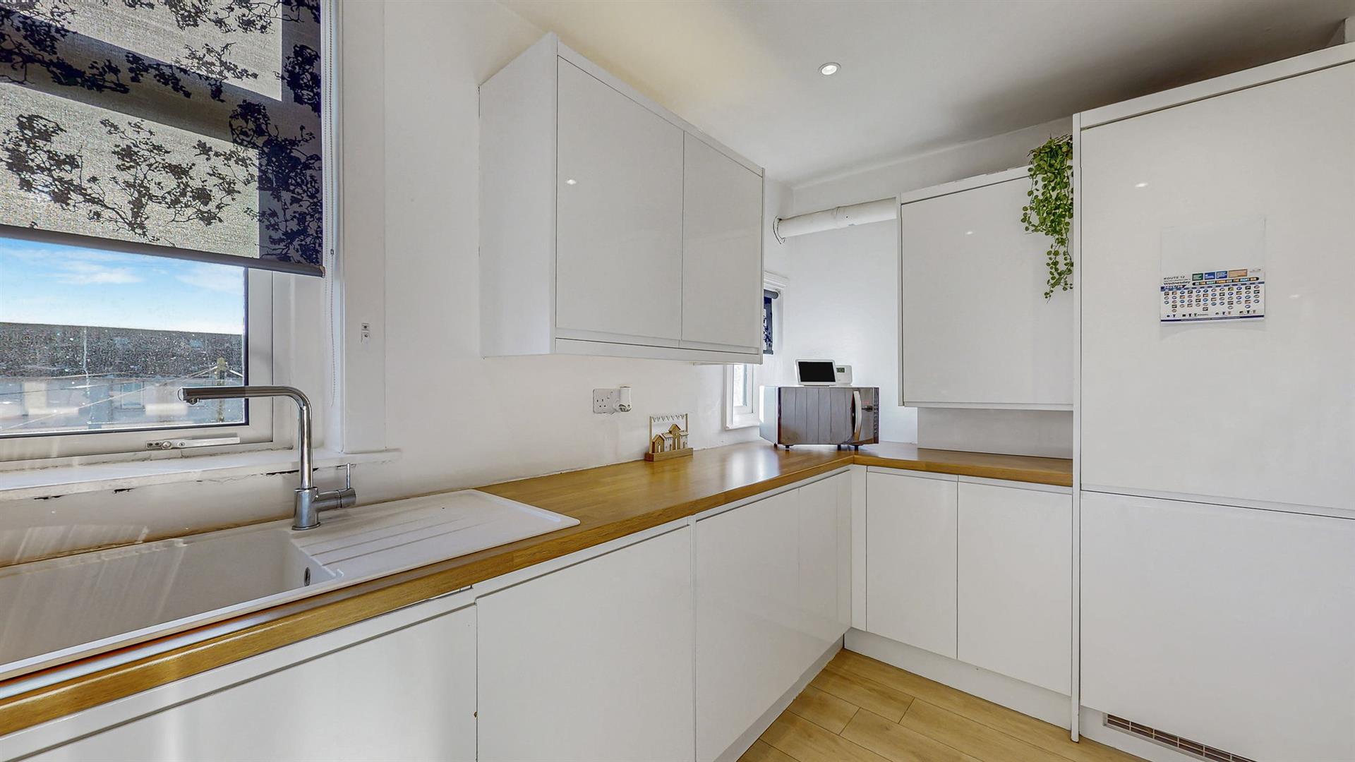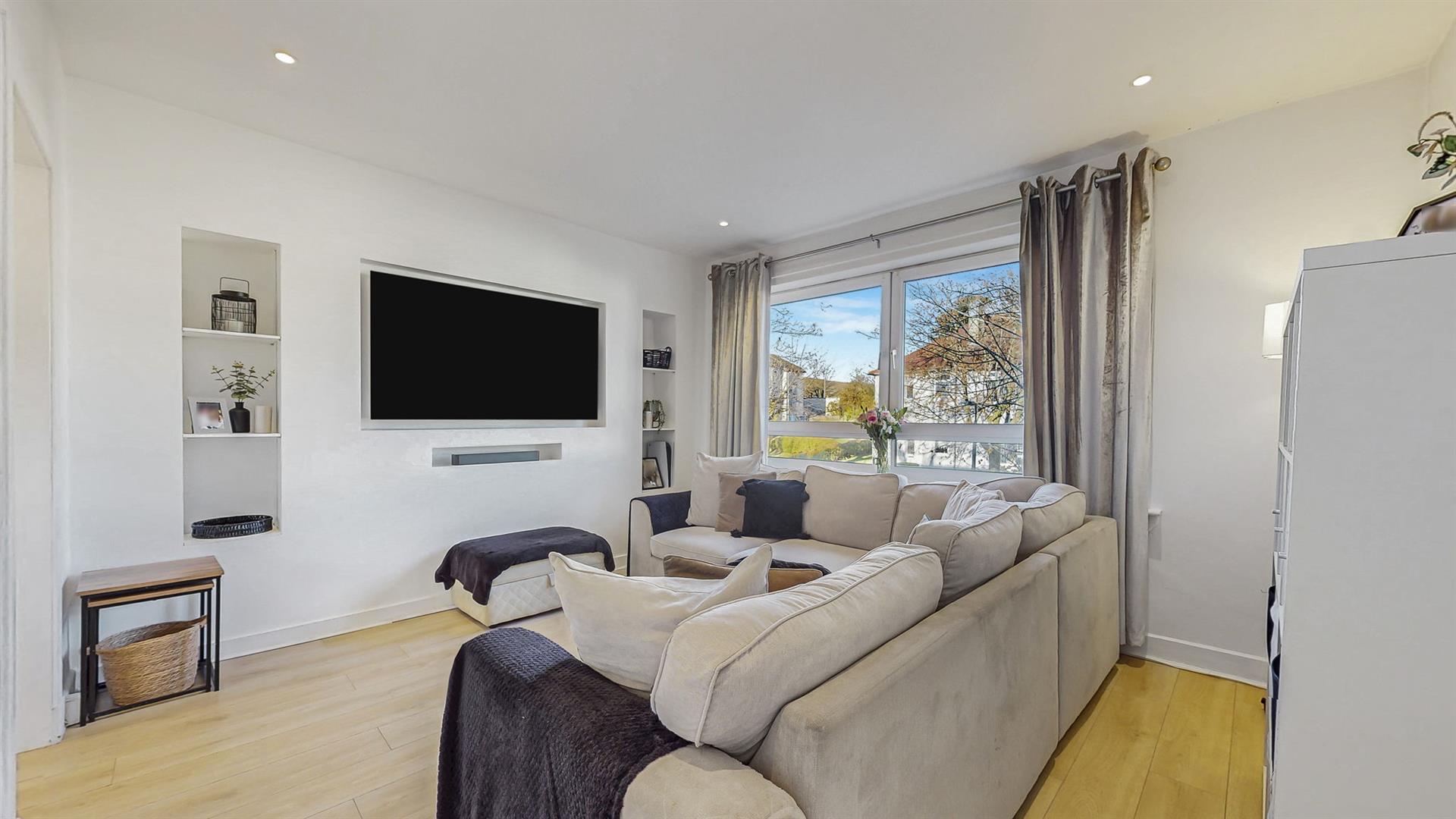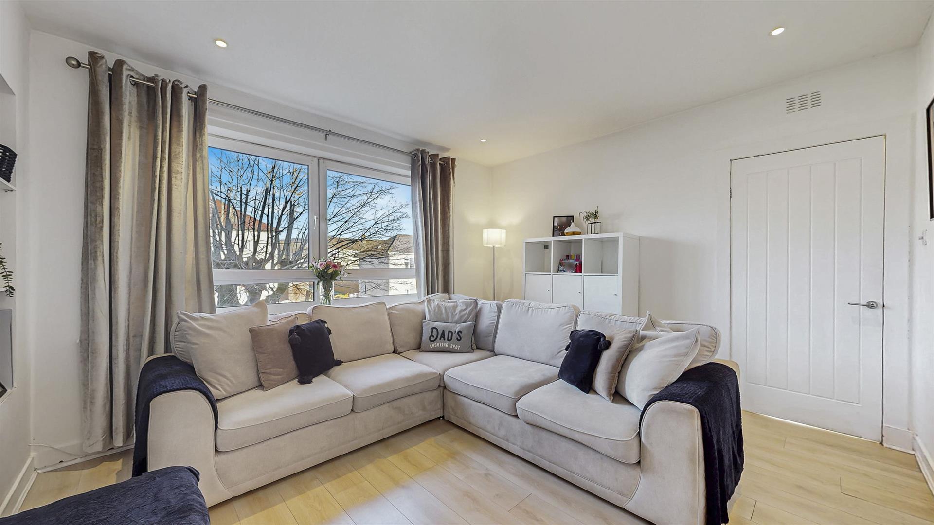 On entrance into the property, a carpeted staircase leads you to the accommodation on the upper level. The neutrally decorated lounge boasts a feature media wall and large windows filling this space with an abundance of natural light. The recently fitted kitchen is sleek in design with all appliances conveniently integrated and boasting excellent storage within an array of wall and base mounted units. Both bedrooms within this property are generous in size and benefit from fitted storage. Completing this property, is a modern family bathroom, comprising of an electric shower over the bathtub, vanity unit and W.C.