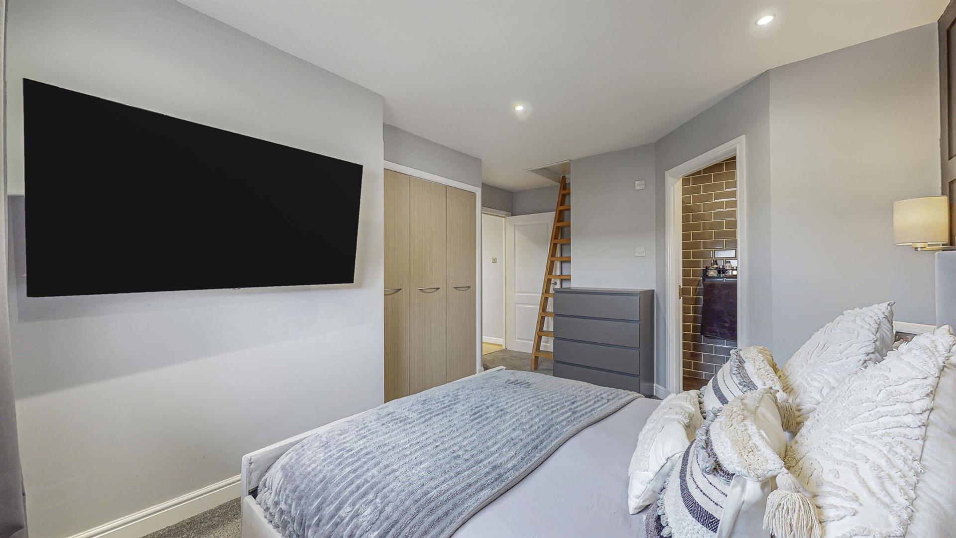 The primary bedroom is generous in size and benefits from fitted wardrobes and an ensuite shower room with rainfall shower, heated mirror, wash hand basin and W.C. The second bedroom can also accommodate a double bed or two single beds and hosts fitted wardrobes. Further storage is available within the floored attic area. Completing this charming property, is a spacious family bathroom which comprises of a bath with rainfall shower over, wash hand basin and W.C.