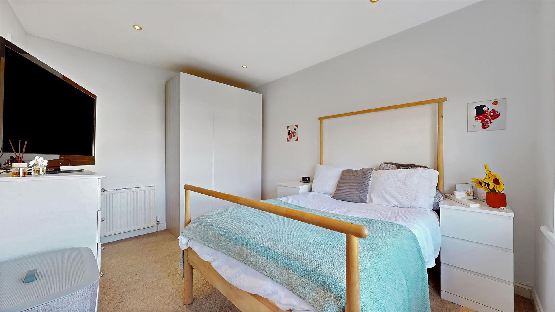 Both bedrooms are well-proportioned doubles, each benefiting from fitted storage, making them ideal for a variety of living arrangements. Completing the accommodation is a well-appointed bathroom, featuring a bathtub, separate shower cubicle with mixer shower, wash-hand basin and W.C.