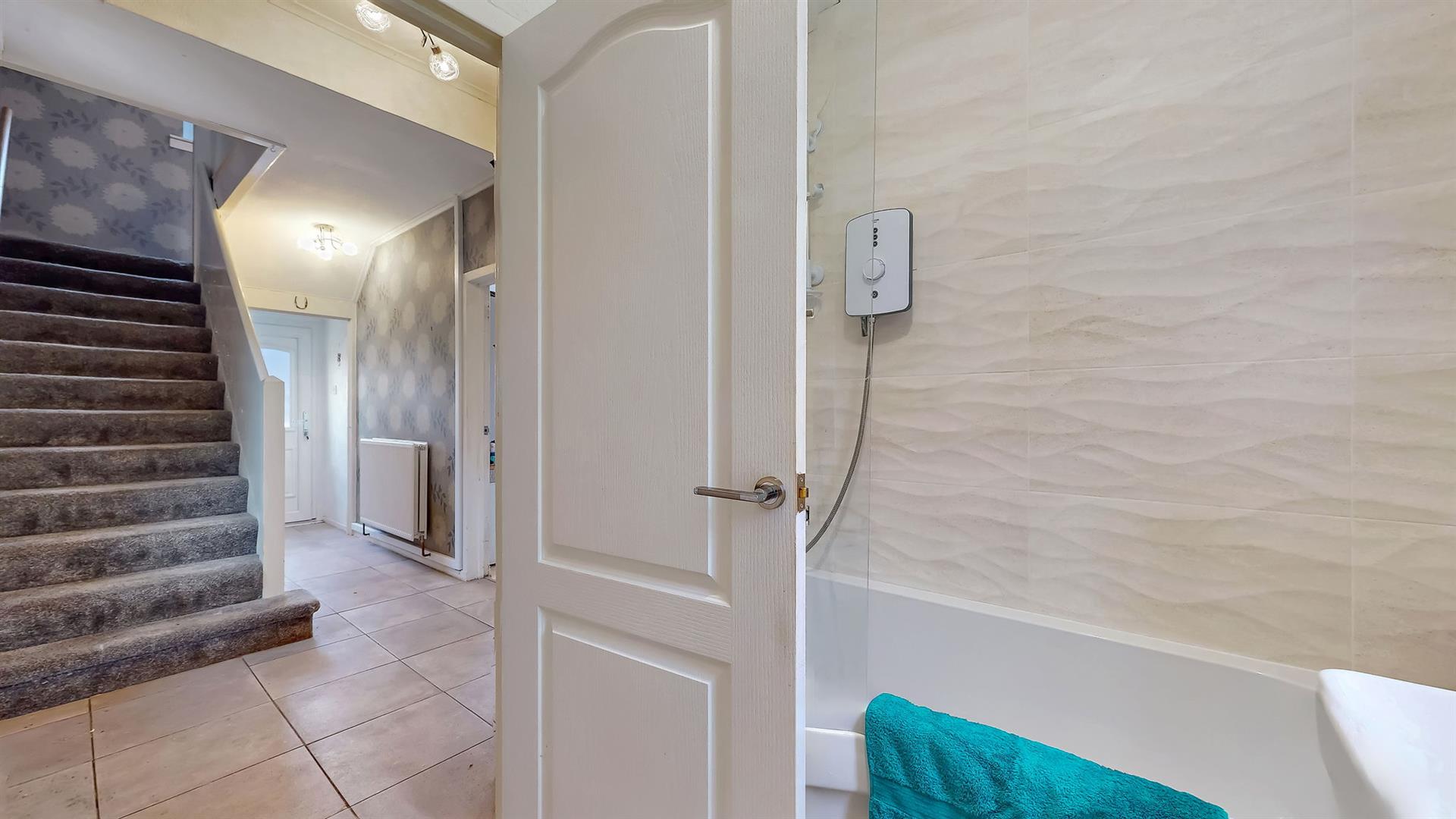 On the upper level, the property is further complimented with three well-proportioned bedrooms, two of which benefit from fitted storage facilities. Further storage is also available within the attic area.