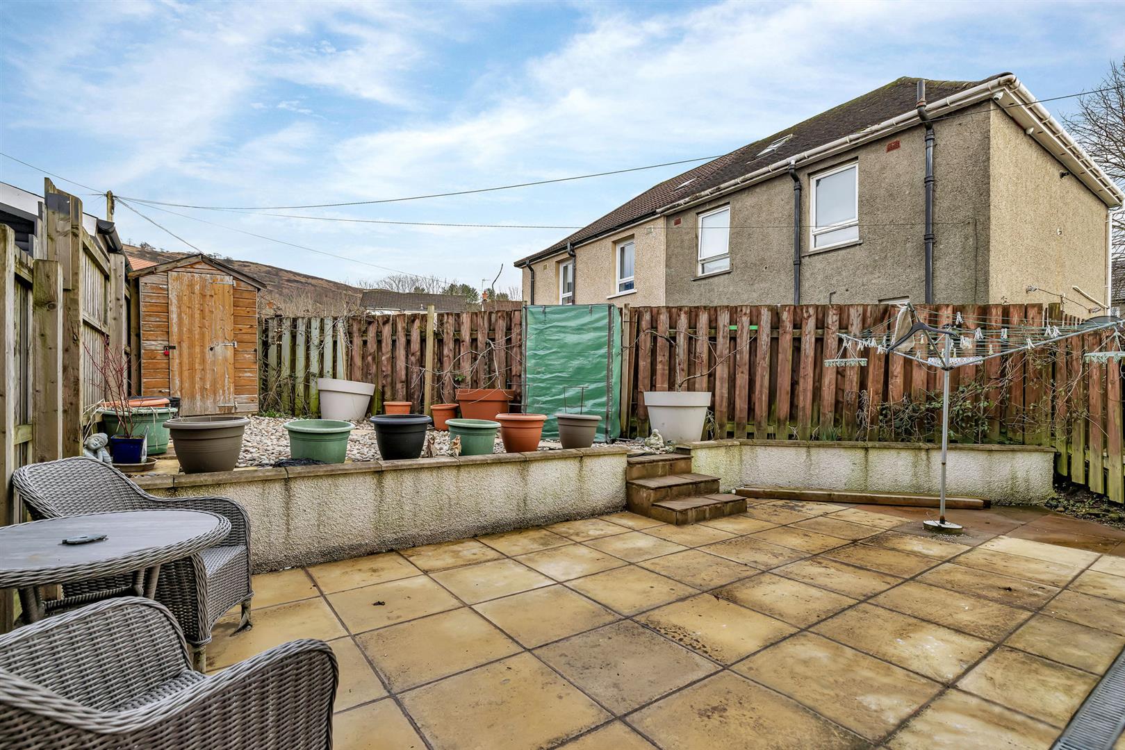 The rear garden space is accessed from the rear of the kitchen. This space has been designed for easy maintenance and is fully enclosed, creating a safe environment for children and pets alike. In addition to this, there is a wooden shed available for outdoor storage.