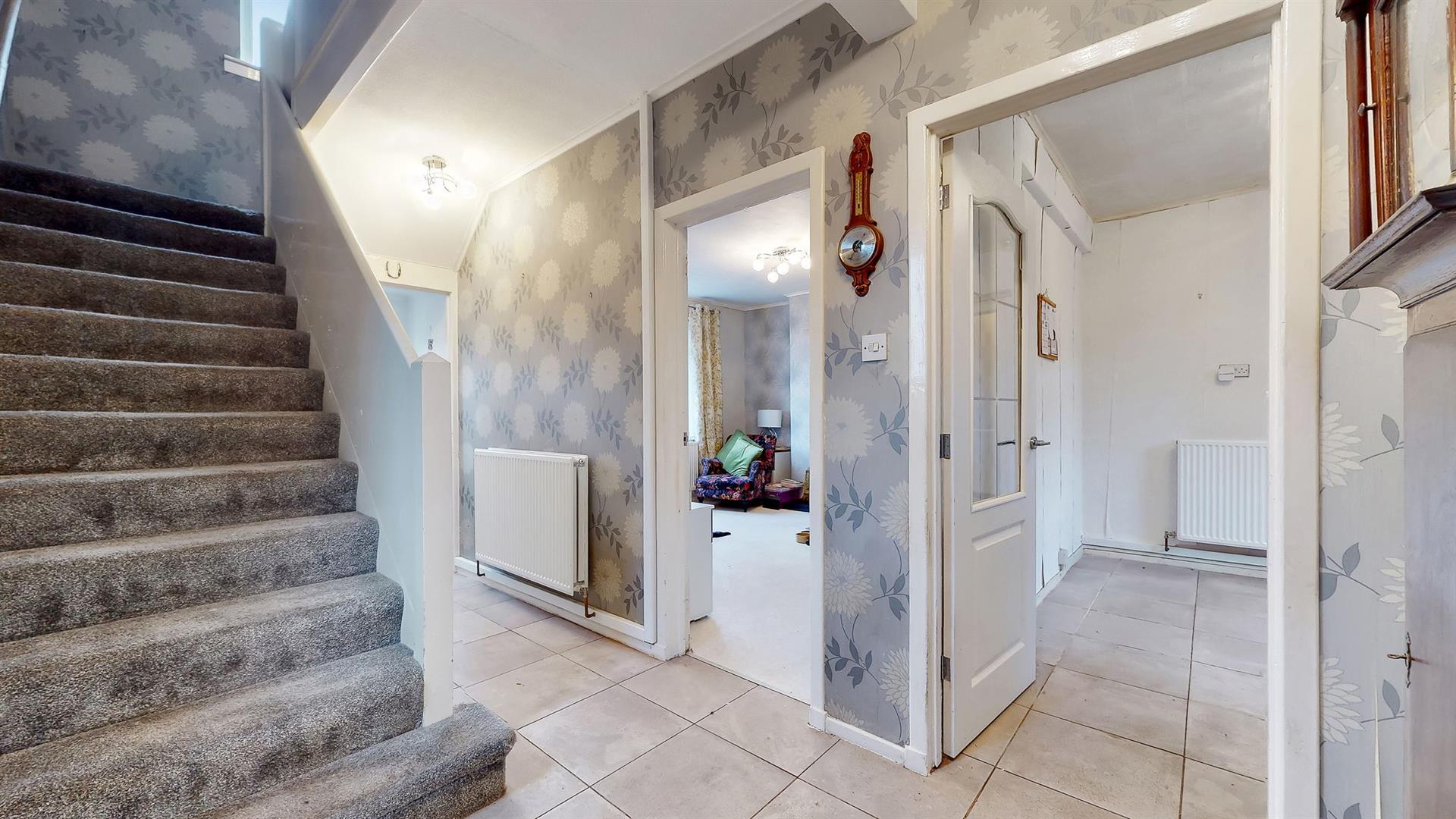 To the front, the property benefits from a multi-car driveway and a low-maintenance paved garden. Upon entering, you are welcomed into the spacious hallway which benefits from good storage facilities and leads to all rooms within the property. The lounge is generous in size and benefits from a large window filling this space with an abundance of natural light and also a fantastic log burner. The kitchen boasts an array of wall and floor units and space for the required free-standing kitchen appliances. A family bathroom completes the ground floor which comprises of a bath with electric shower over, wash-hand basin and W.C.