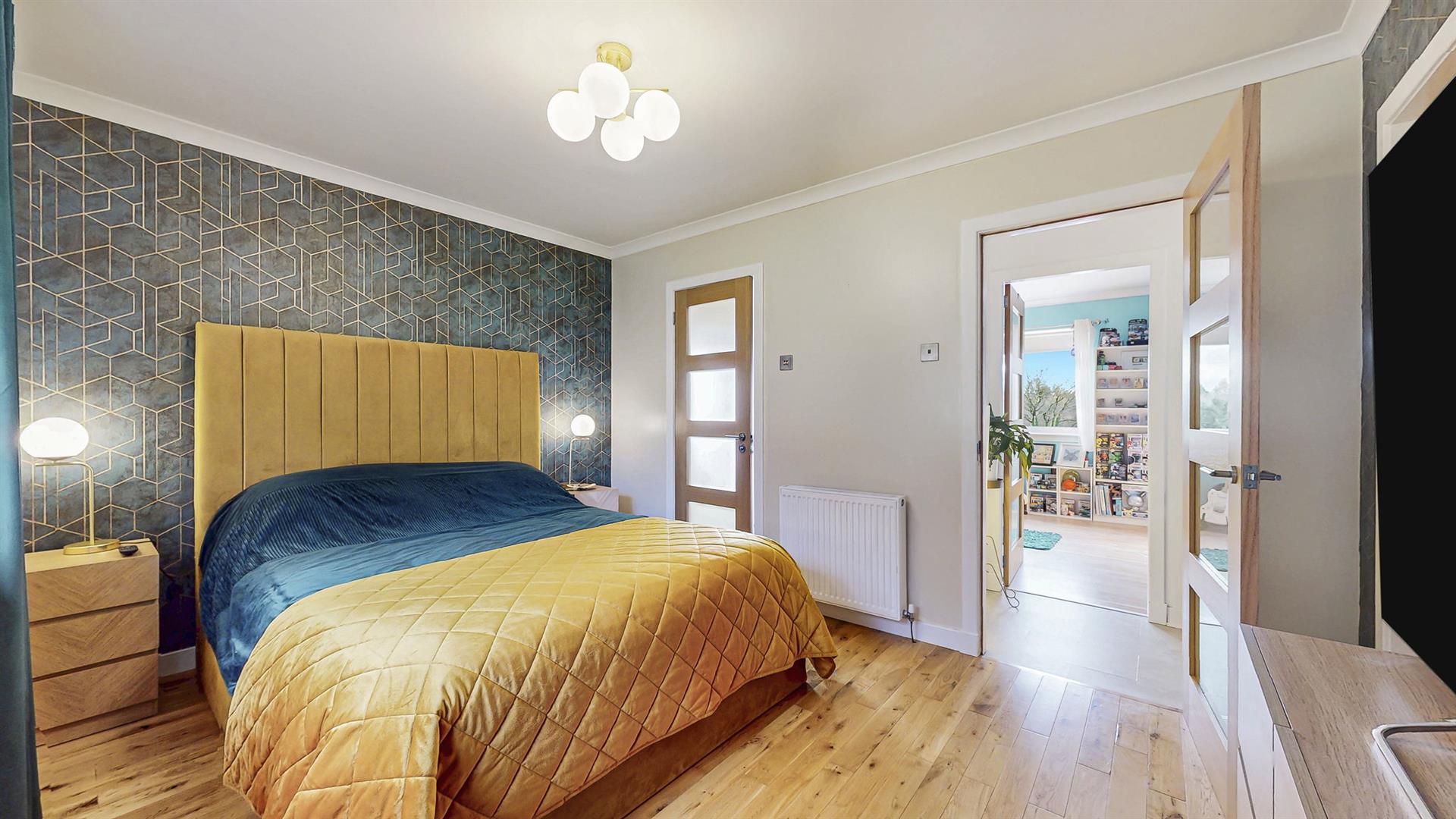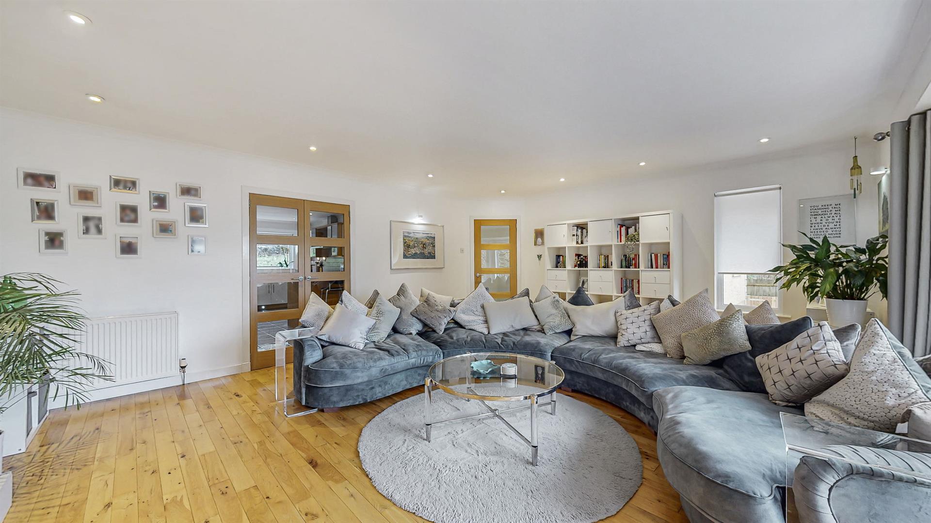 There are four well-proportioned double bedrooms, all generous in size and offering excellent flexibility. The principal bedroom is particularly impressive, featuring a walk-in wardrobe and an en-suite shower room. Three further double bedrooms are available, two of which benefit from built-in storage. One room is currently utilised as an additional sitting room or home office and features French doors opening directly onto the garden, further enhancing the versatility of the accommodation.