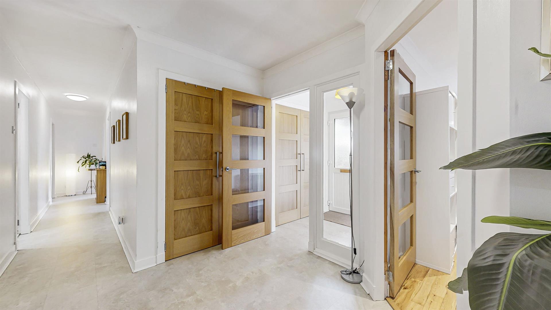Internally, the property opens into a welcoming reception hallway, complete with two built-in storage cupboards. The thoughtfully designed layout provides access to all apartments from a central point, offering a natural flow throughout the home. Finished in neutral tones with quality flooring, the property is presented in true walk-in condition.