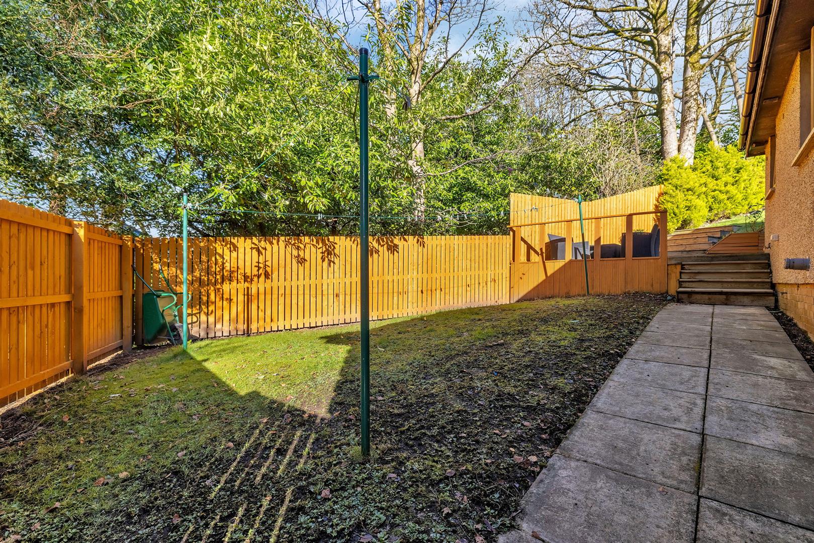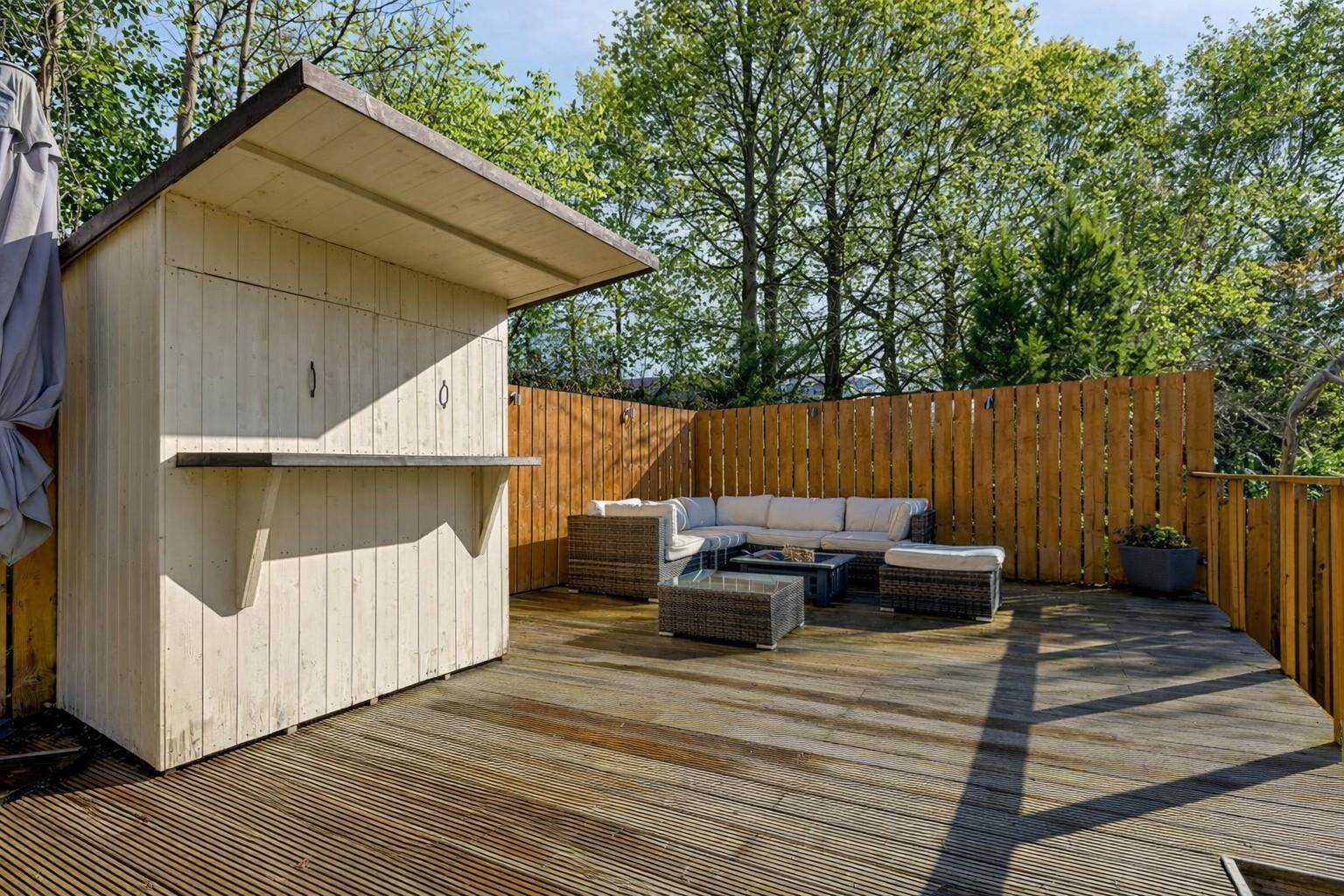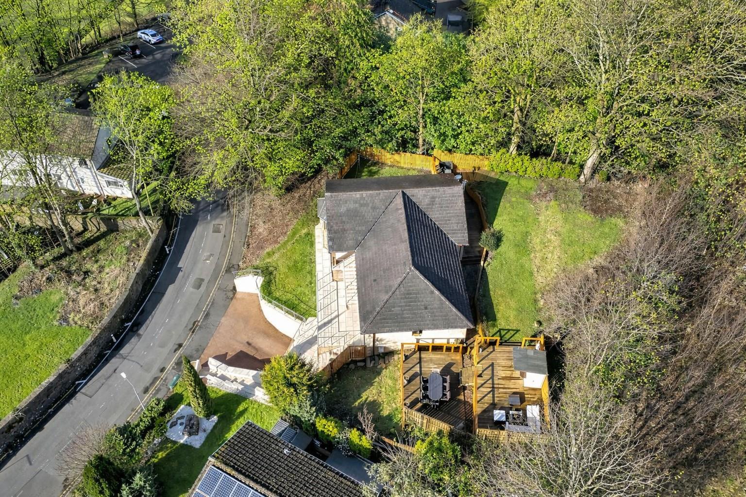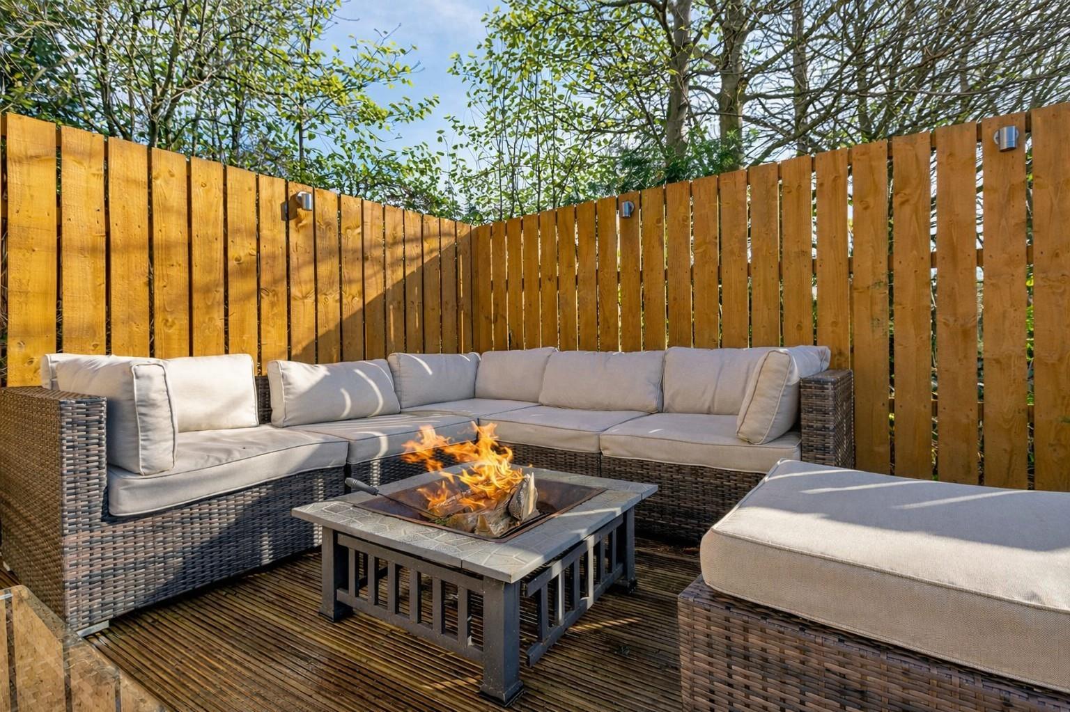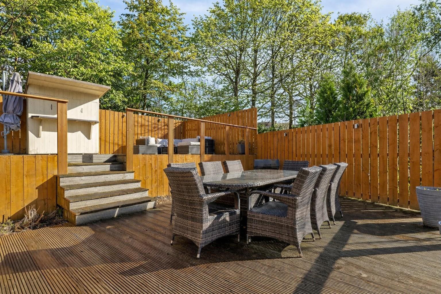 Externally, the garden grounds are a real highlight of the property. Surrounding the home, they offer a combination of lawn, patio and decking areas, providing ideal spaces for outdoor dining, entertaining and enjoying the warmer months. The elevated setting enhances both privacy and outlook, while a dedicated fire pit area creates a perfect spot for relaxed evenings. A discreet drying area is neatly positioned to the side, allowing the main garden to remain both functional and enjoyable.