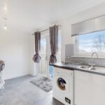 The modern fitted kitchen is positioned to the rear of the lounge and boasts and an array of wall and floor units and complementary worktops, creating an abundance of storage space. The kitchen further benefits from an integrated gas hob, oven and extractor fan with space also available for a free-standing washing machine and fridge-freezer. Space for dining is available which overlooks the rear garden, creating a lovely sociable space for dining and entertaining.