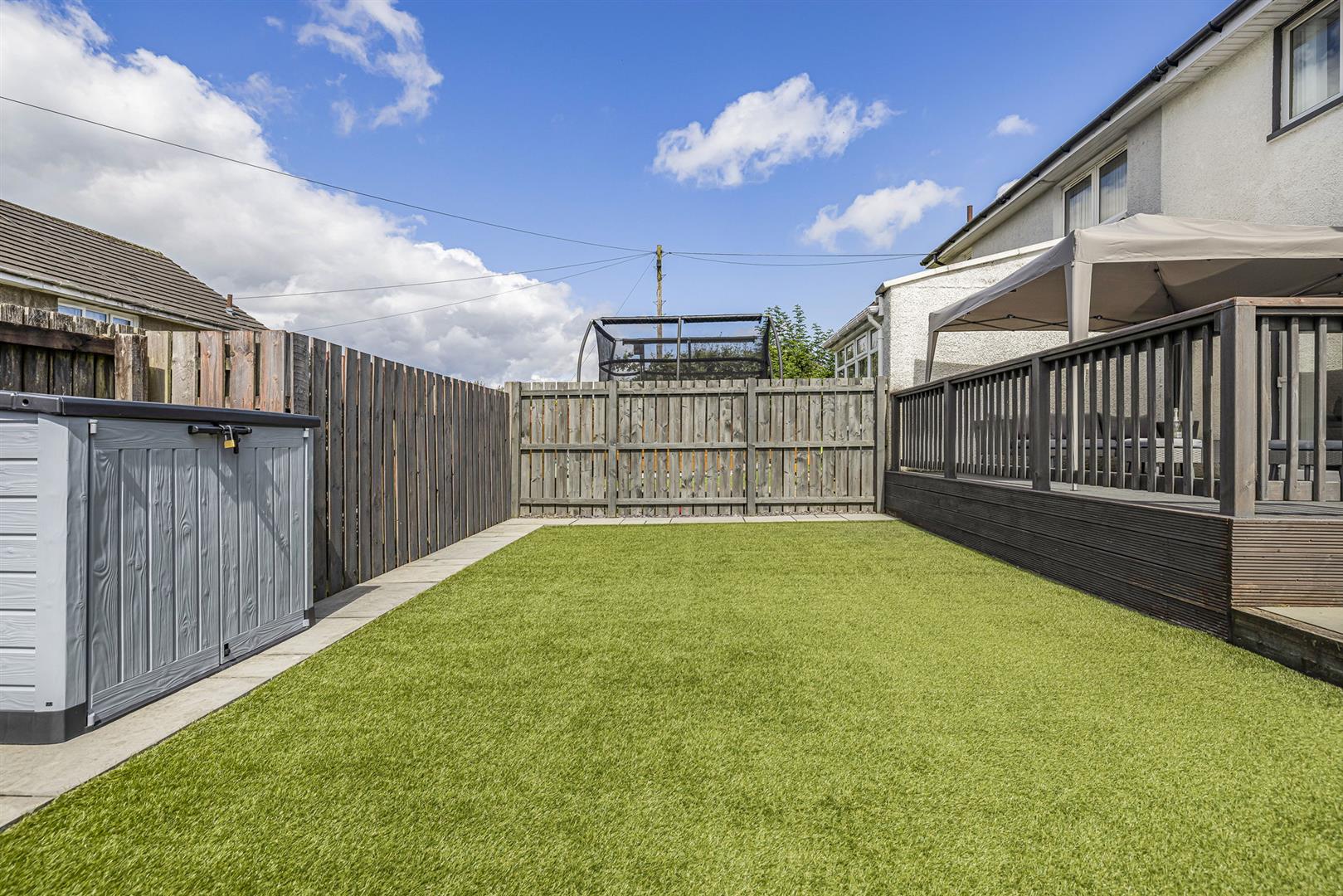 The rear garden is fully enclosed and benefits from areas of patio, decking and artificial lawn, creating a safe and easily maintained environment for children and pets alike. With the added advantage of being South West facing, this is the perfect spot to relax and enjoy some nice weather.