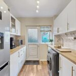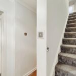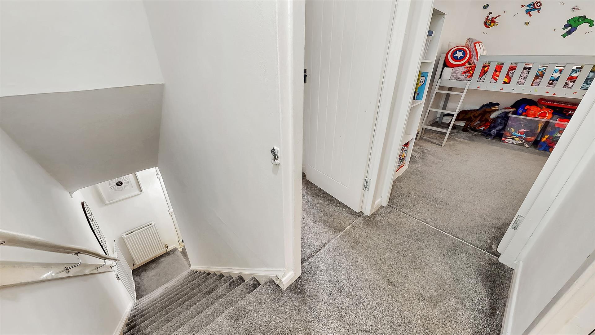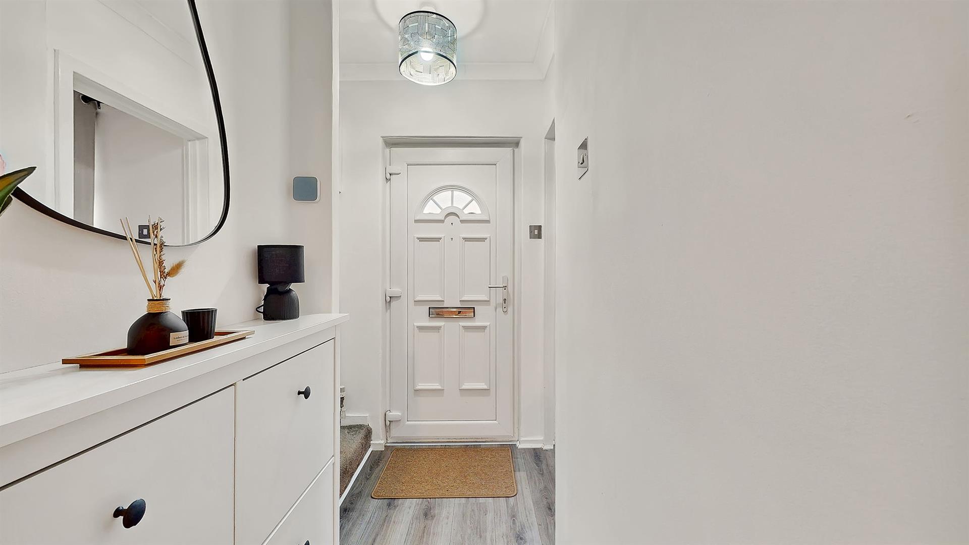 The modern fitted kitchen has been designed with quality fixtures and fittings and ample room for freestanding appliances, providing a perfect space to enjoy meal preparation. A carpeted staircase leads to the accommodation on the upper floor. Two well-proportioned double bedrooms are available, one of which benefits from three separate areas of fitted storage. Completing this property, is a modern family bathroom with low maintenance wet-wall panelling and comprising of a bathtub with rainfall shower over, vanity unit and W.C.