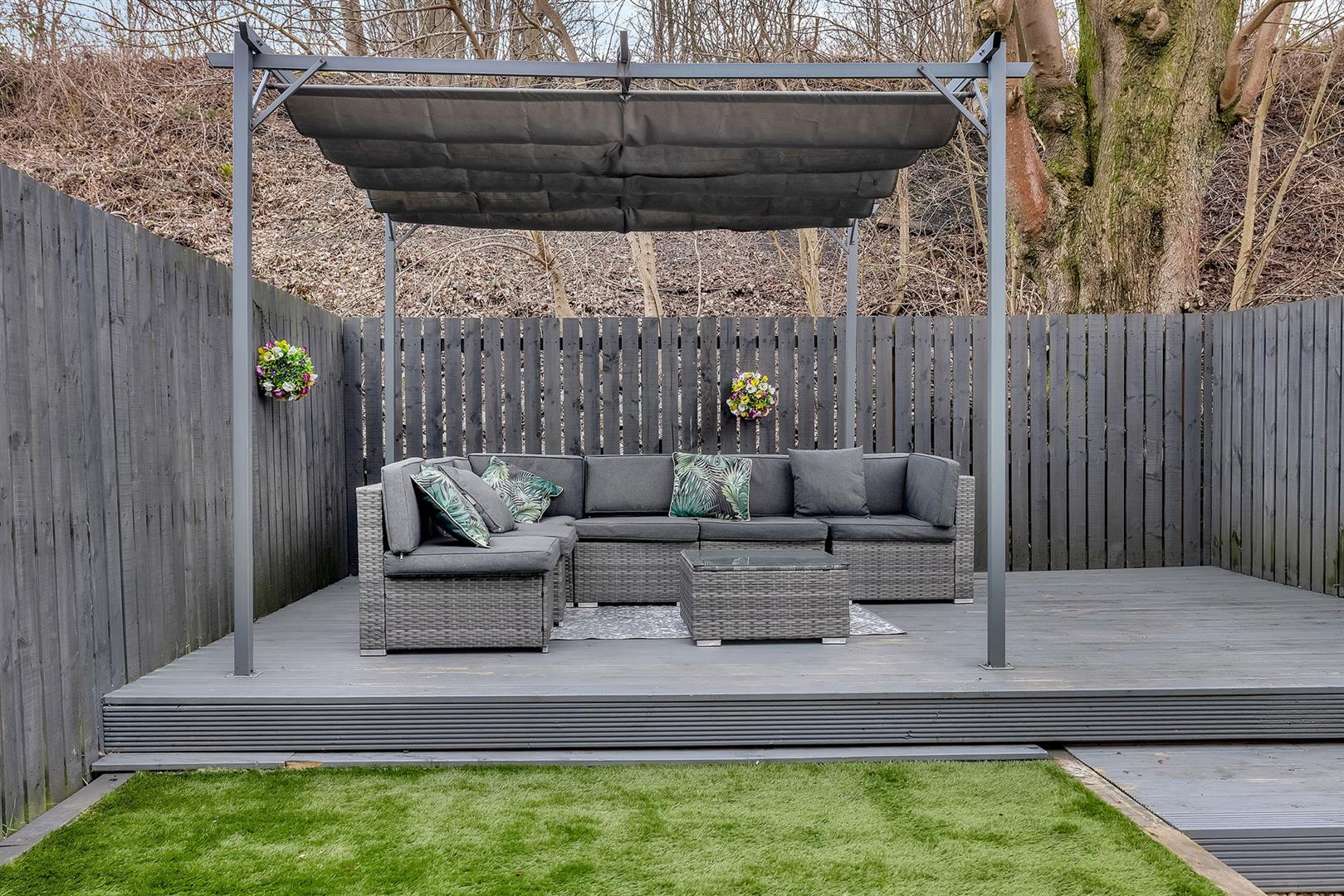 The suntrap rear garden is accessed via the kitchen and is fully enclosed, creating a safe and secure environment for children and pets alike. With patio, decking and lawn areas, this is the perfect space to relax and enjoy some nice weather.