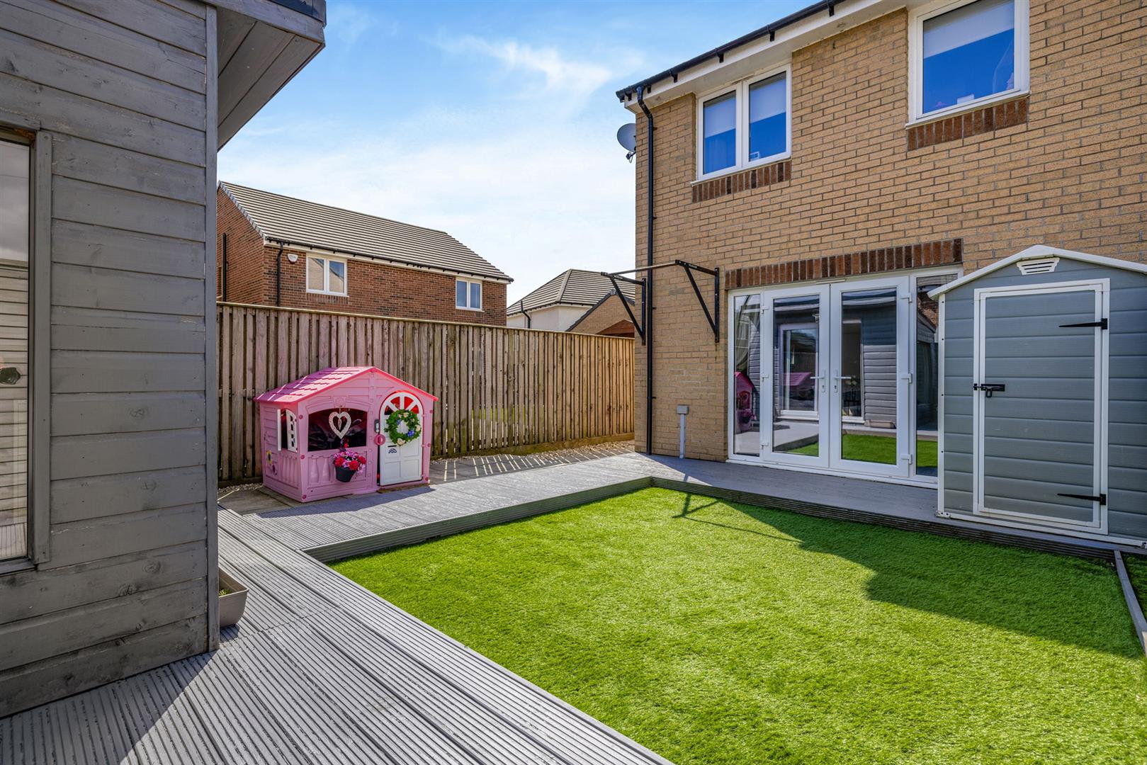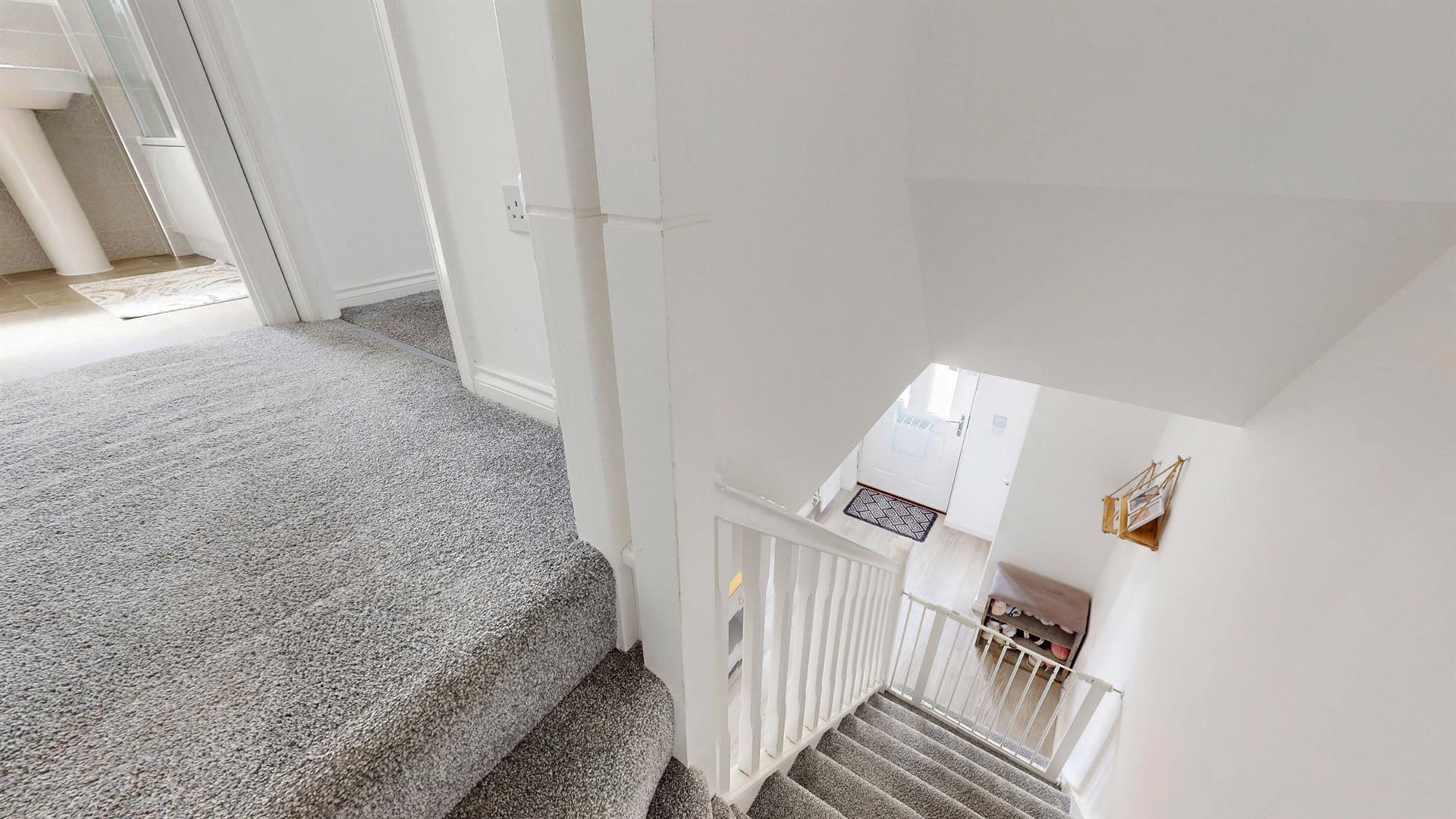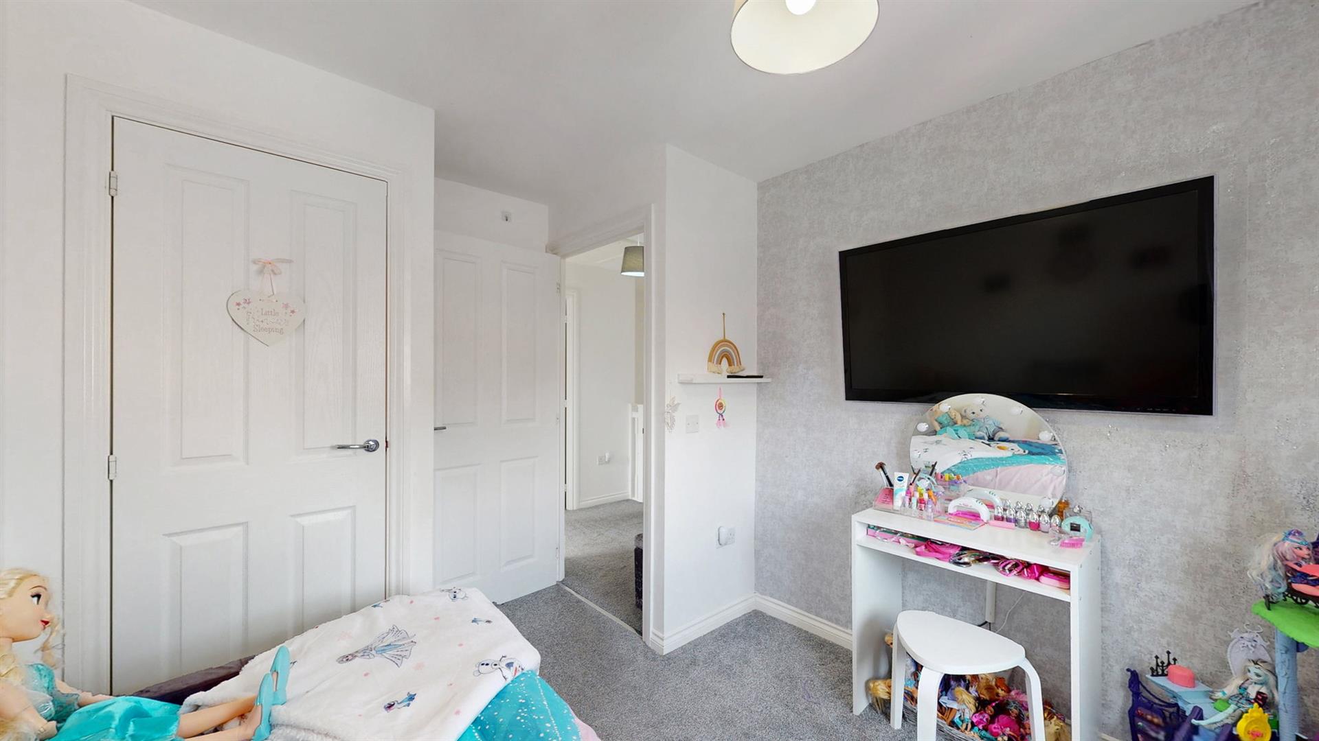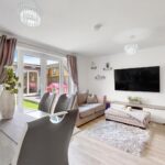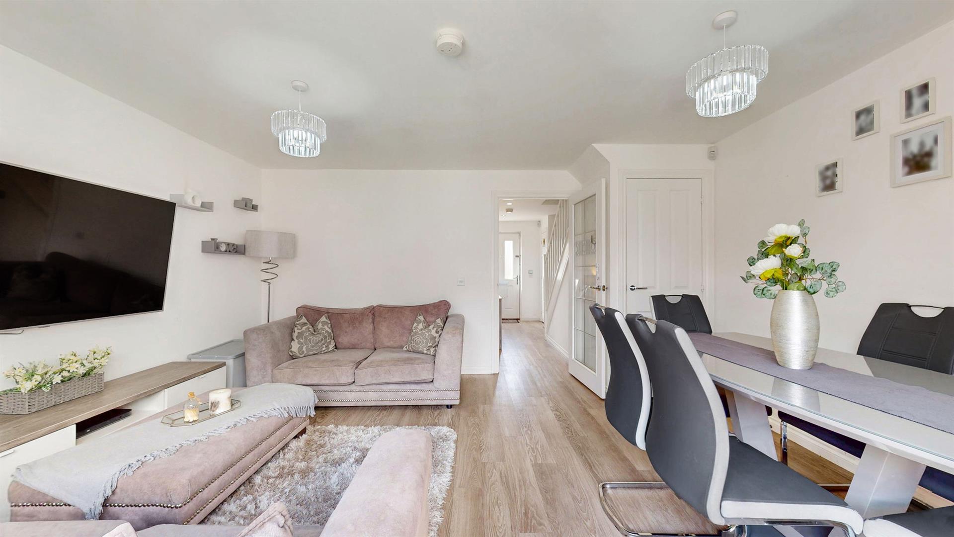 Externally, the property benefits from two allocated parking spaces, soffit lighting to the front and rear of property and a splendid rear garden. Upon entering, through the modern uPVC door, you are welcomed into the bright and airy reception hallway which leads you to all rooms and benefits from a storage cupboard to the side of the front door. The neutrally decorated lounge area boasts space for dining and french door access to the rear garden which flood this space with natural sunlight. A cleverly located storage cupboard going under the stairway is also available to the side of the lounge. The modern fitted kitchen benefits from an array of white gloss base and wall units and complementary worktops, creating a modern and efficient space. The kitchen has the further advantage of an integrated gas hob, double oven, extractor fan, washing machine, dishwasher and fridge freezer. Completing this floor, is a convenient cloakroom with W.C. and wash hand basin.