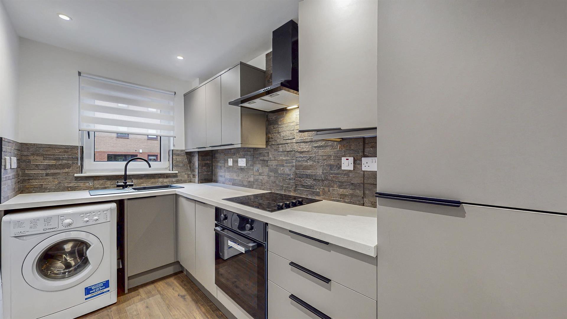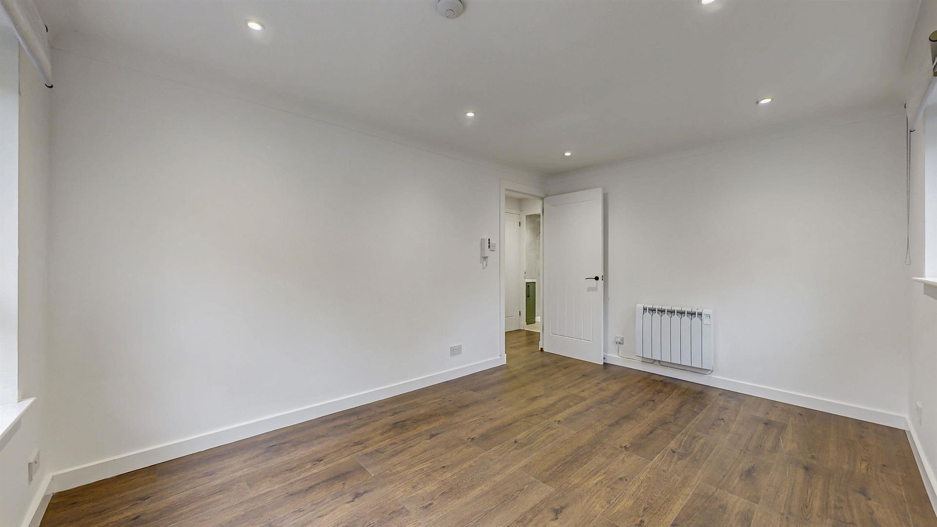 A welcoming reception hallway provides access to all rooms and boasts a generous storage cupboard. The freshly decorated lounge benefits from dual aspect windows filling this space with an abundance of natural light. The modern fitted kitchen hosts an array of wall and base mounted units paired with complementing worktops. Integrated appliances include a fridge-freezer, electric hob, oven and extractor fan with adequate space available for a free standing washing machine. A generously proportioned double bedroom is available, which also boasts fitted storage. A modern shower room completes this property which comprises of a shower cubicle with rainfall shower, vanity unit and W.C. The apartment also benefits from double glazing and an electric heating system with modern, energy efficient heaters.